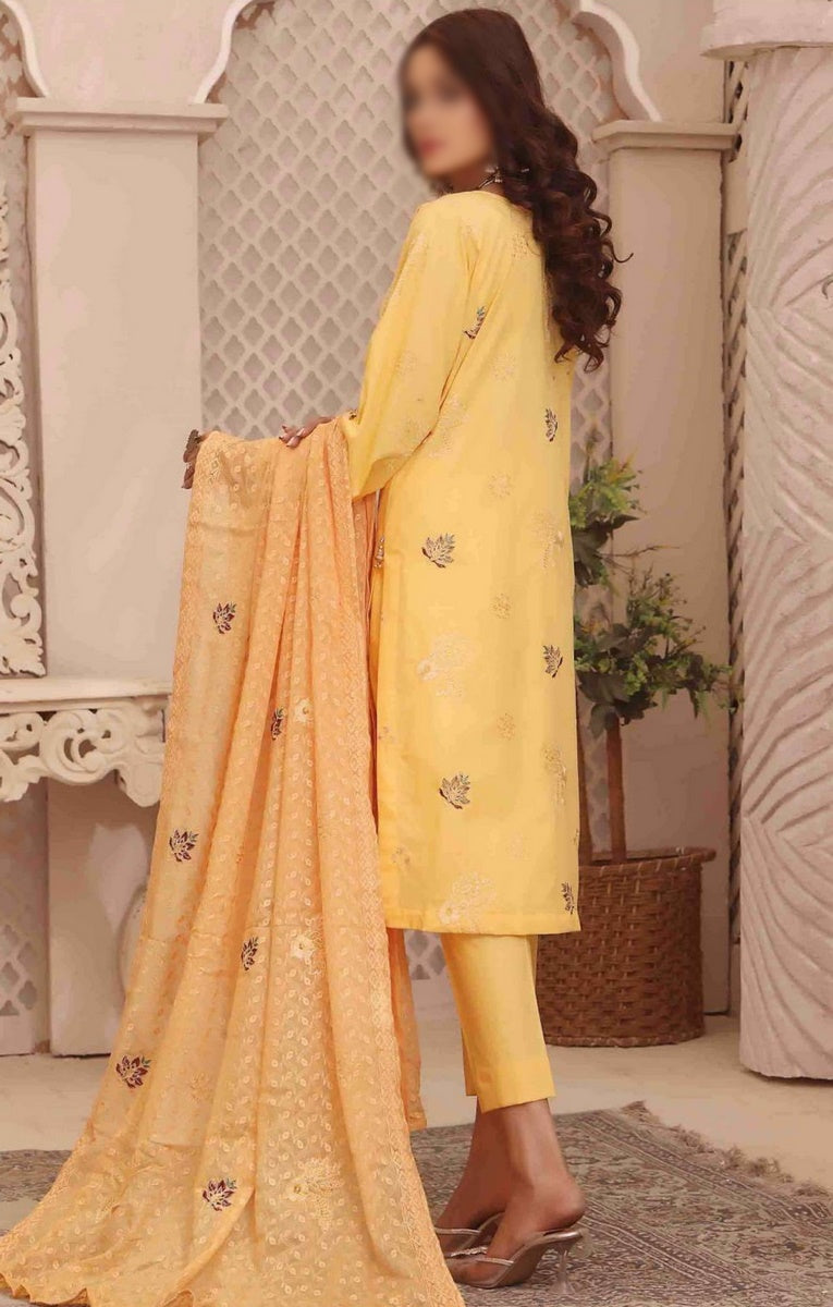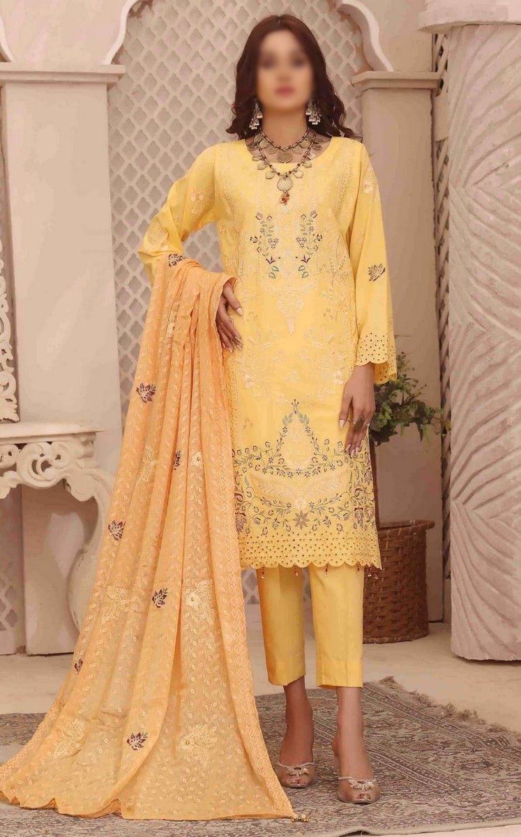 The standard style comes as a long-sleeved kameez with dupatta and trouser/shalwar.