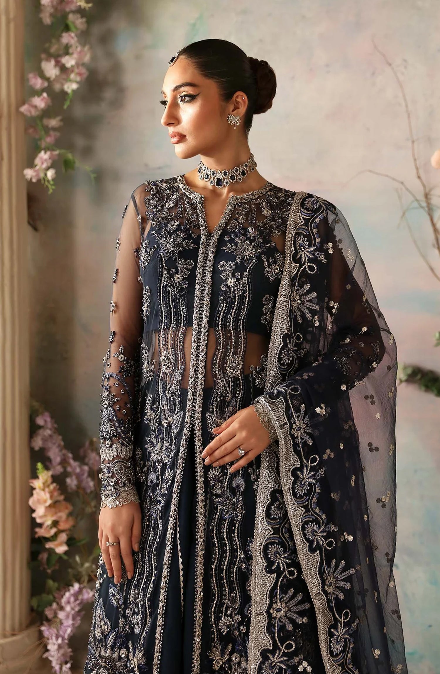 Aleia by Akbar Aslam Luxury Formals Embroidered Net Unstitched 3 Piece Suit - Azur - AKA25ALE - Blue - Festive Collection