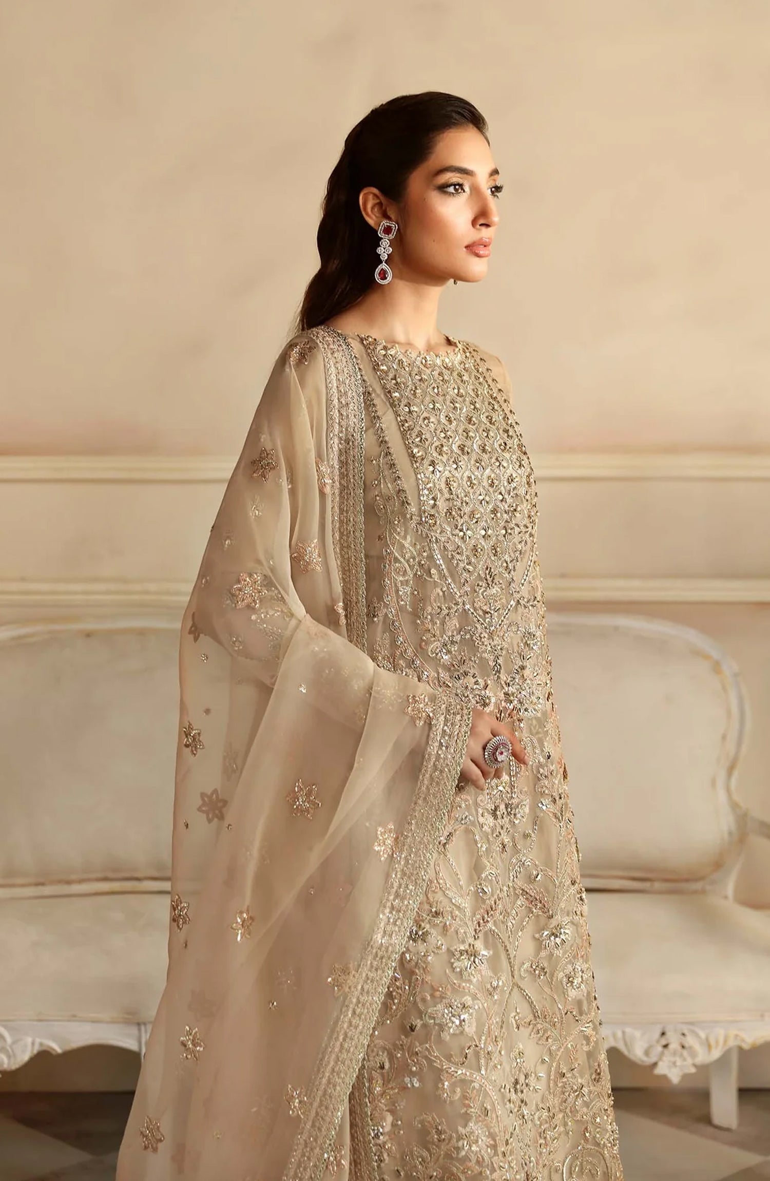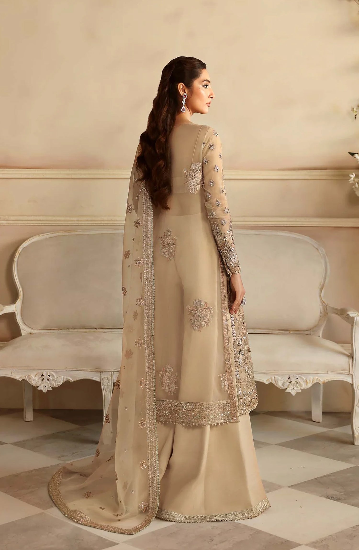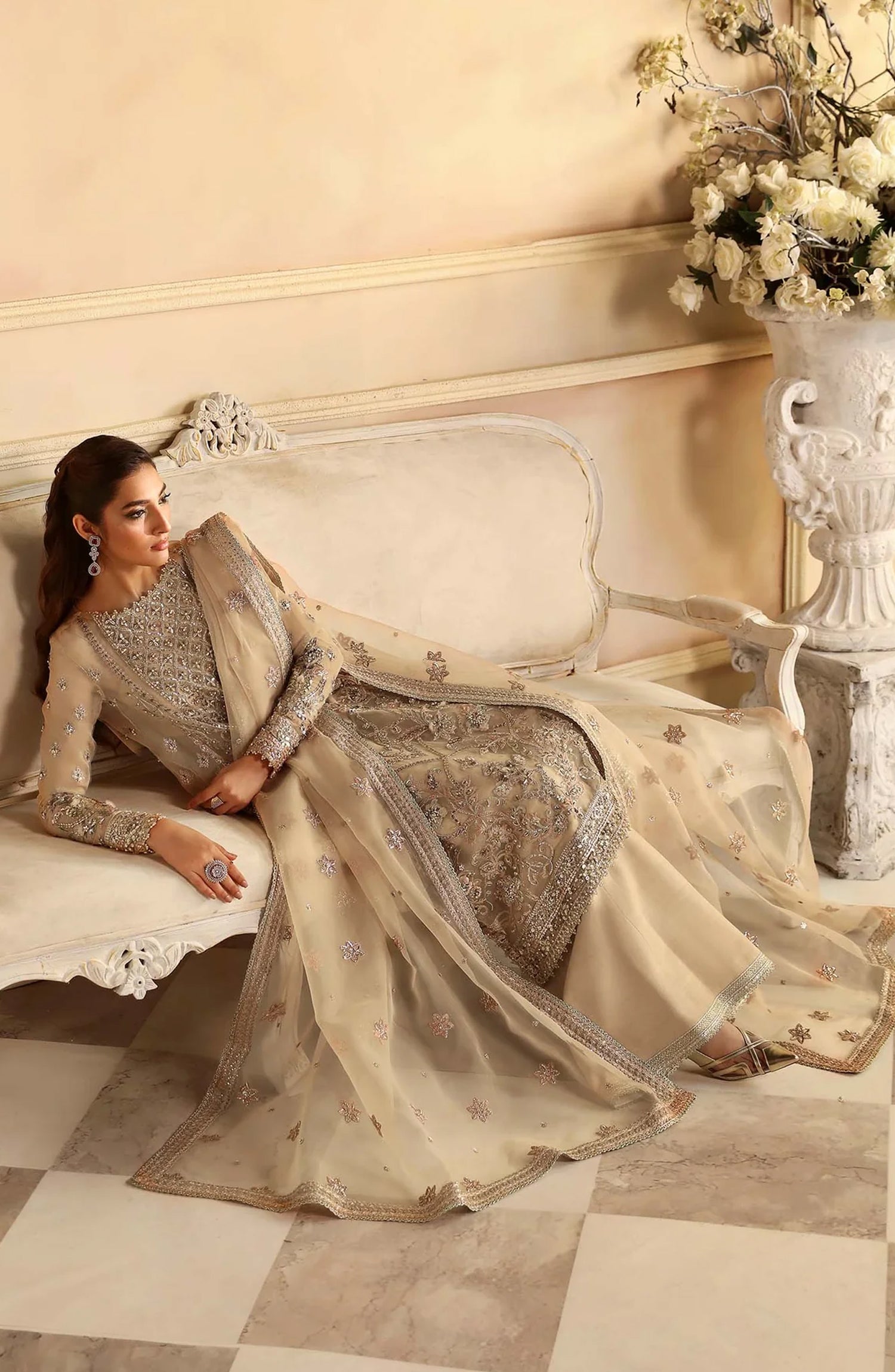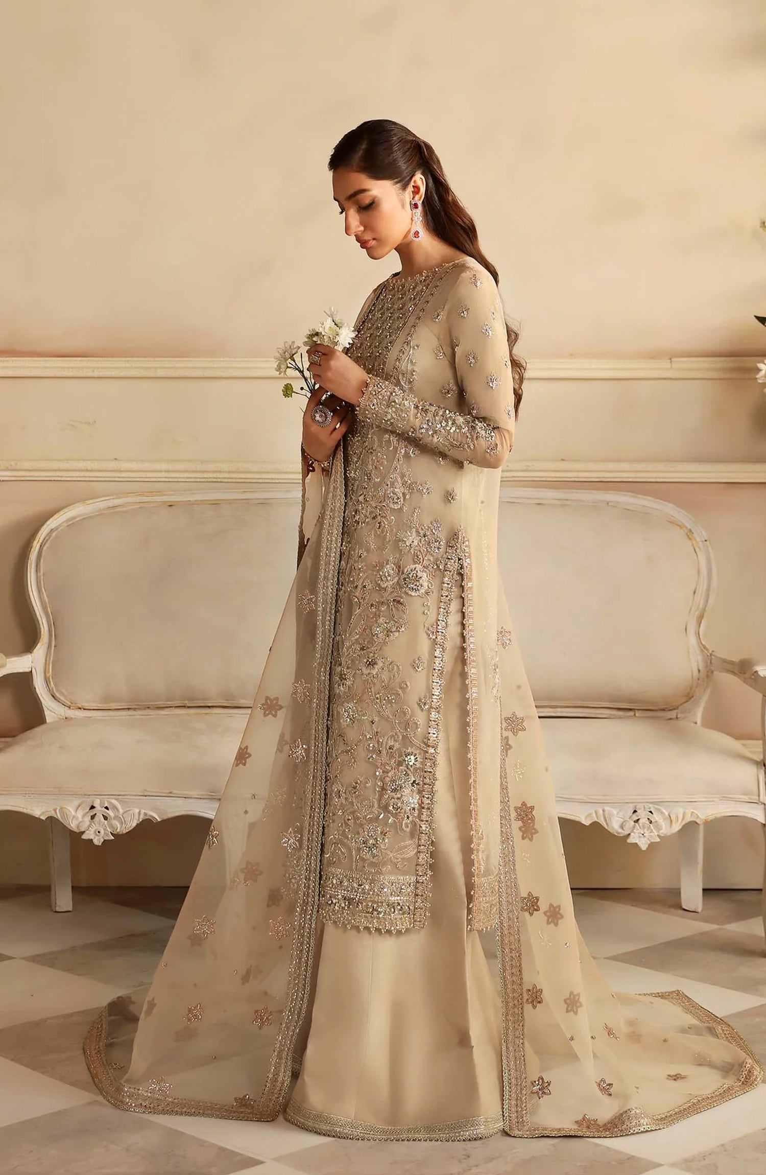 Aleia by Akbar Aslam Luxury Formals Embroidered Organza Unstitched 3 Piece Suit - Nacar - AKA25ALE - Fawn - Festive Collection
