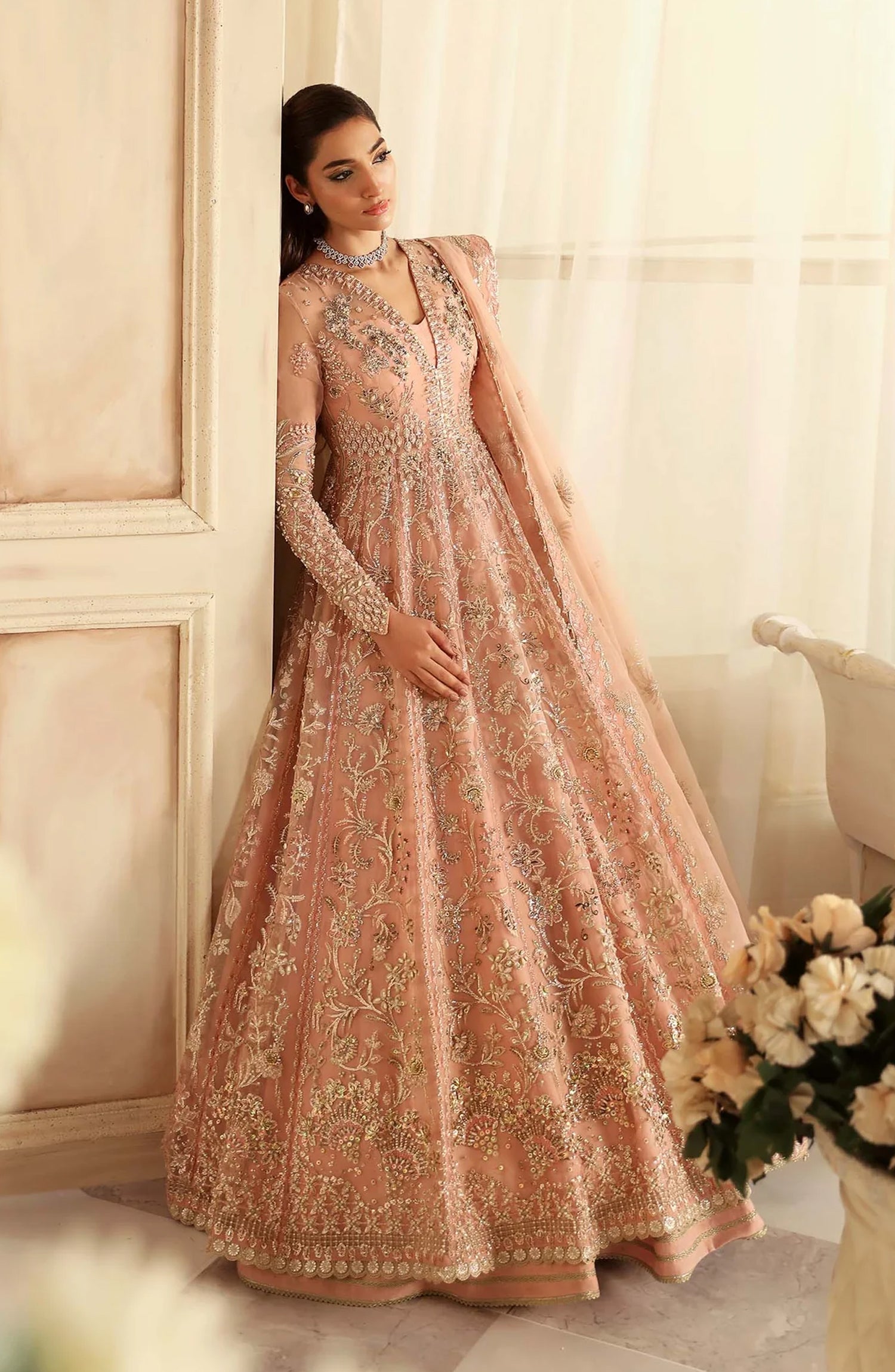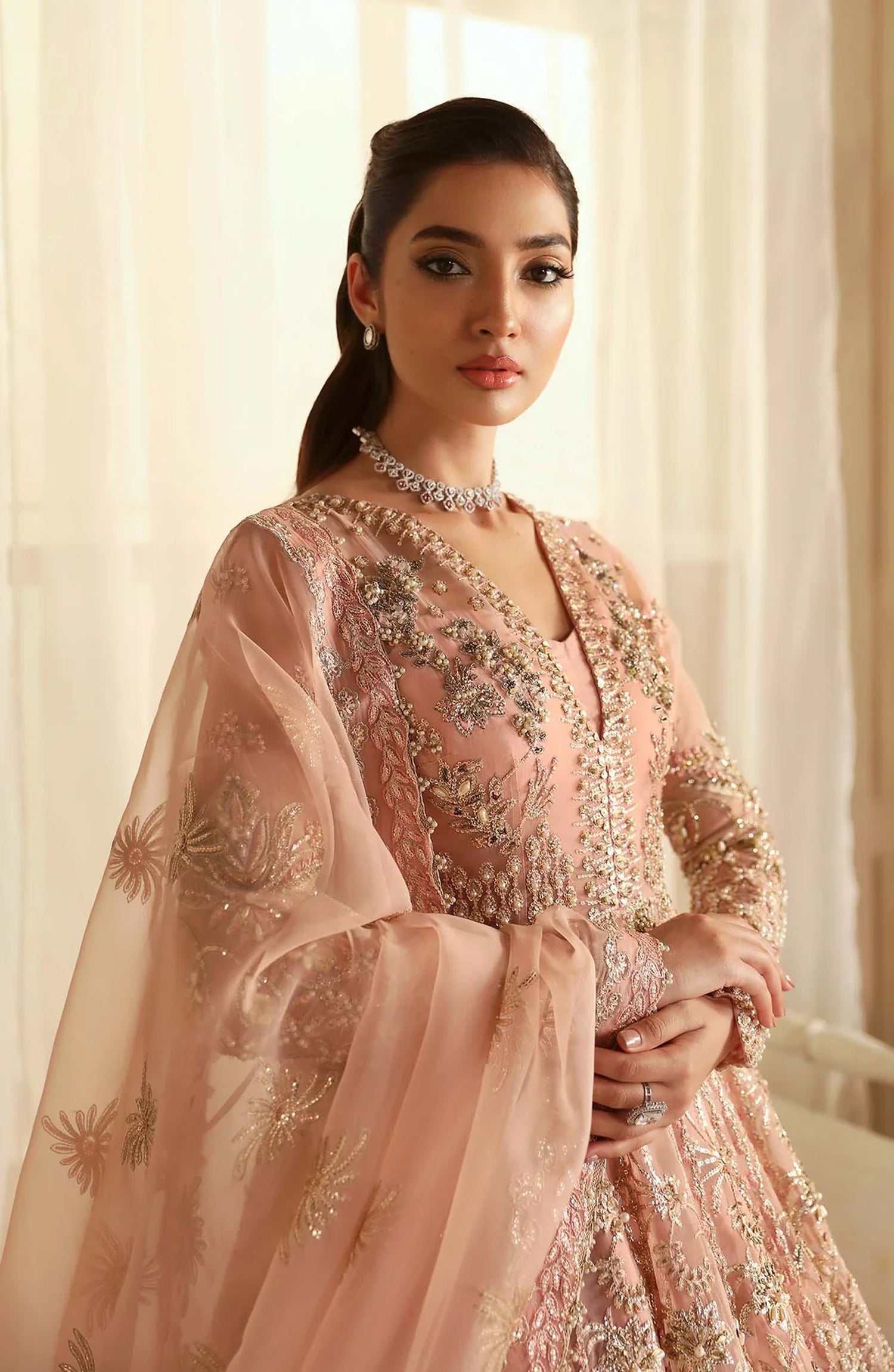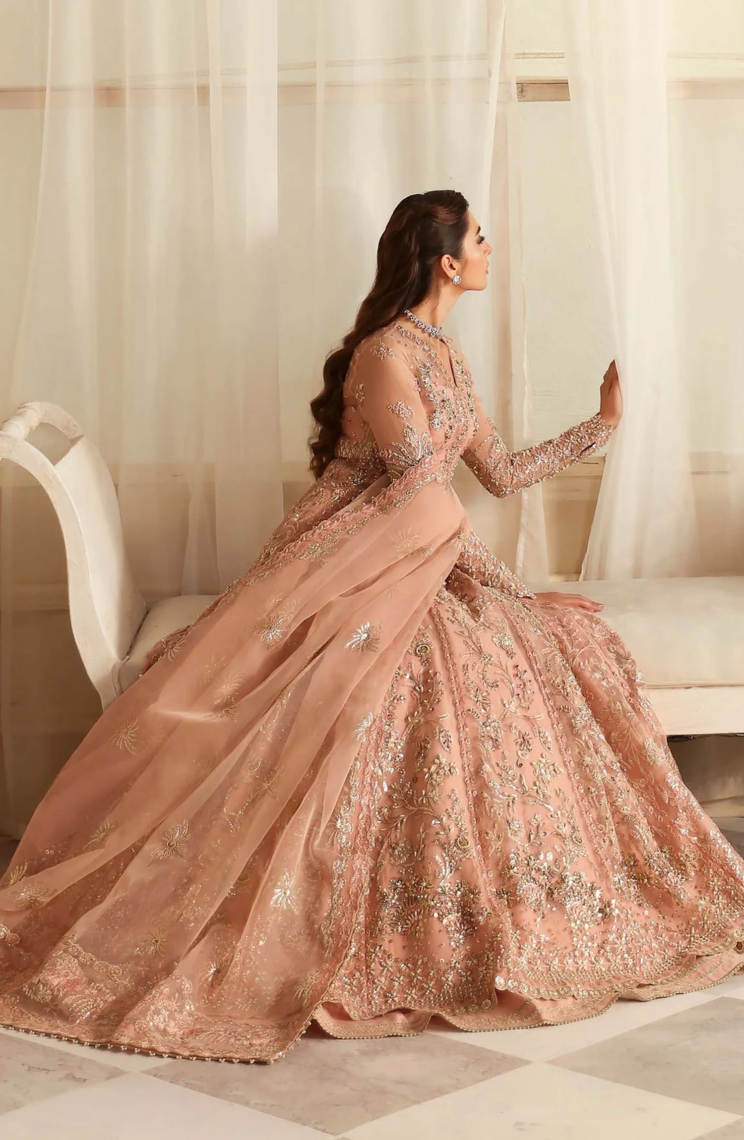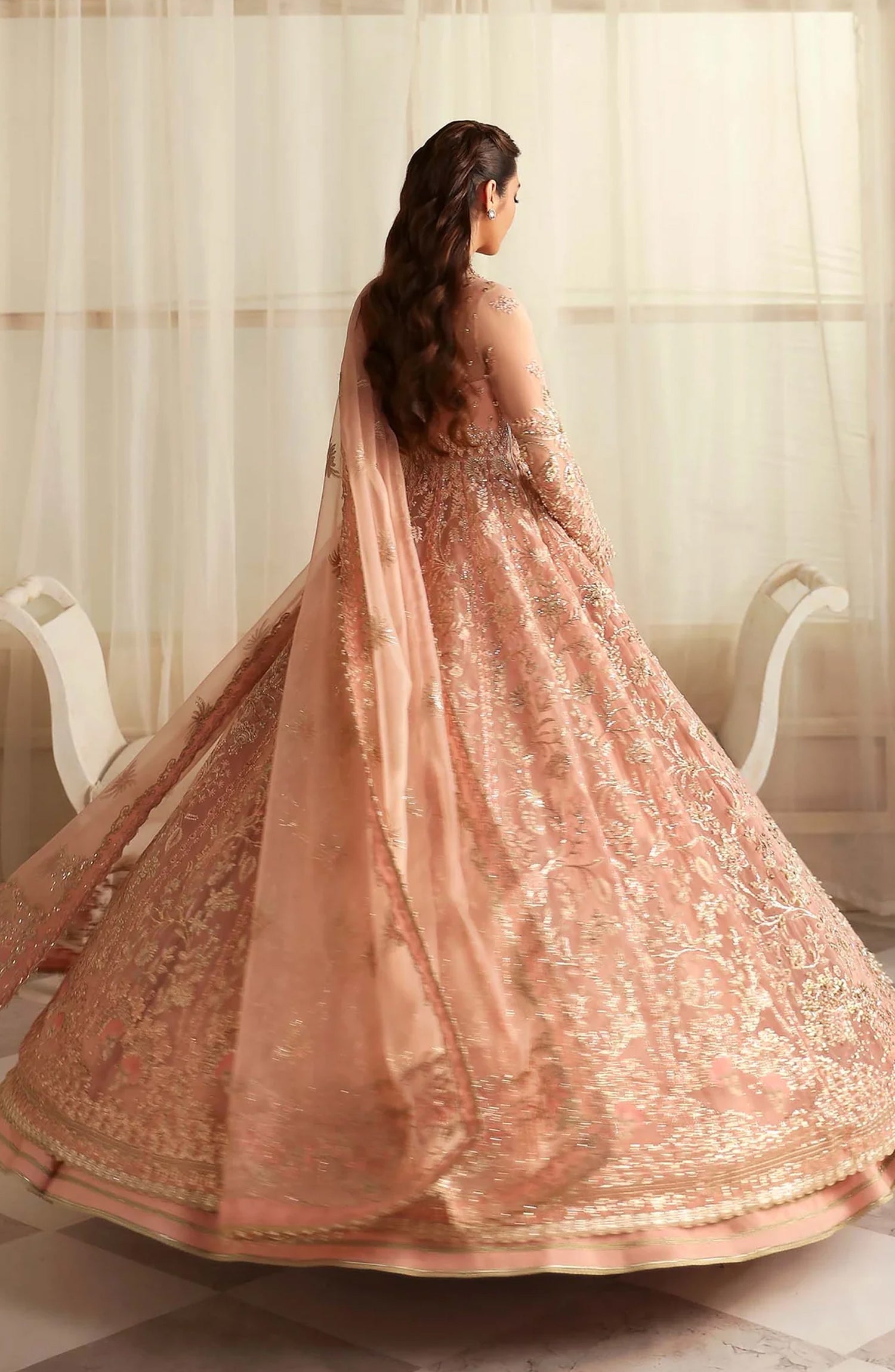 Aleia by Akbar Aslam Luxury Formals Embroidered Organza Unstitched 3 Piece Suit - Sueno - AKA25ALE - Peach - Festive Collection