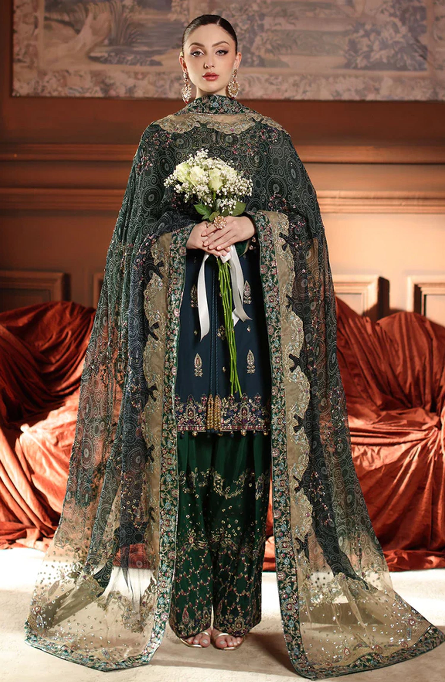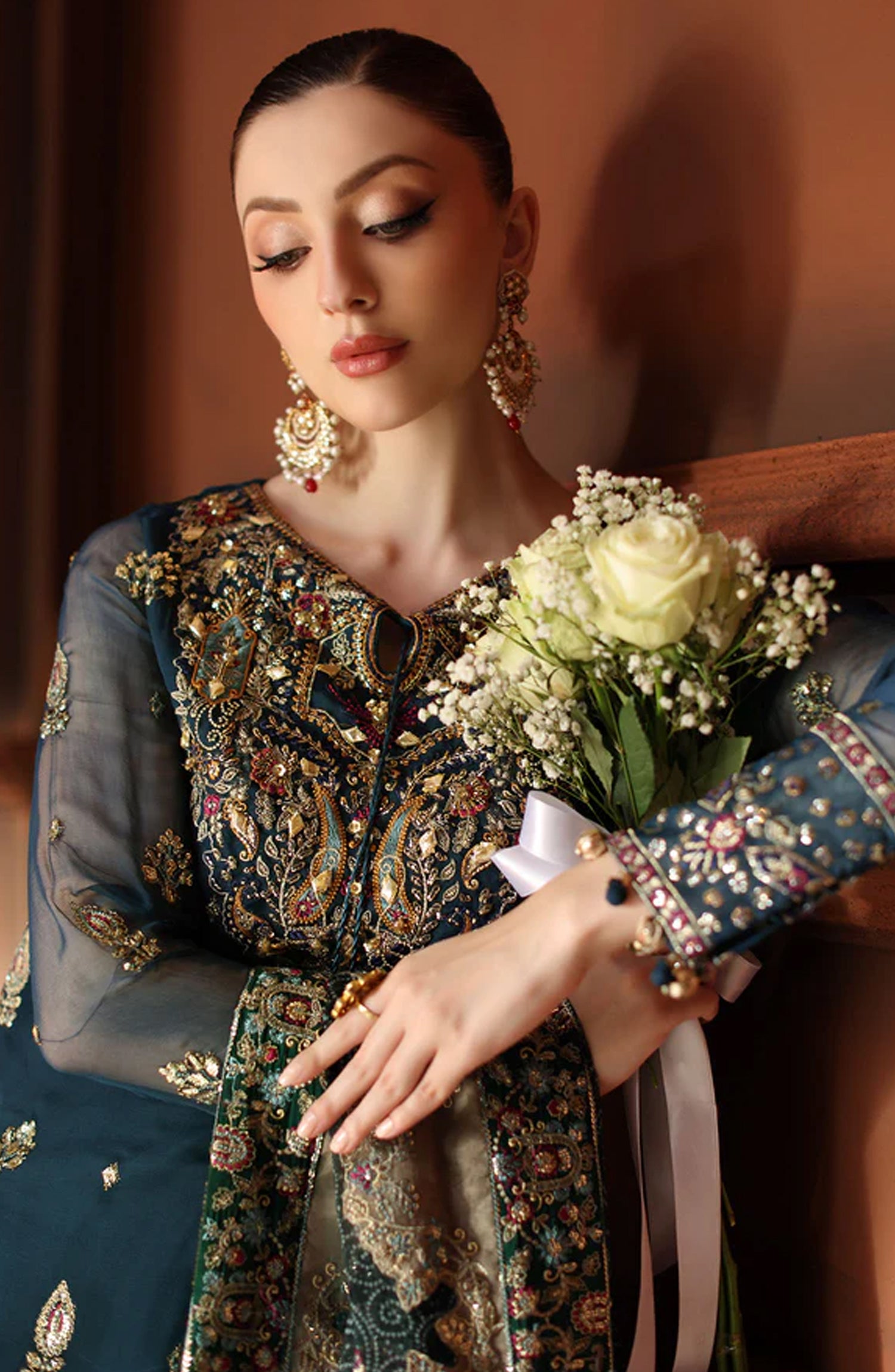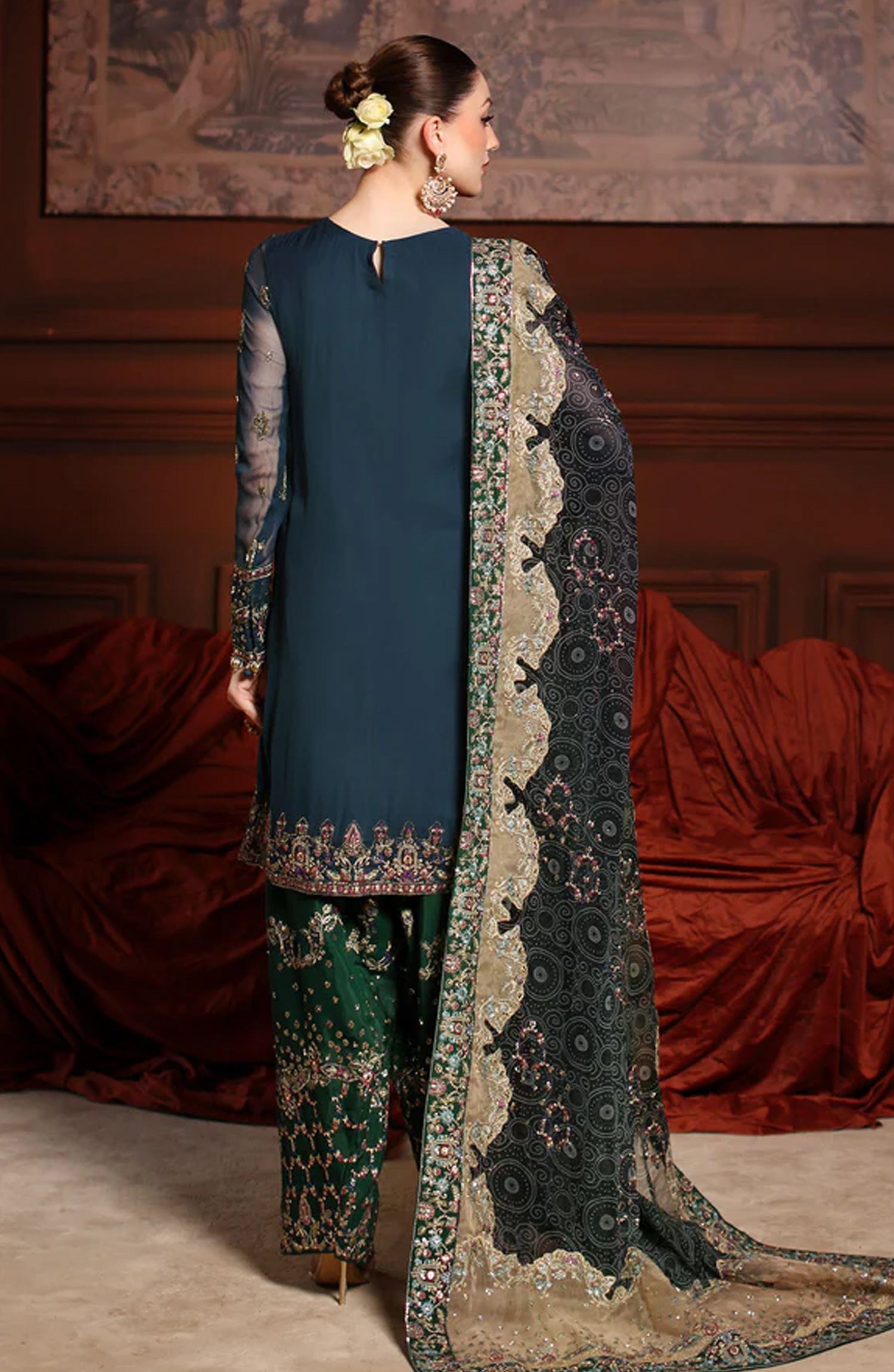 Alfaaz by Nureh Luxury Embroidered Chiffon Unstitched 3 Piece Suit - NL-88 - NU25AFZ - Teal - Festive Collection