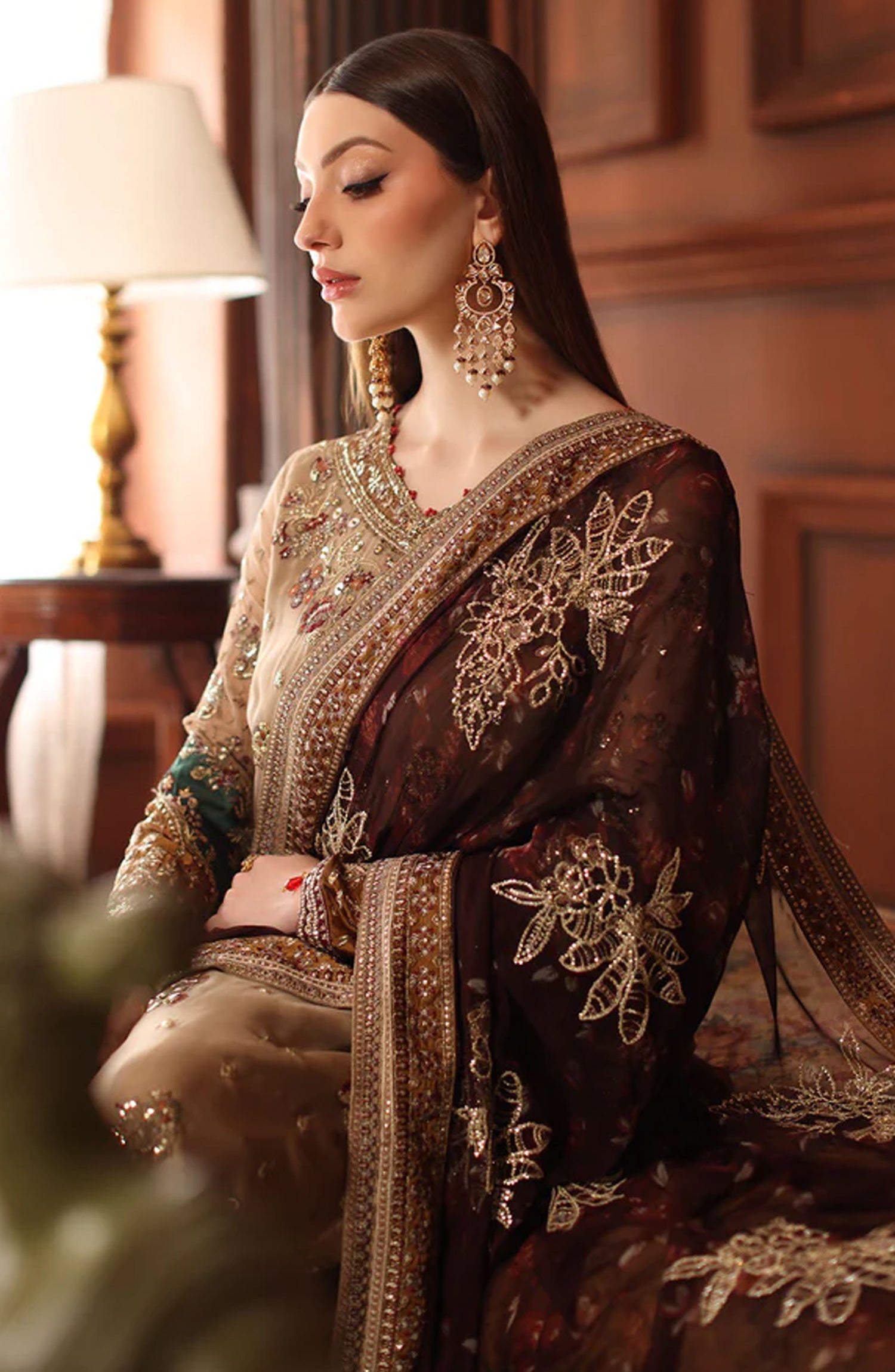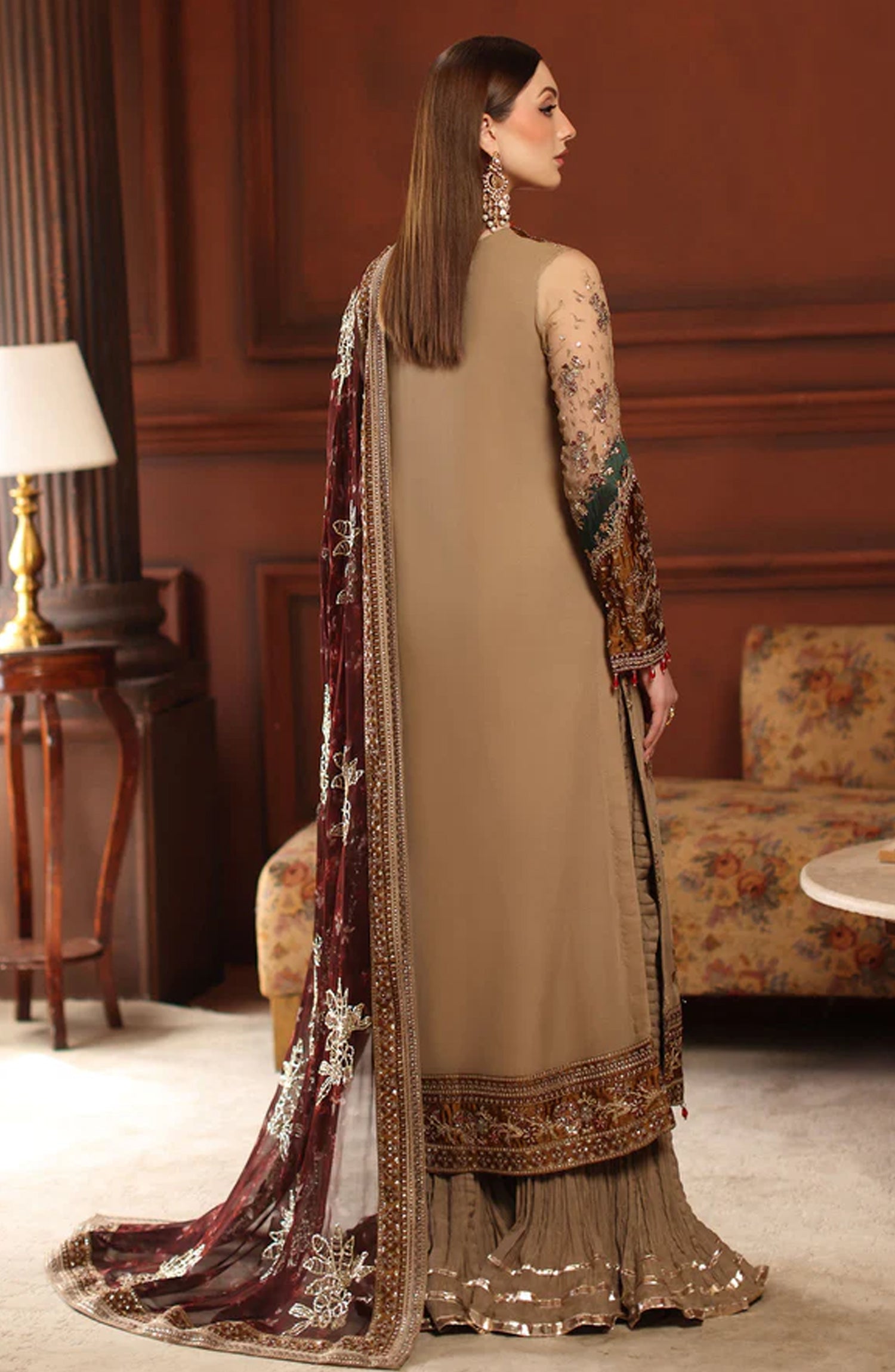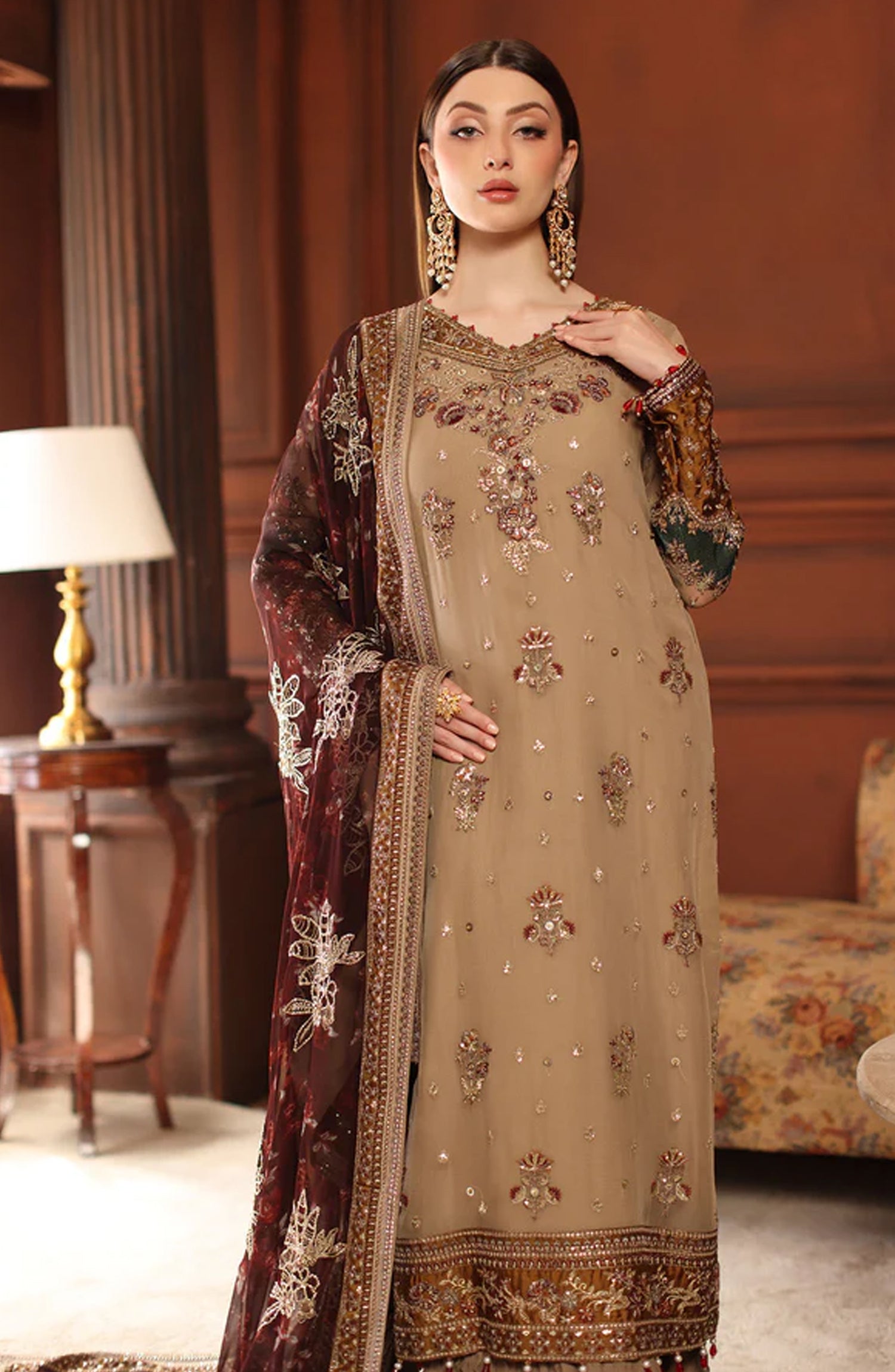 Alfaaz by Nureh Luxury Embroidered Chiffon Unstitched 3 Piece Suit - NL-91 - NU25AFZ - Beige - Festive Collection
