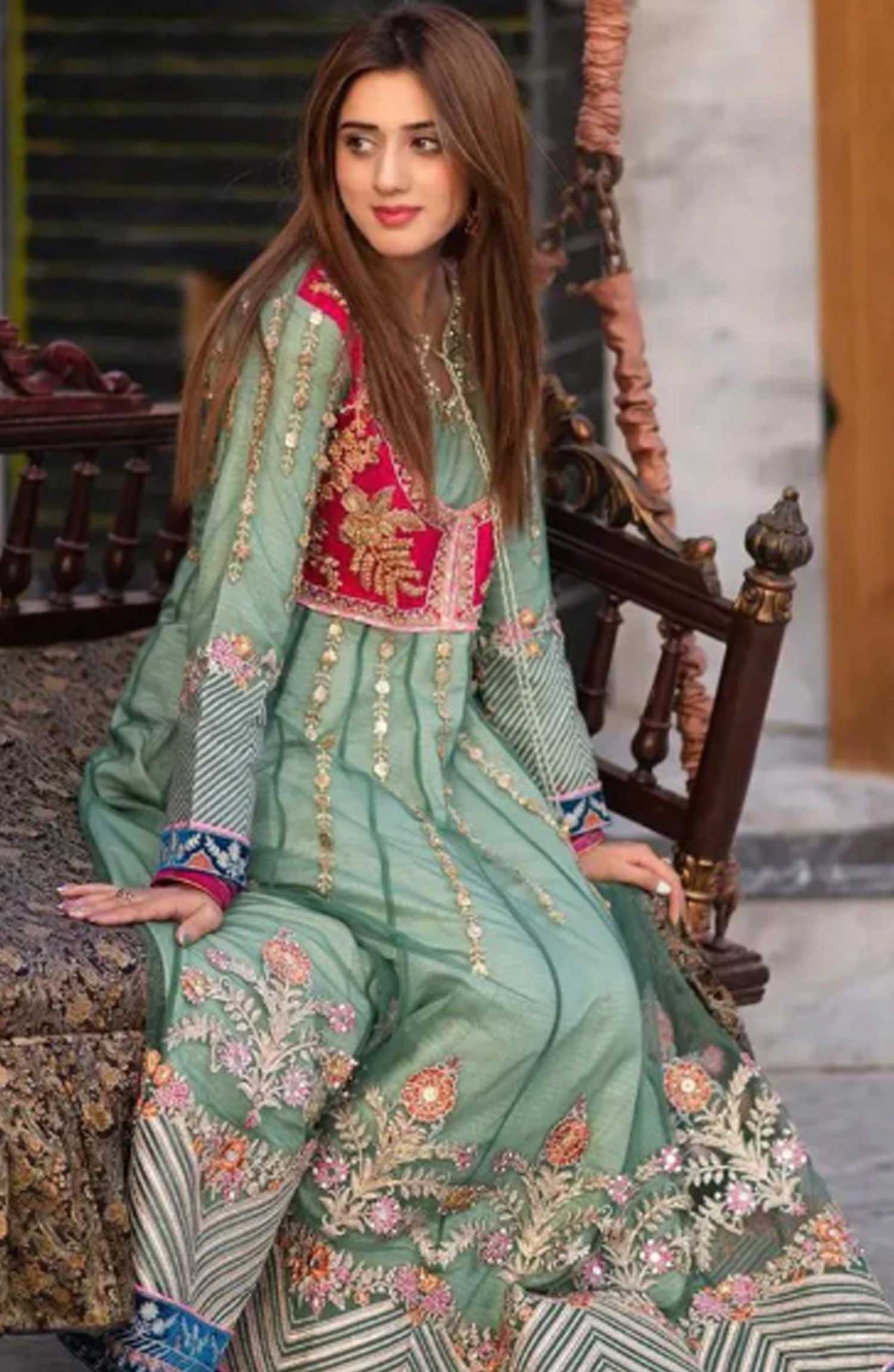 Description: Shirt : Embroidered net with organza blero and adda work Trouser : Viscose