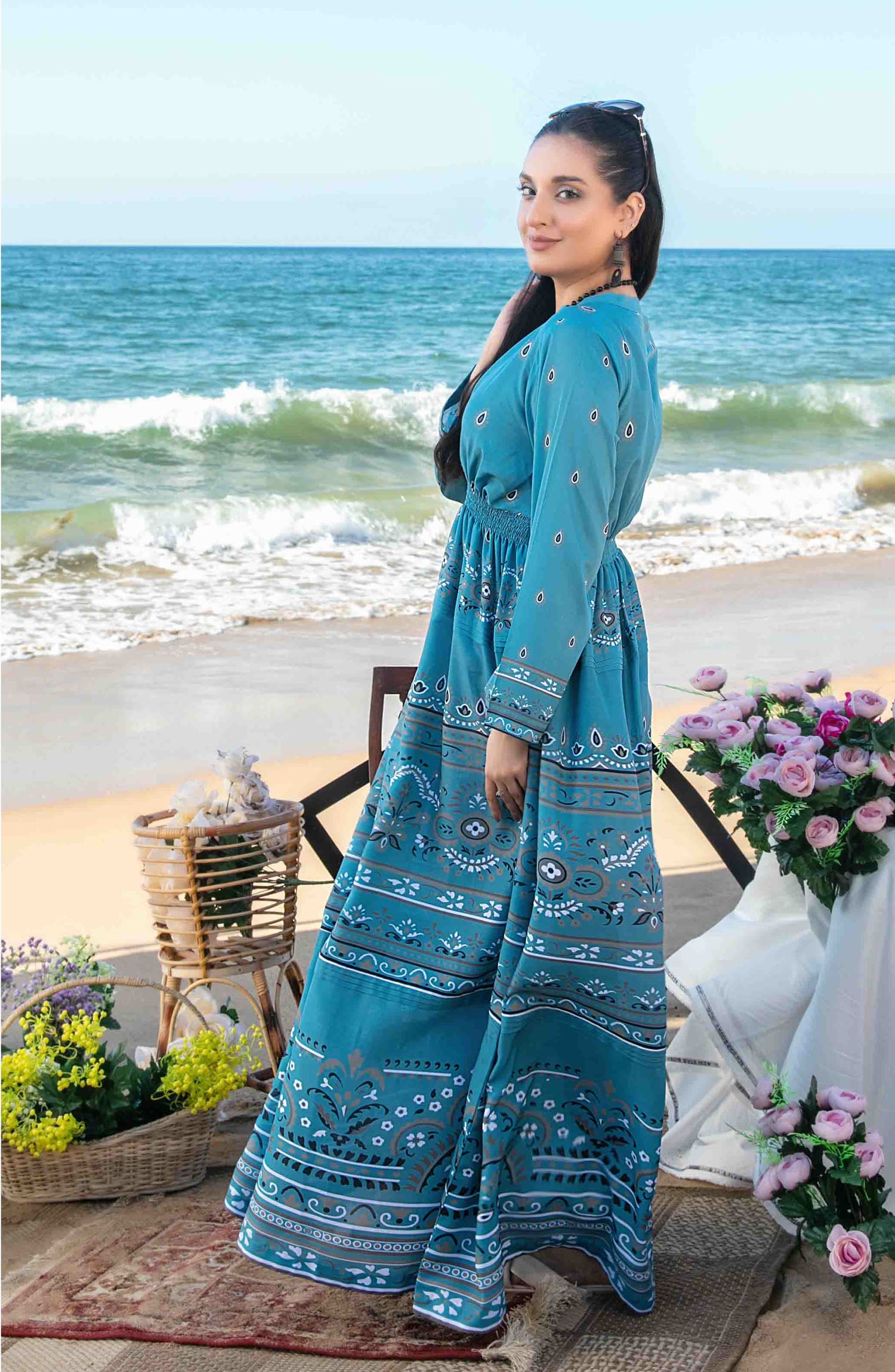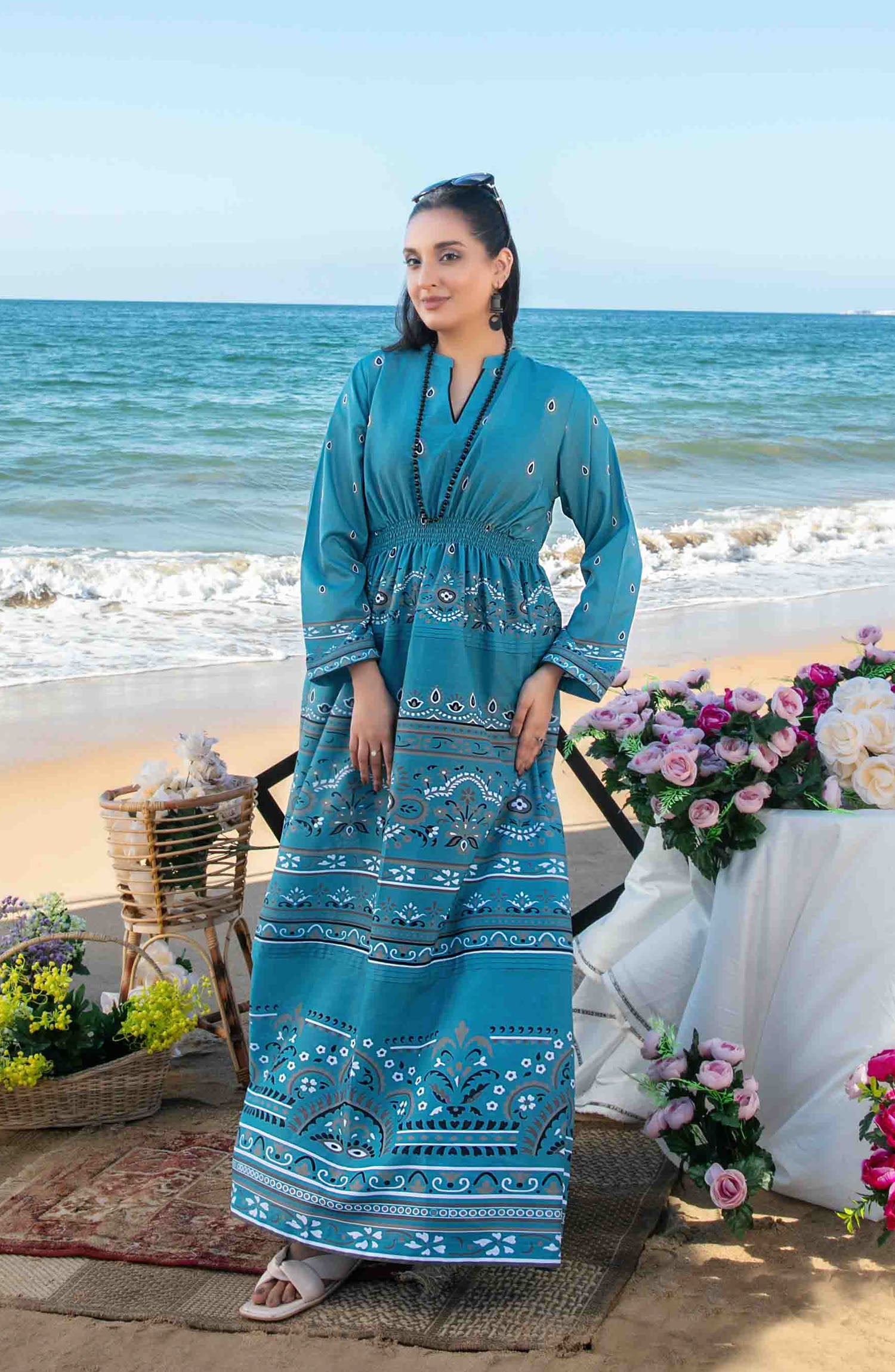 Alzane By Tawakkal Fabric Printed Swiss Stitched 1 Piece Maxi - D-1406 - TF25APSM - Blue - Summer Collection