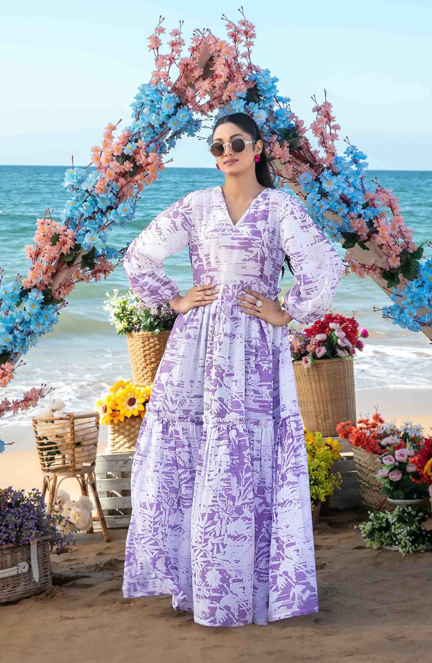 Stitched Digital Printed Swiss Maxi with Exclusive Detailing Designs