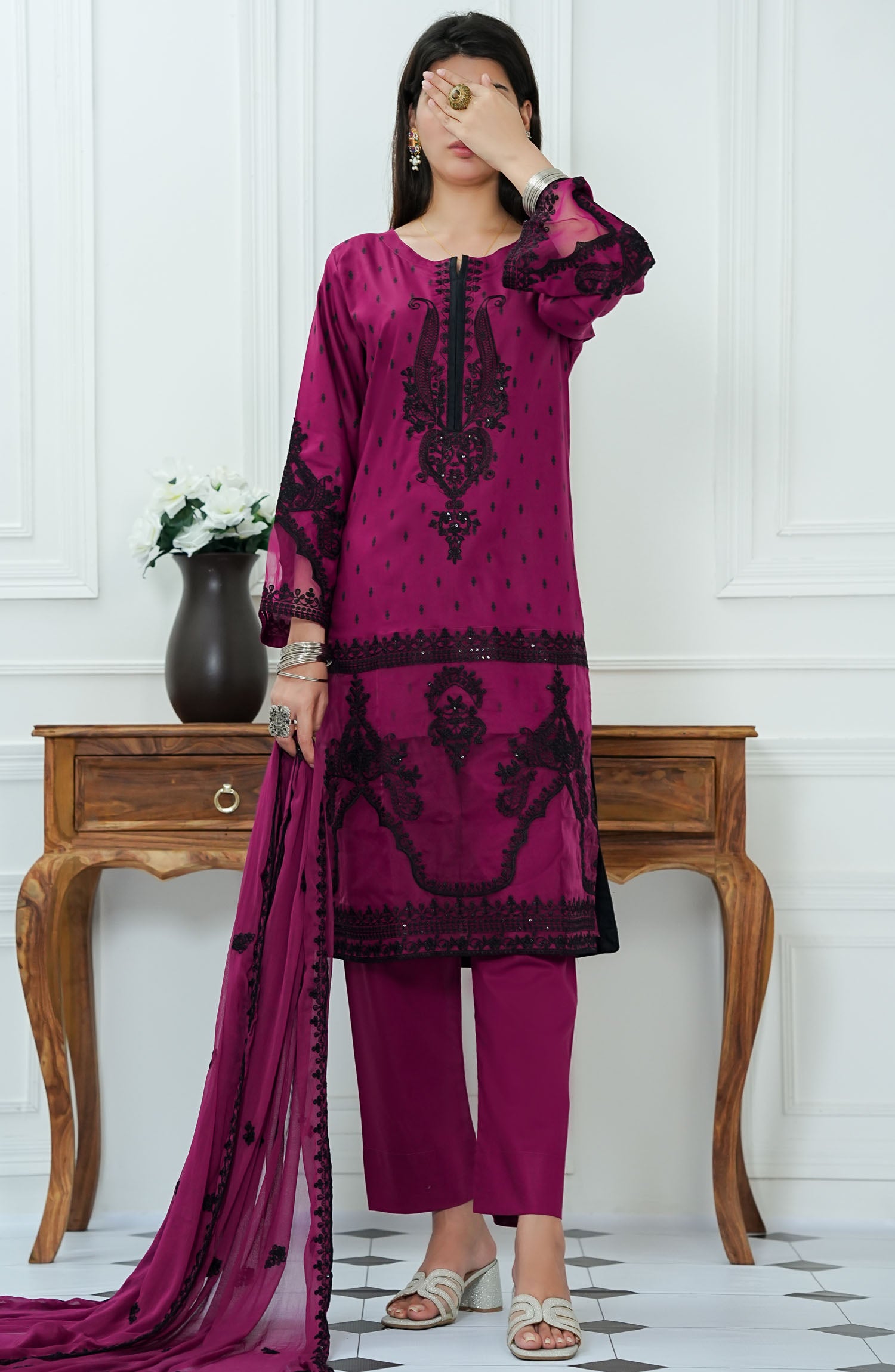 The standard style comes as a long-sleeved kameez with dupatta and trouser/shawlar.