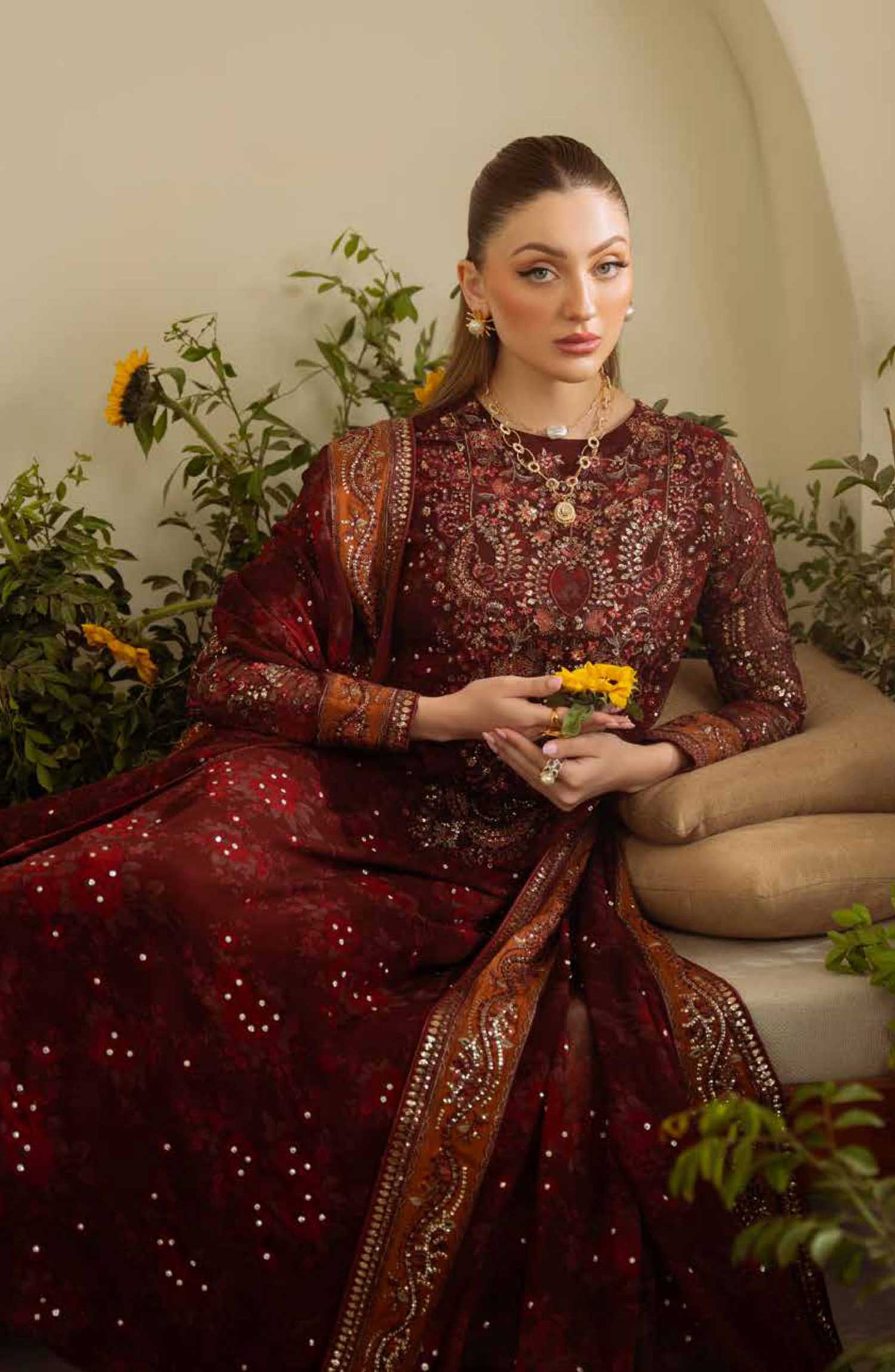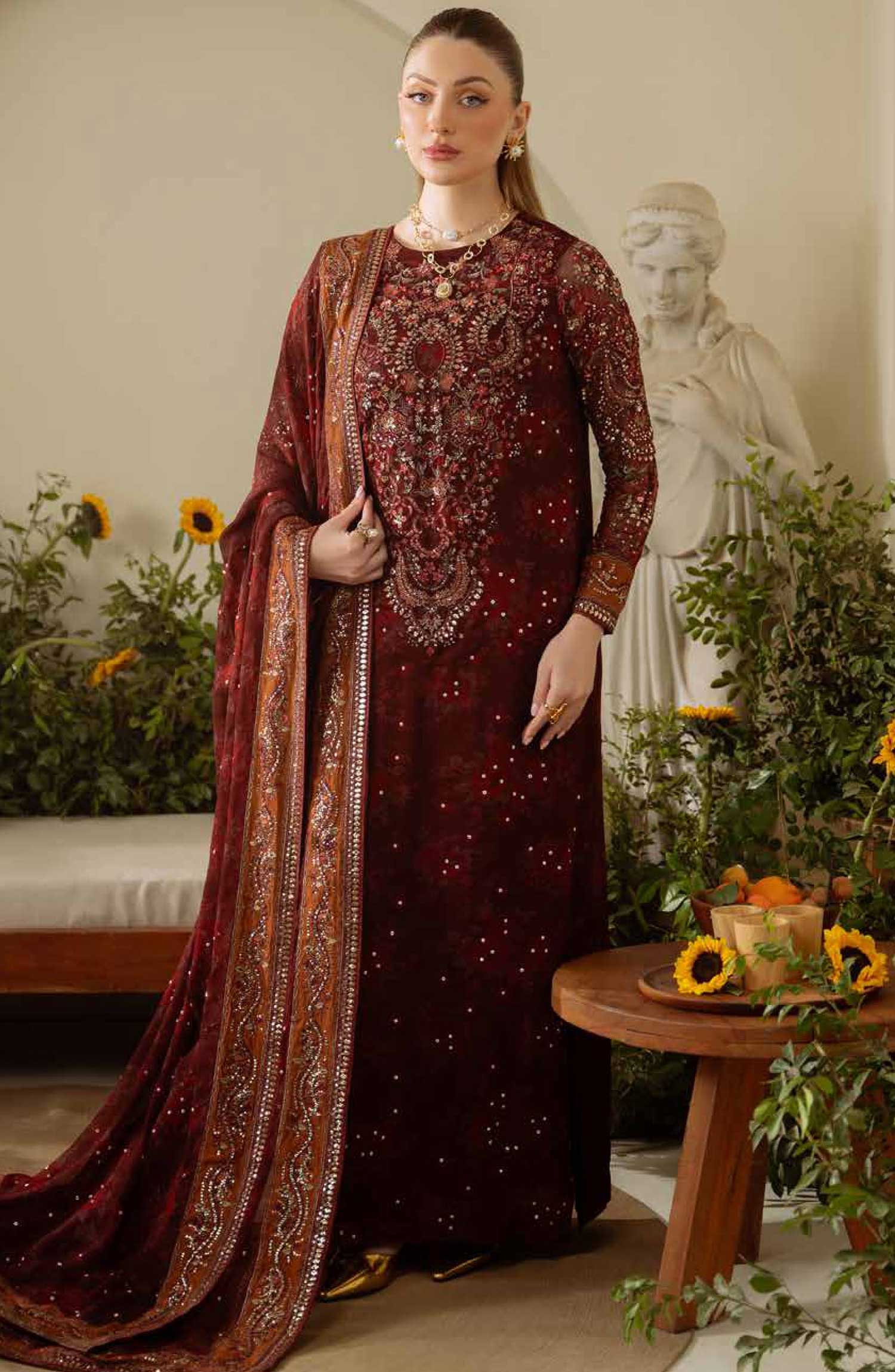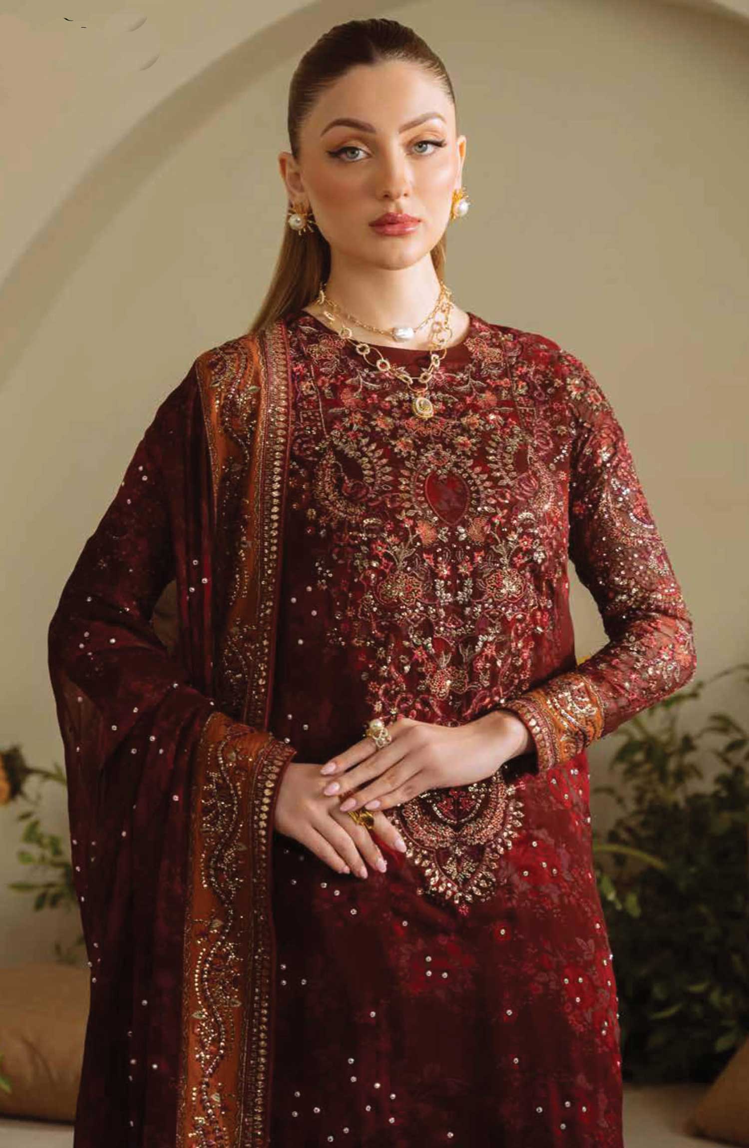 Nureh Amaya Luxury Prints Unstitched Chiffon Collection has been styled in the image for photography and illustrative purposes.
