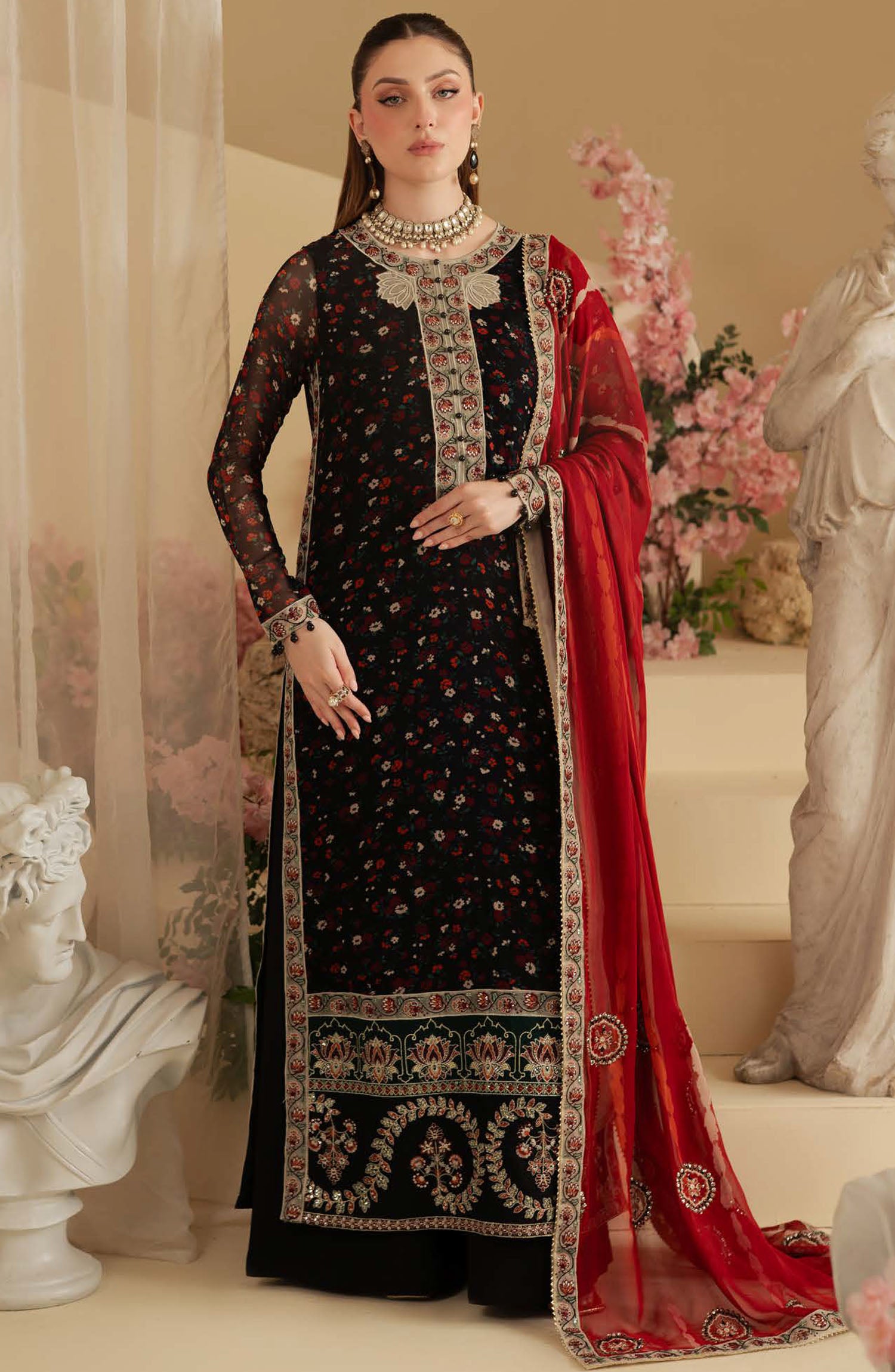 Amaya by Nureh Embroidered Chiffon Unstitched 4 Piece Suit - AM-18 - NU25ALC - Black - Wedding Collection
