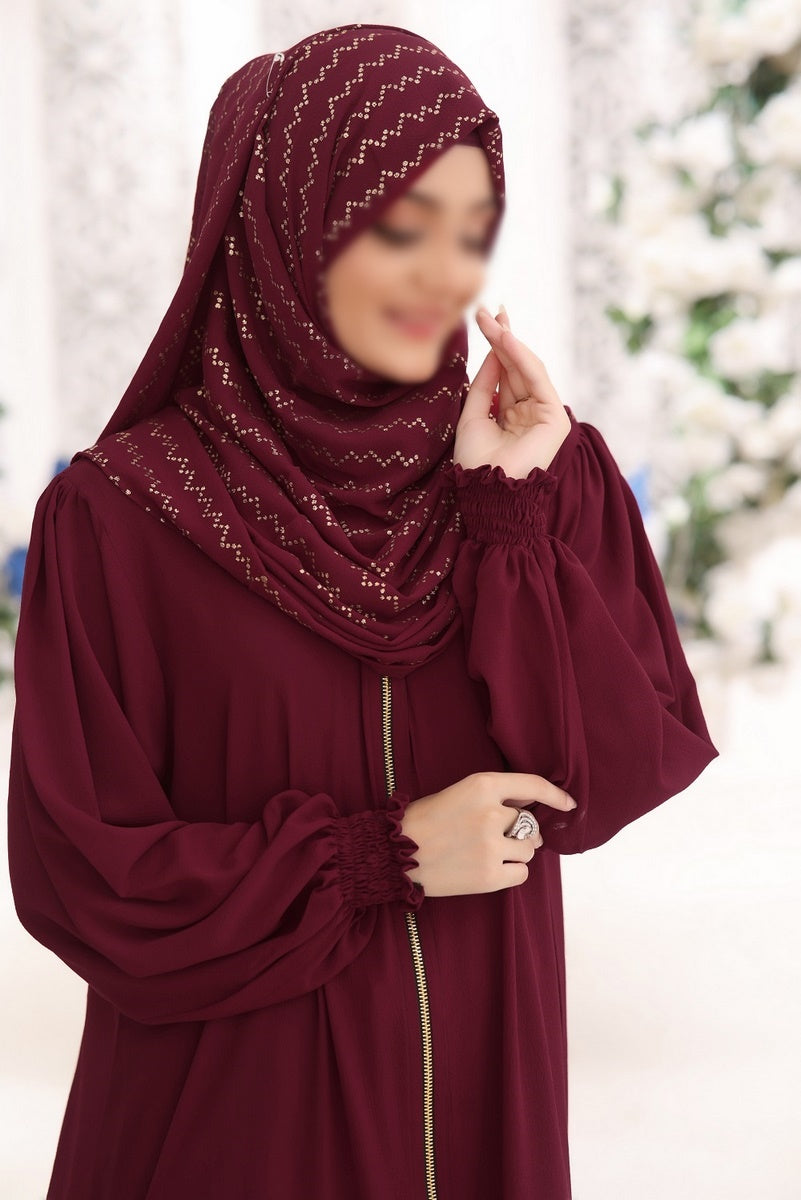 When looking for something Classy and Unique, our beautiful zipper abaya with elastic sleeves is gorgeous yet elegant combined with Foil Printed Scarf