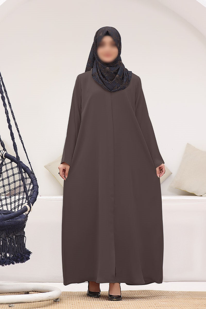 Beige is a must for your wardrobe collection with our new latest colors which is breathtaking and ultimately gorgeous which is our hot sellers these days maxi style abaya with front pleat adding more Flair loose pattern sleeves come along with pure Korean digital chiffon Sheila