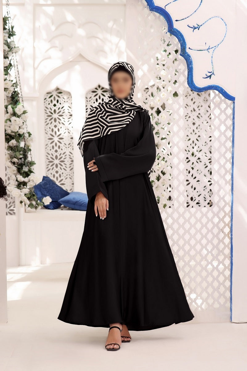 This is a must for your wardrobe collection with our new latest colors which is breathtaking and ultimately gorgeous which is our hot sellers these days front open style abaya and loose pattern sleeves come along with pure Korean digital chiffon Sheila