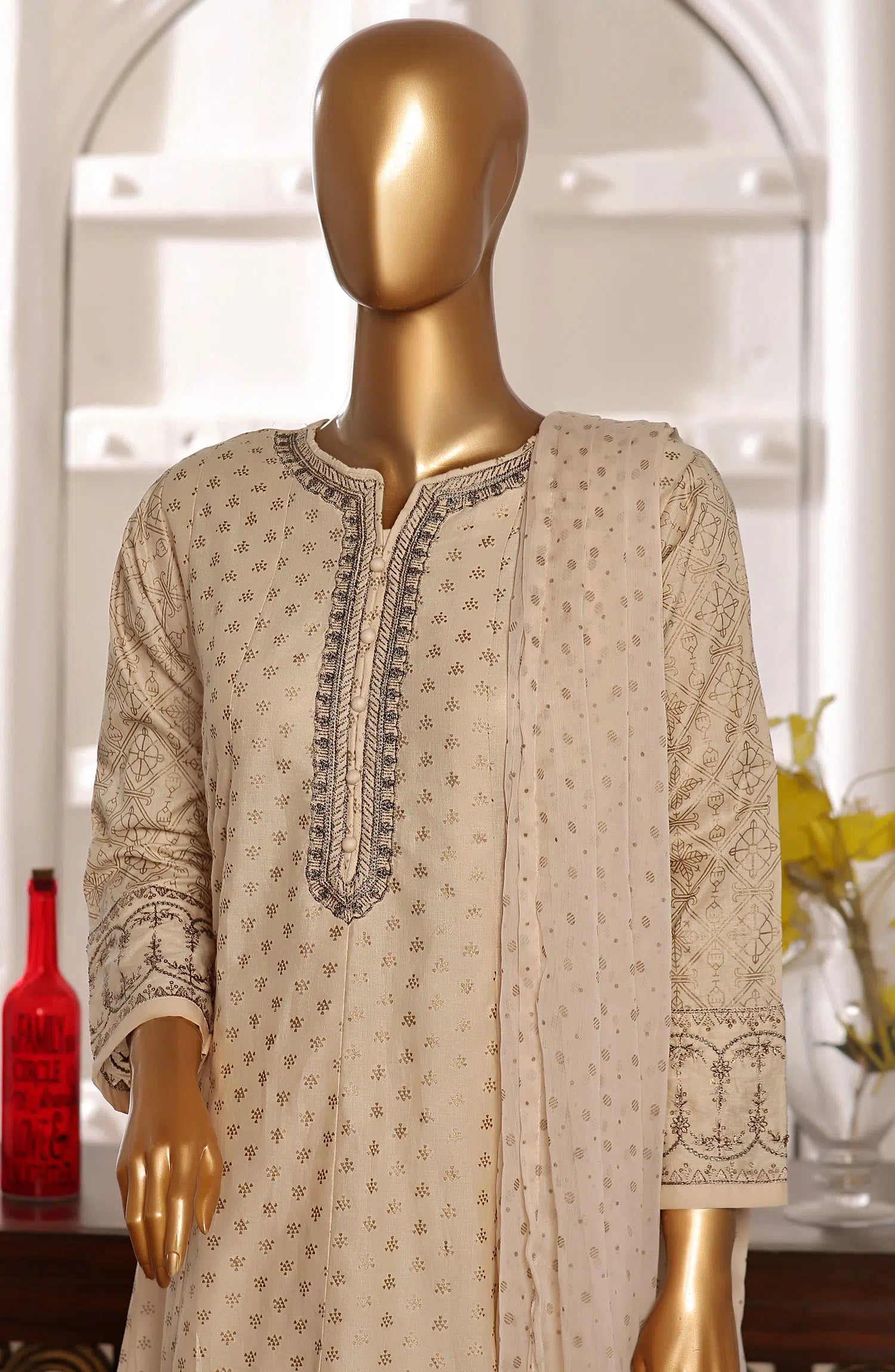 Modest Embroidered Khaddar Stitched 3 Piece Suit - 9990-Blk - MOD25WNT - Black - Winter Collection