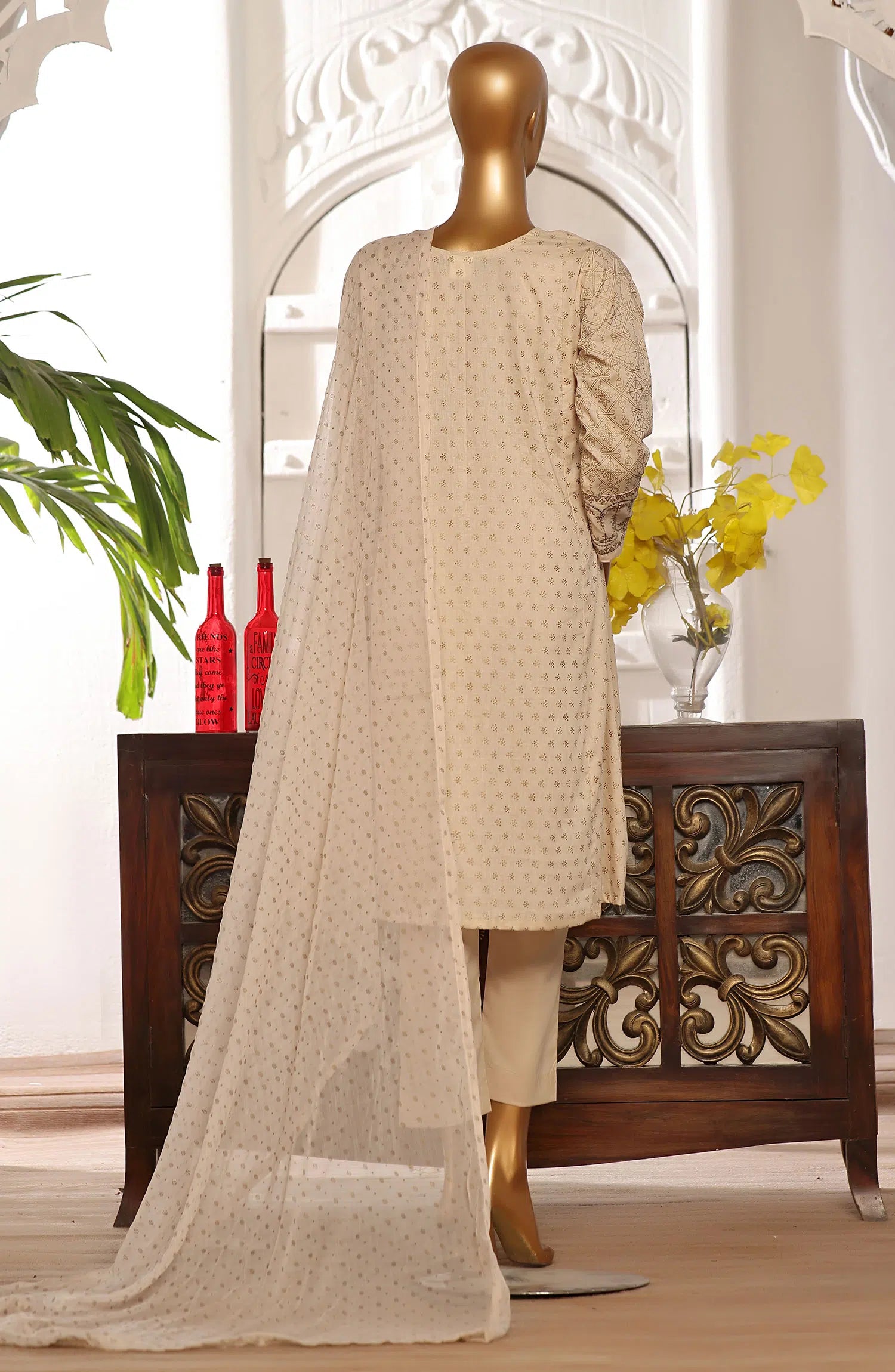 Maryams Luxury Embroidered Chiffon Unstitched 3 Piece Suit - ANUSHEH-ARZ-9007 - MAR25LF - White - Festive Collection