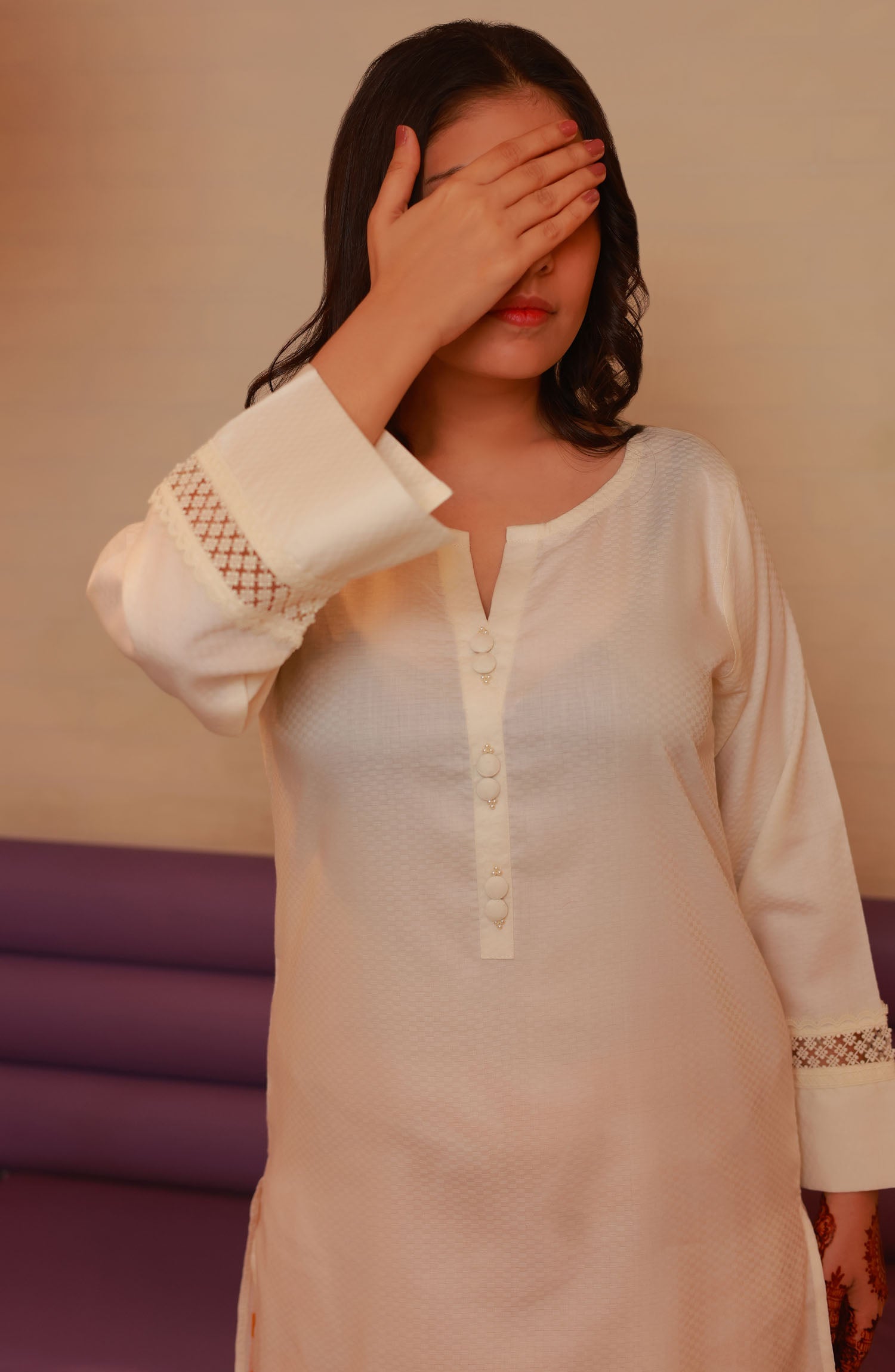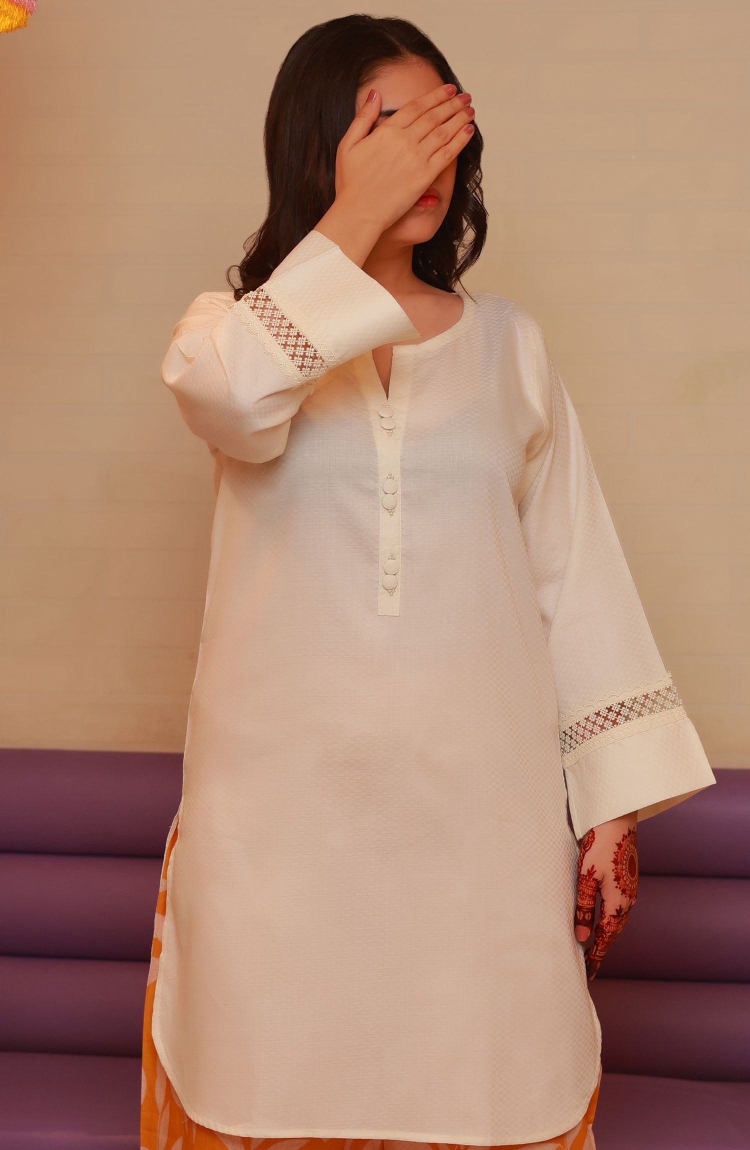 Home Amna Khadija Casual Cotton Stitched 2 Piece Suit - BBMDD-13M - AM25BNBD3 - White - Eid Collection