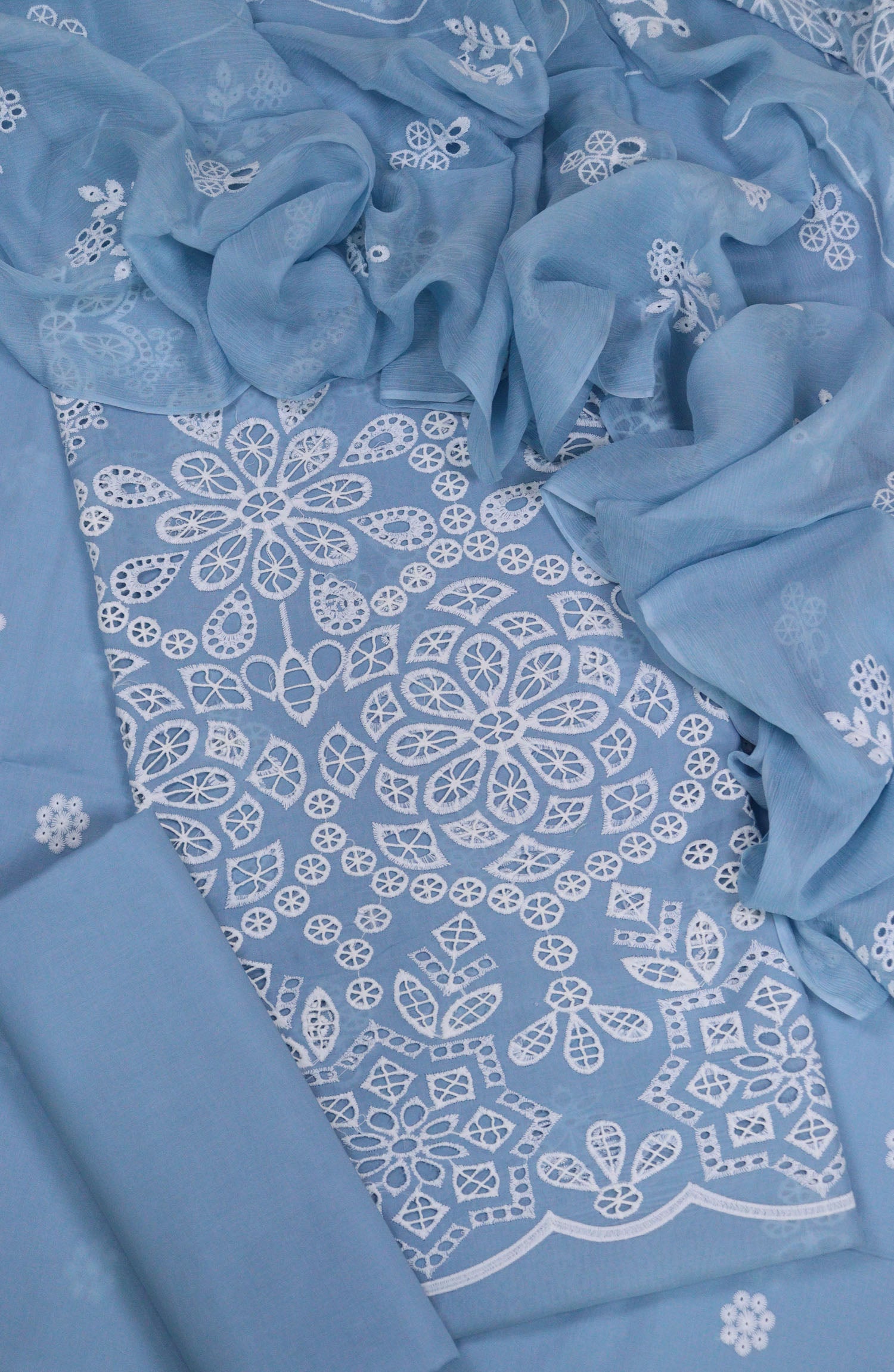 Home Amna Khadija Chikankari Lawn Unstitched 3 Piece Suit - D-04 - AM25ECL - Blue - Summer Collection