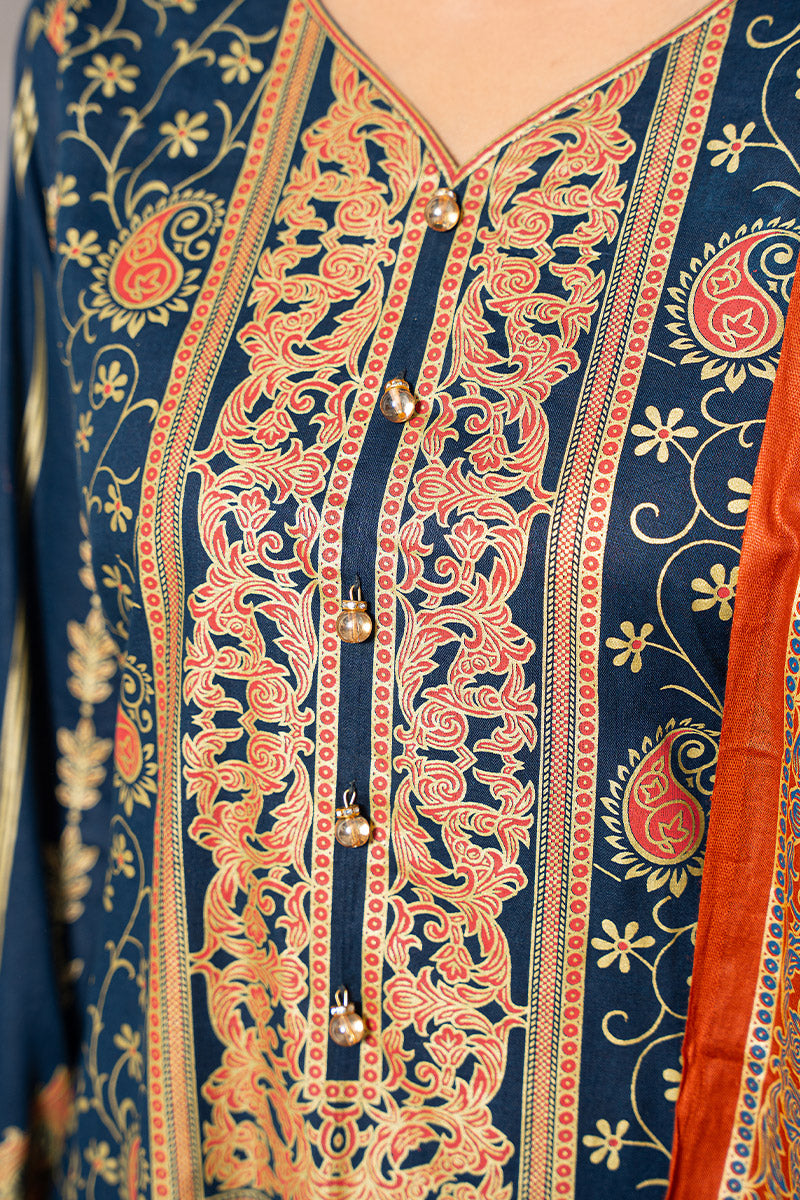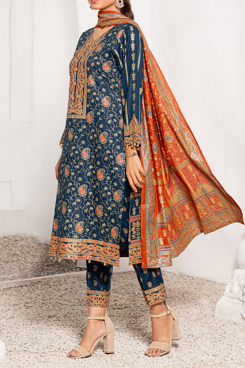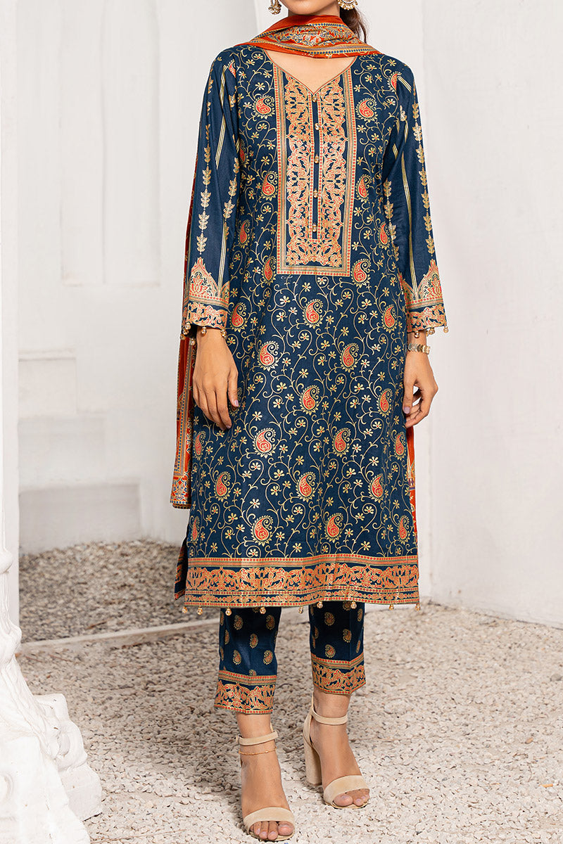 Modest Embroidered Chiffon Stitched 3 Piece Suit - 9615-Nblu - MOD25PRF - Blue - Festive Girls Collection
