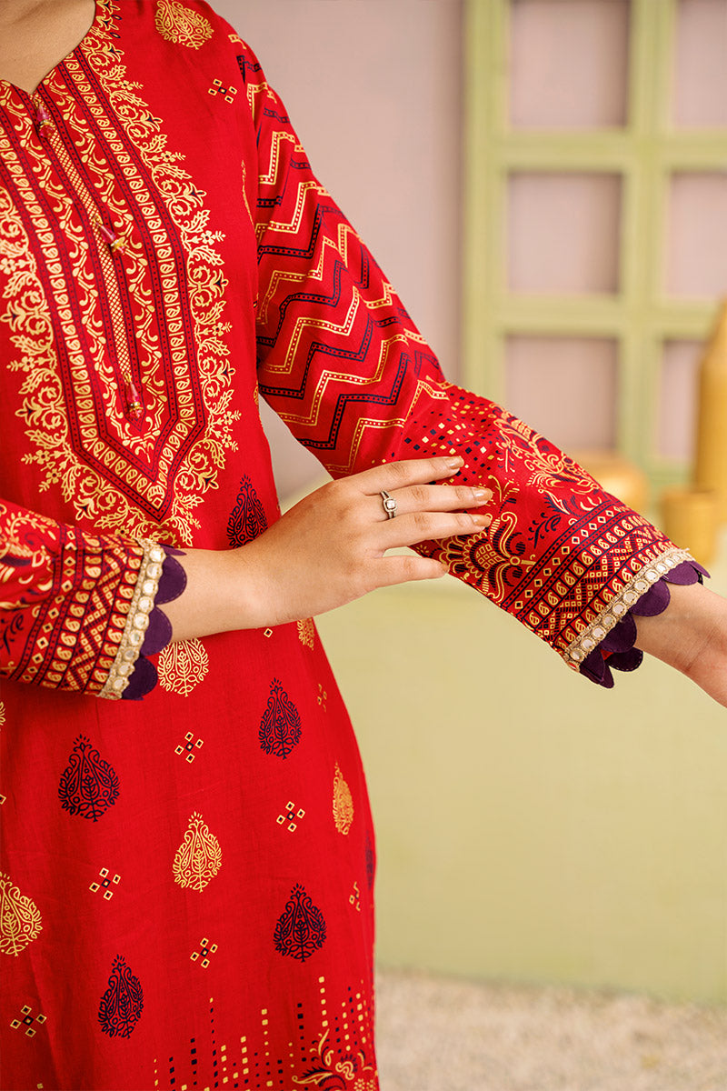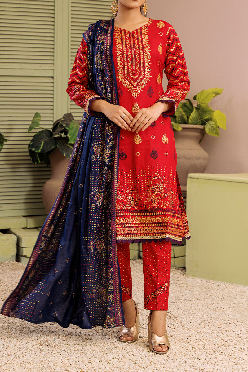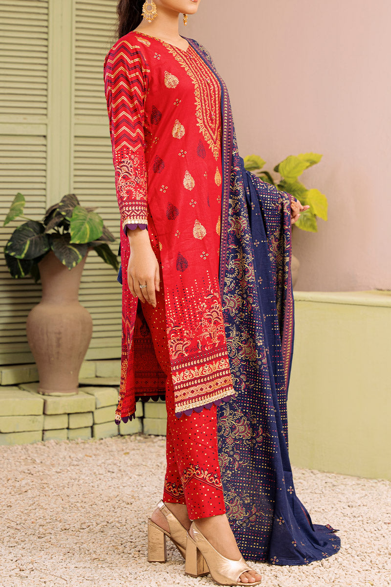 Mahpara by Sadabahar Embroidered Net Stitched 3 Piece Suit - Design-01 - SBD25PRLM - Red - Luxury Festive Collection