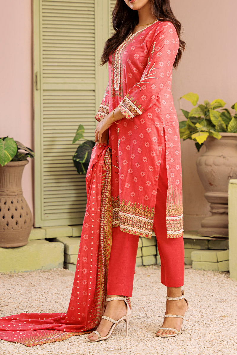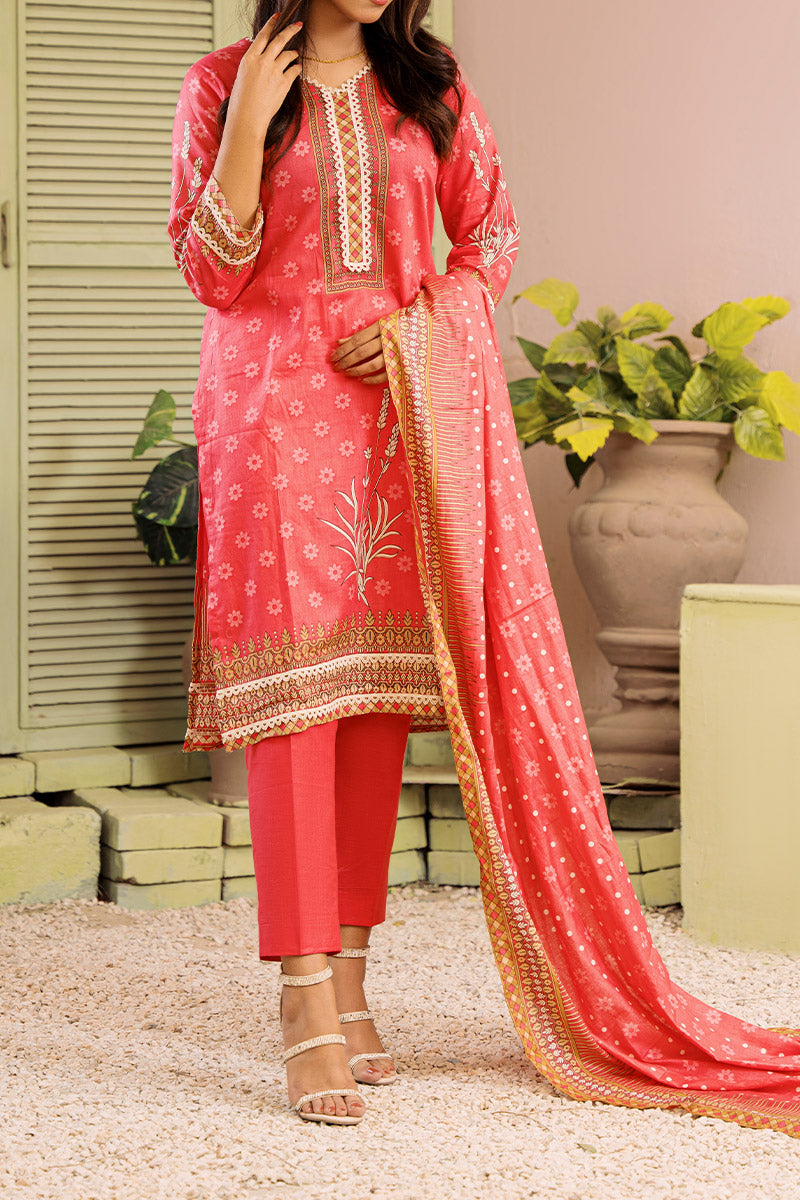 Rua by Casual Lite Embroidered Premium Linen Stitched 3 Piece Suit - D-05 Blush Poem - CL25RU - Pink - Winter Collection