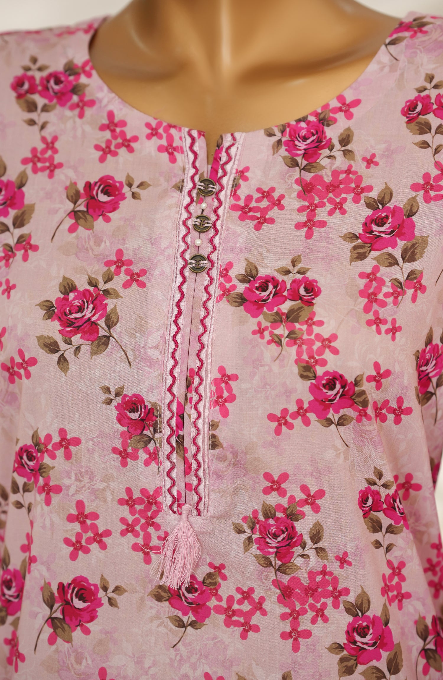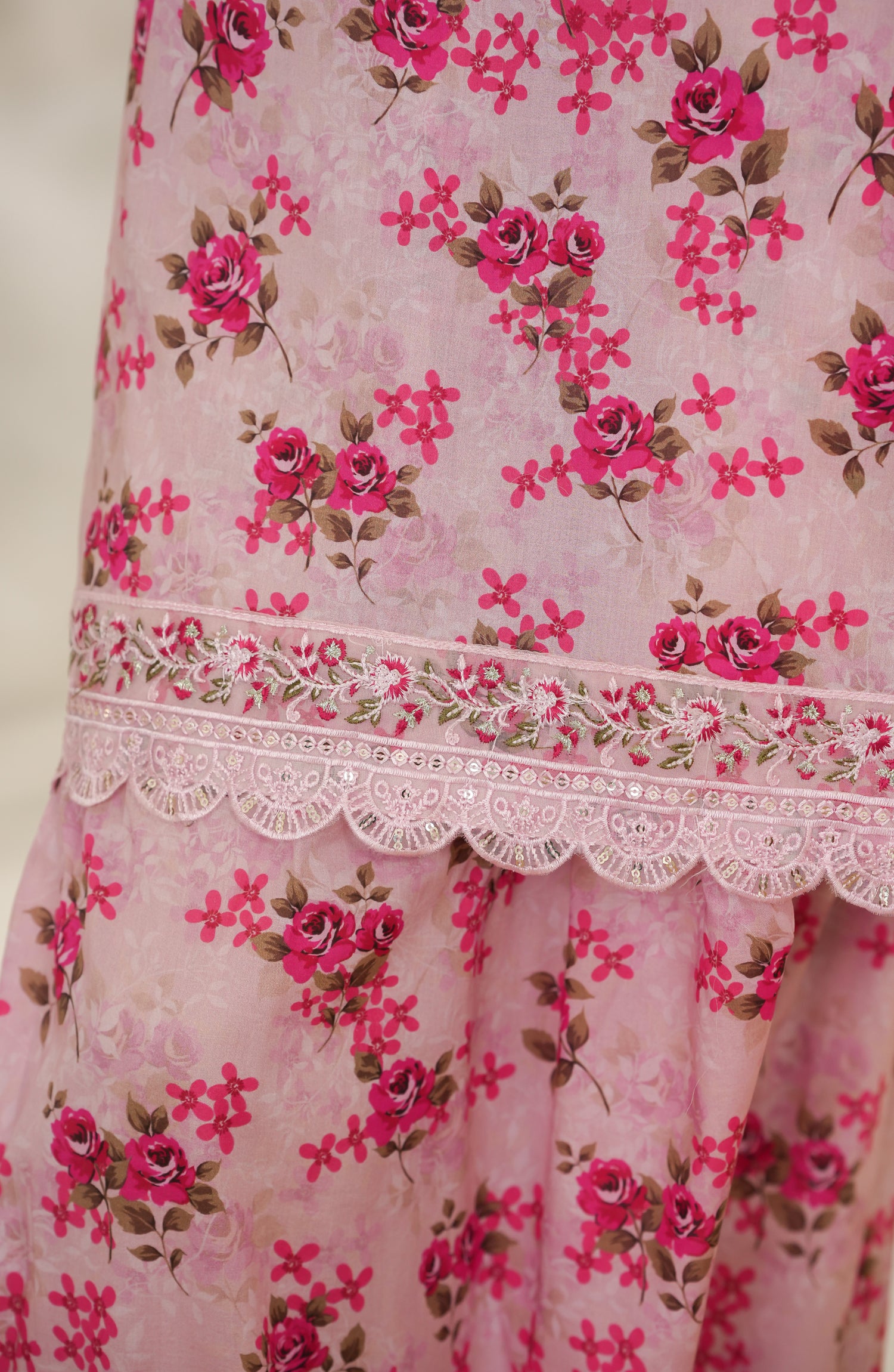 Digital print and embroidered cotton monsoon co-ord set with embellishments and farshi shalwar