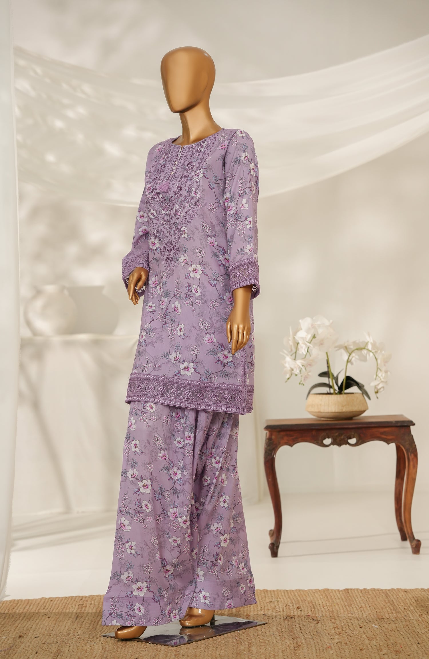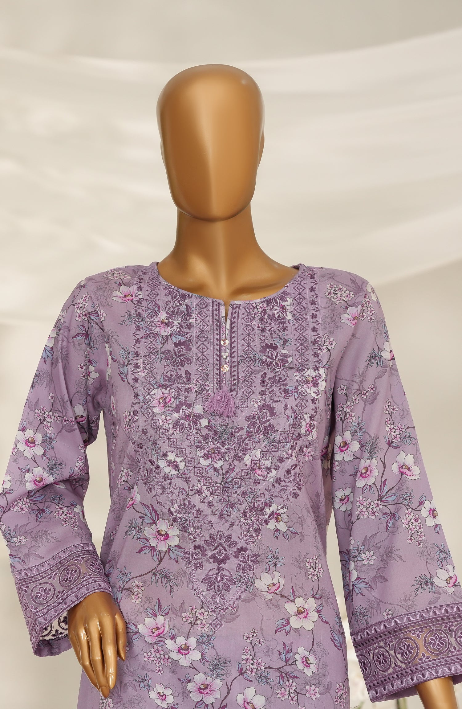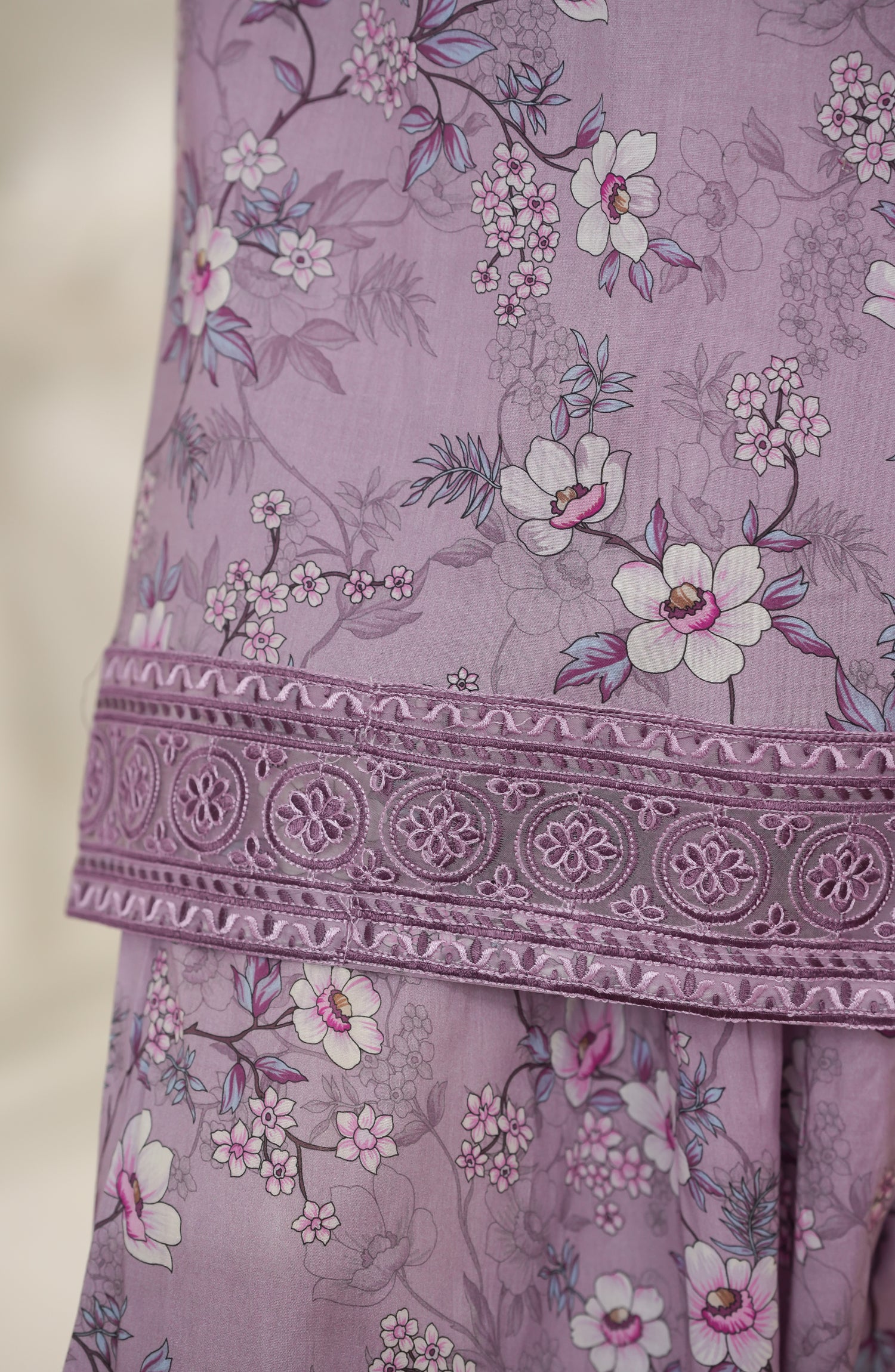 Digital print and embroidered cotton monsoon co-ord set with embellishments and farshi shalwar