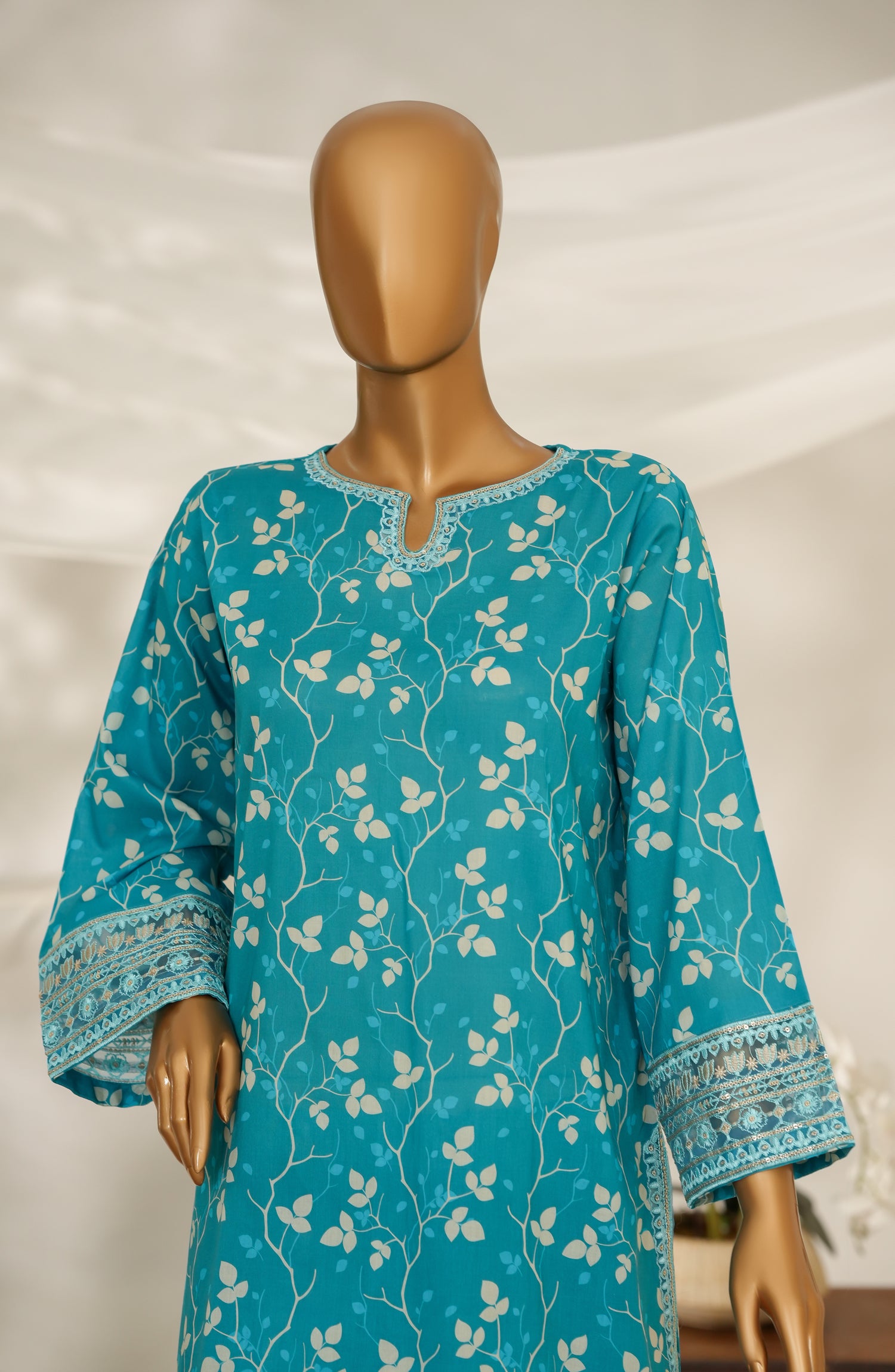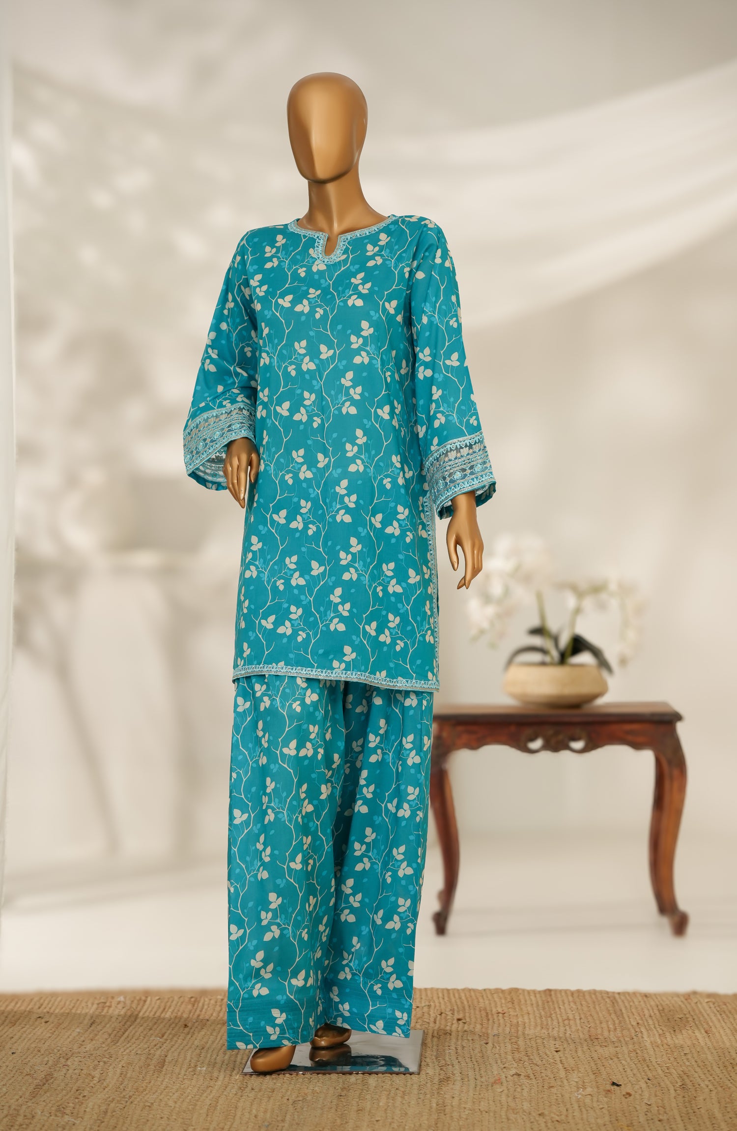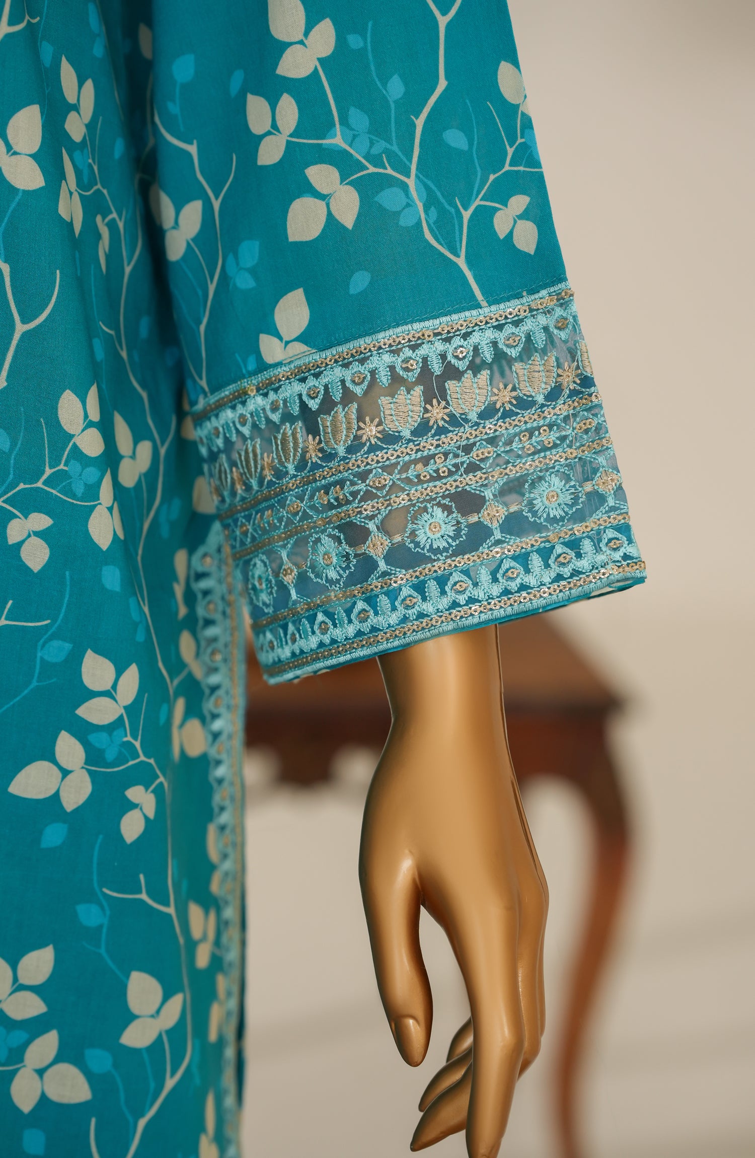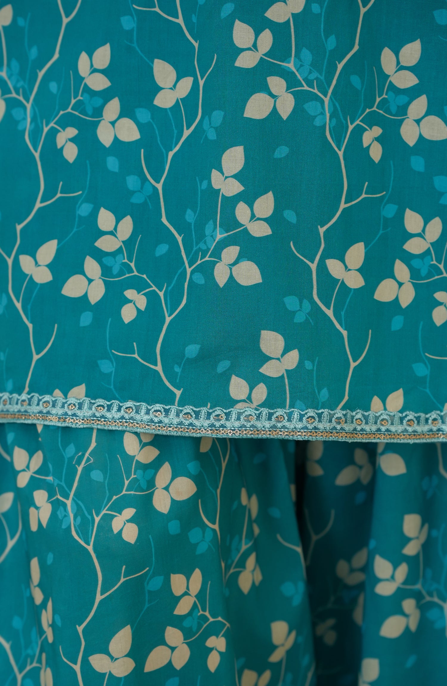Digital print and embroidered cotton monsoon co-ord set with embellishments and farshi shalwar