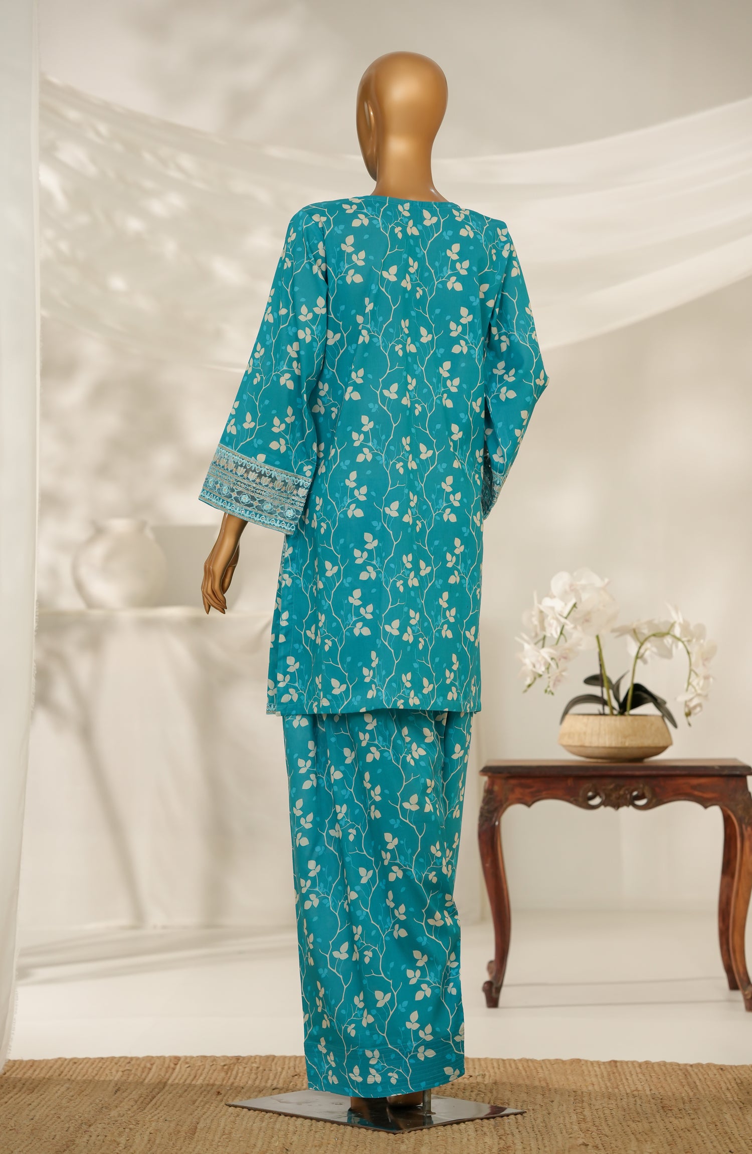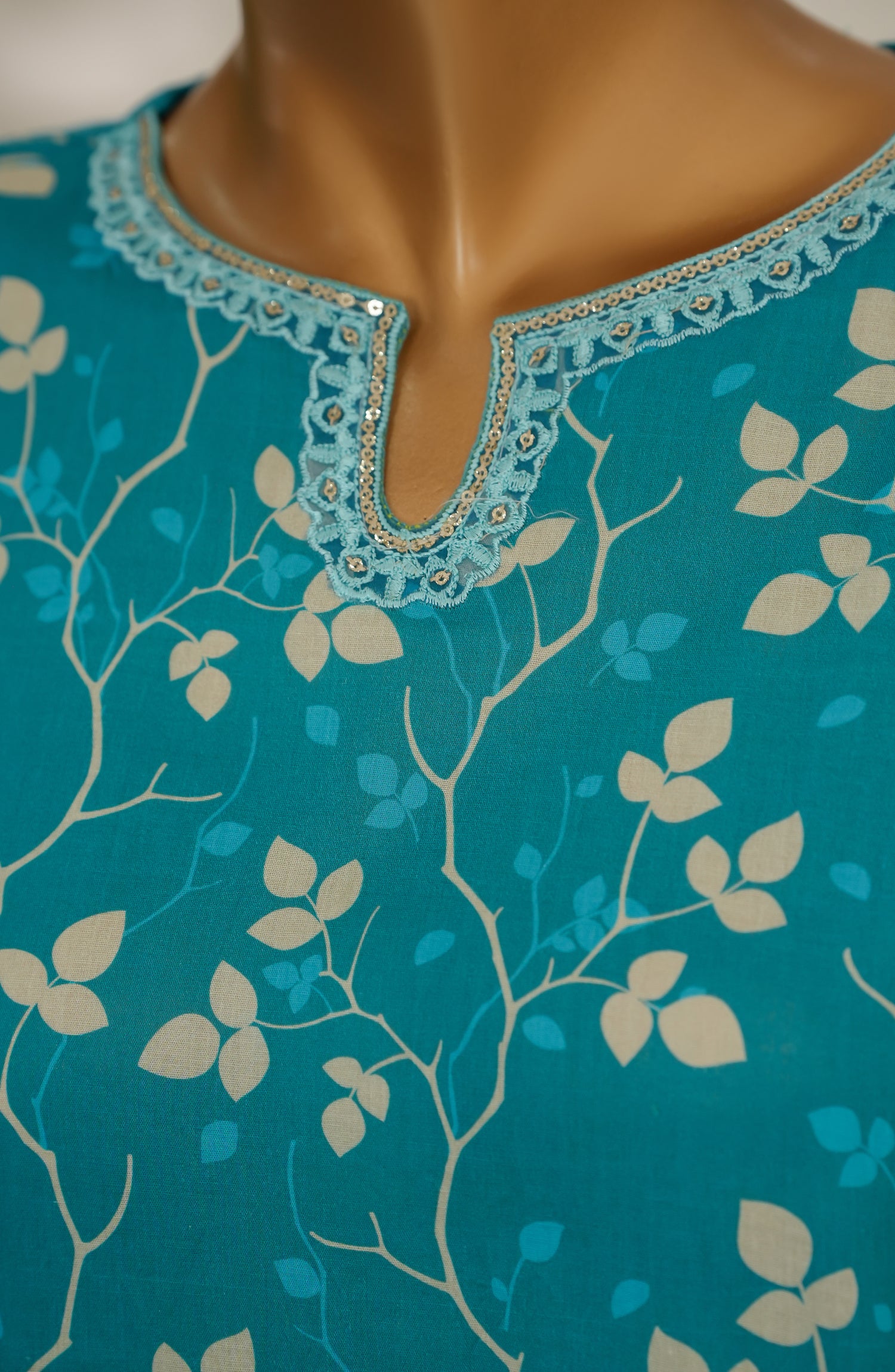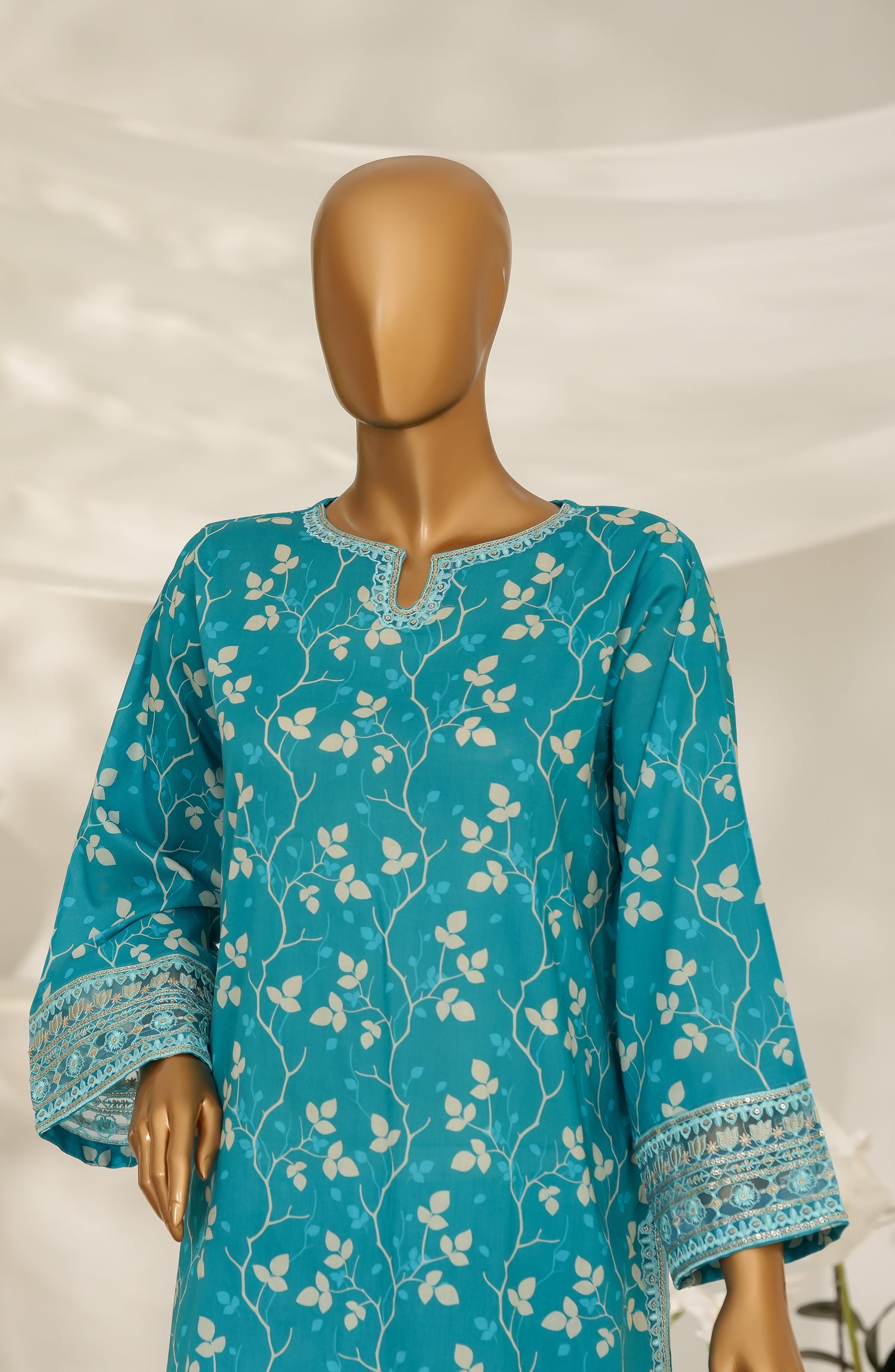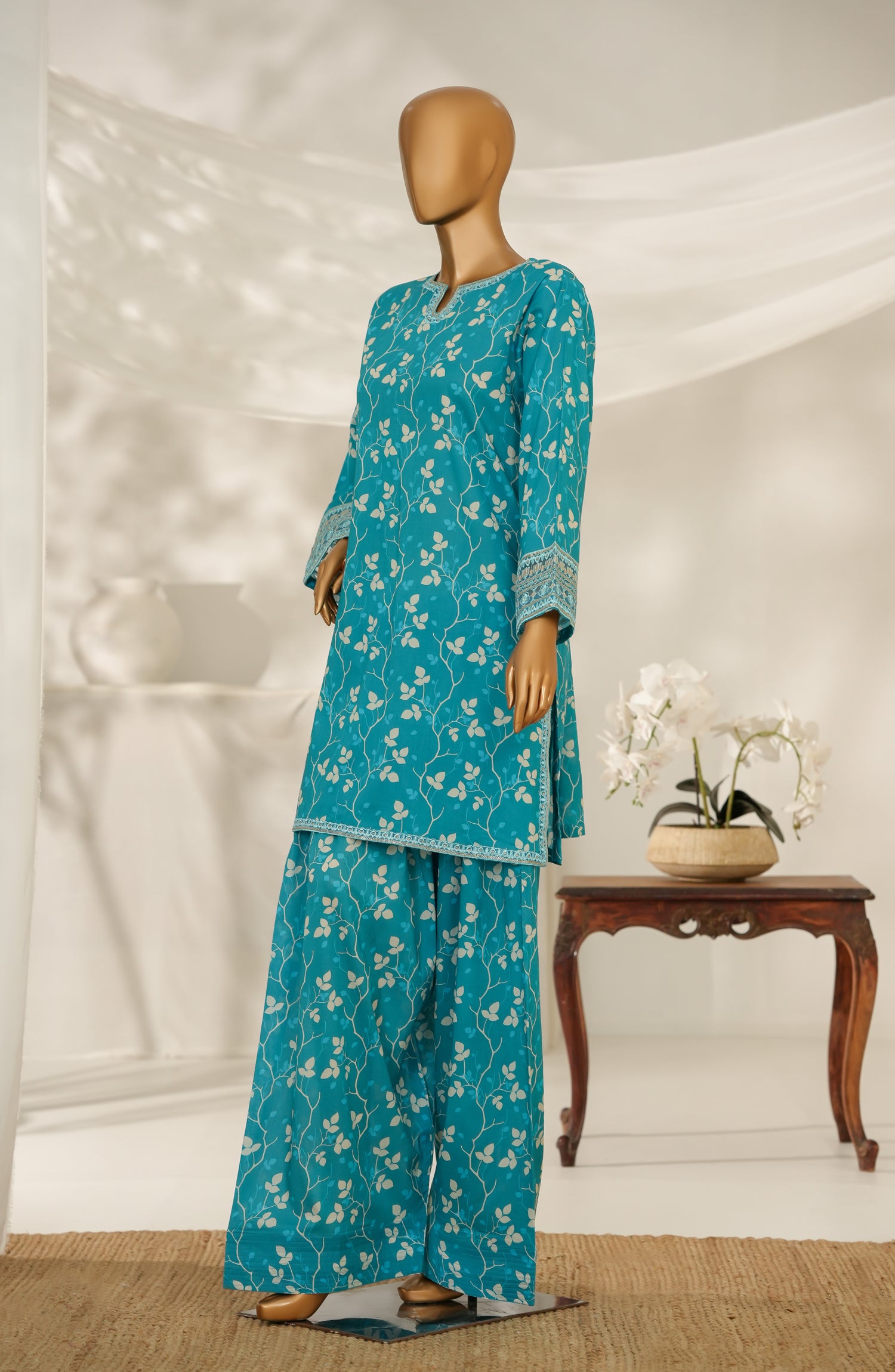 Digital print and embroidered cotton monsoon co-ord set with embellishments and farshi shalwar