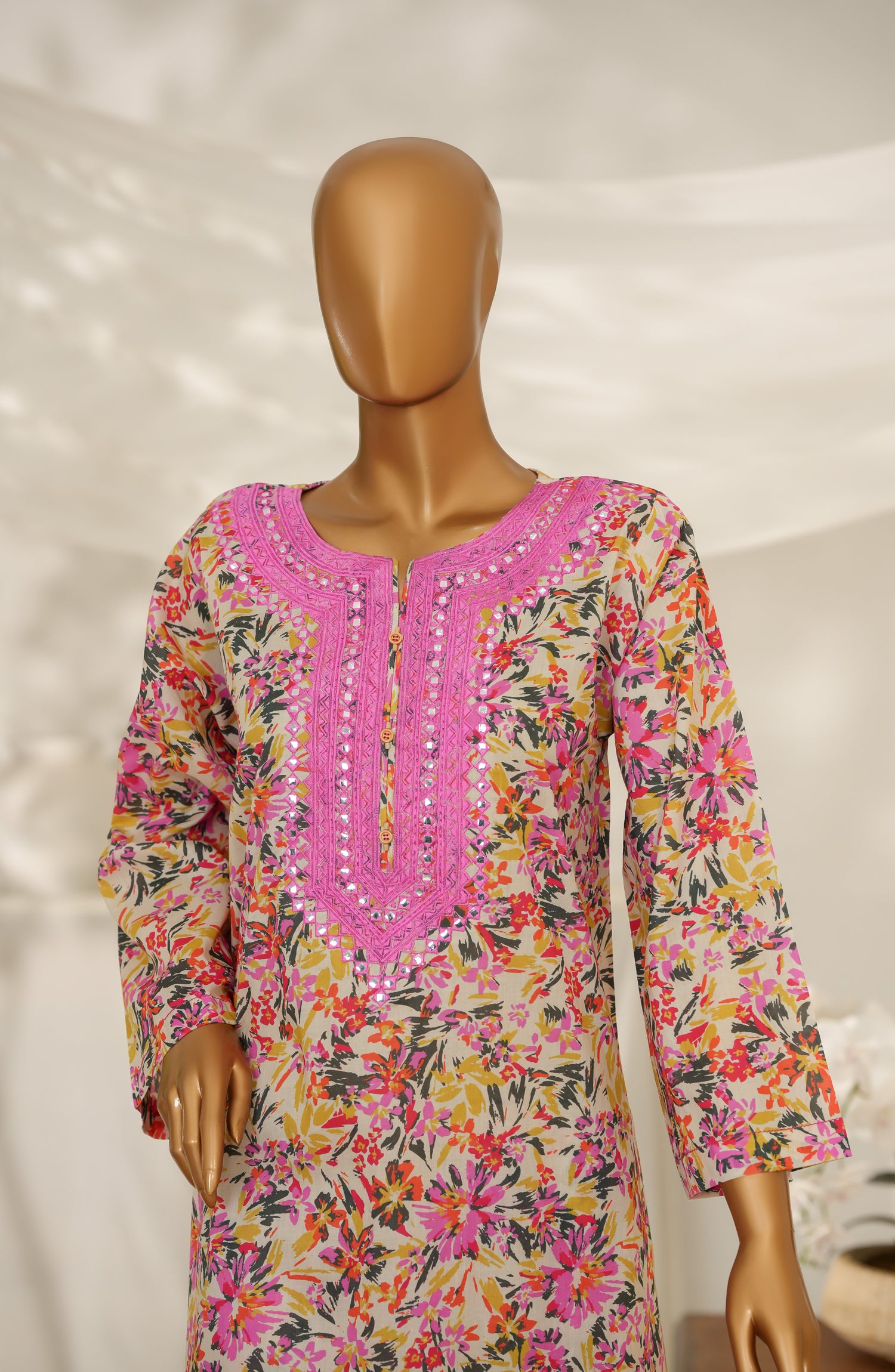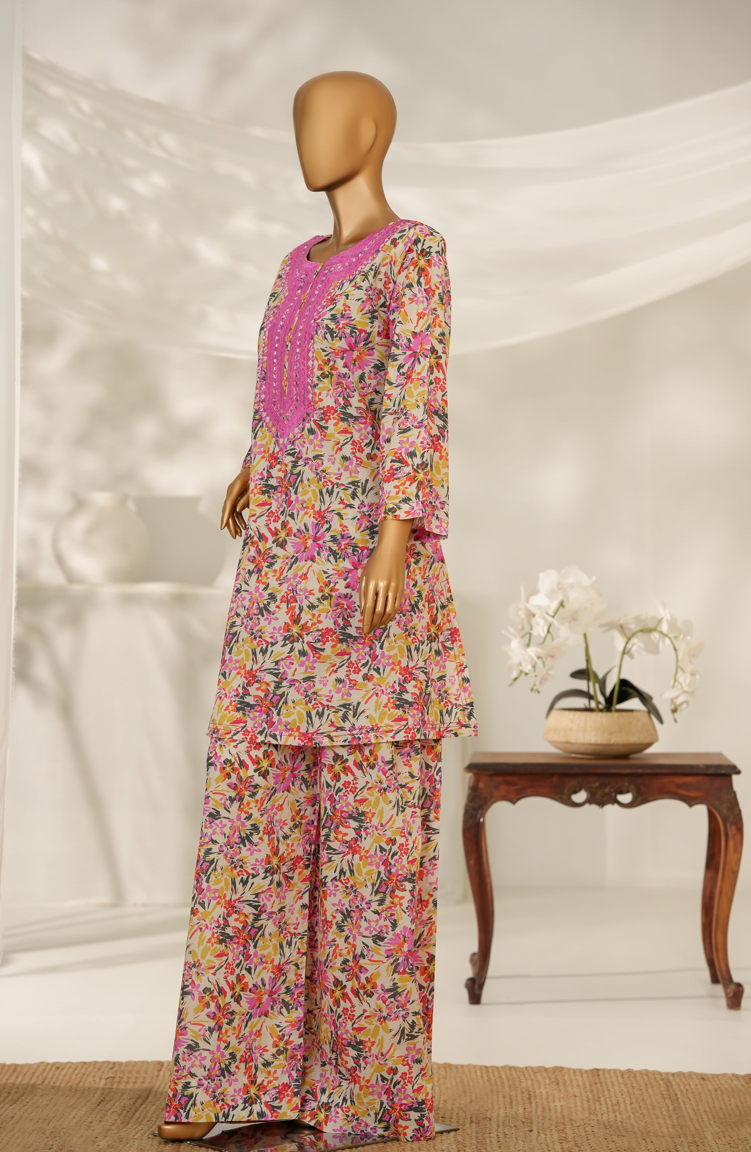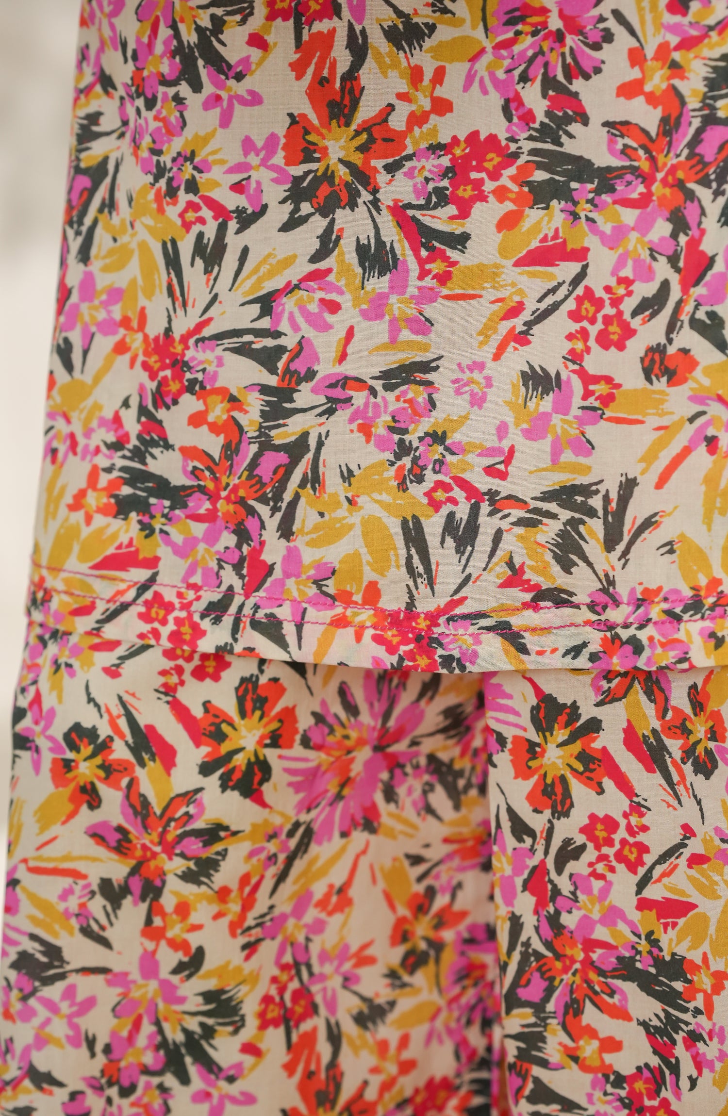 Digital print and embroidered cotton monsoon co-ord set with embellishments and trouser