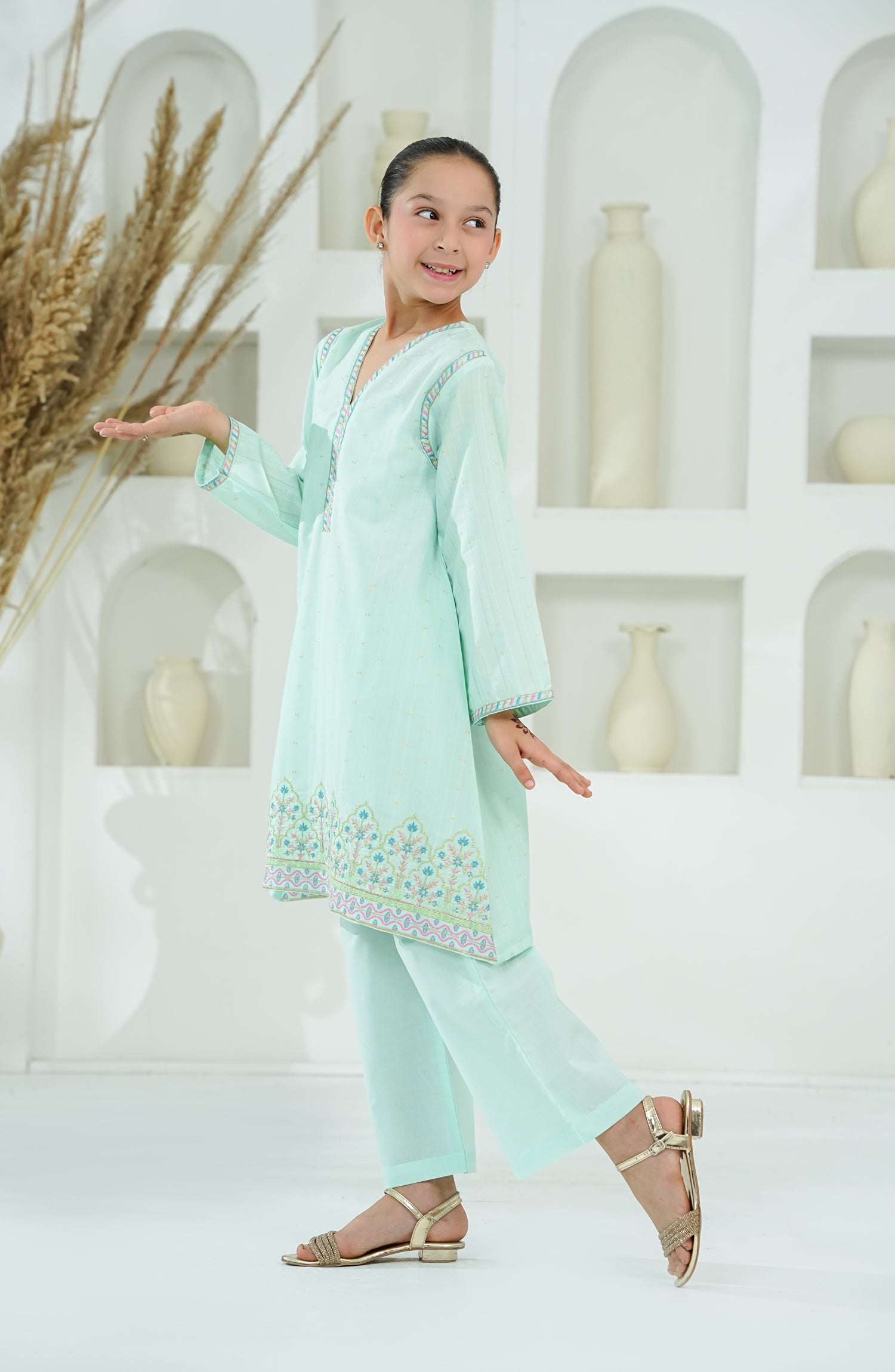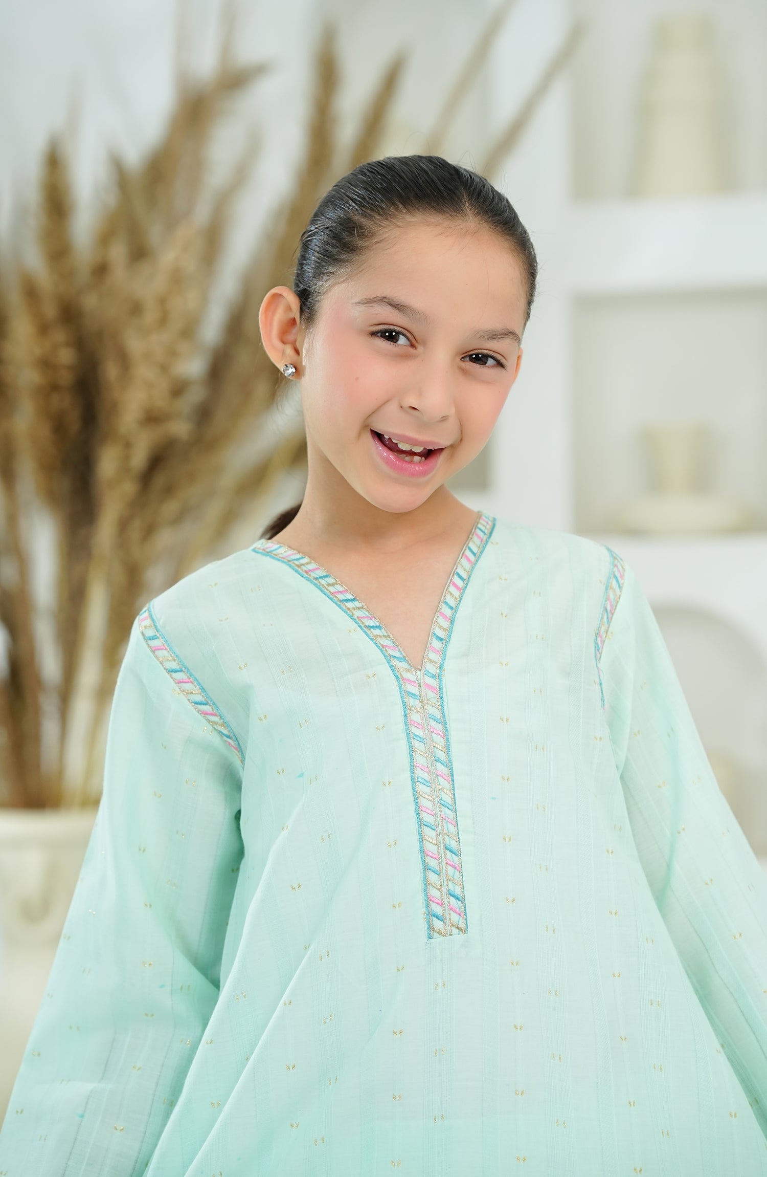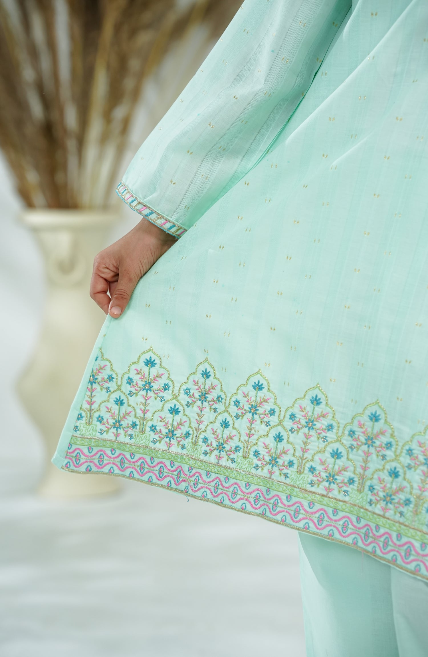 Self cotton Jacqard Shirt with Embroidered Neck & Daman