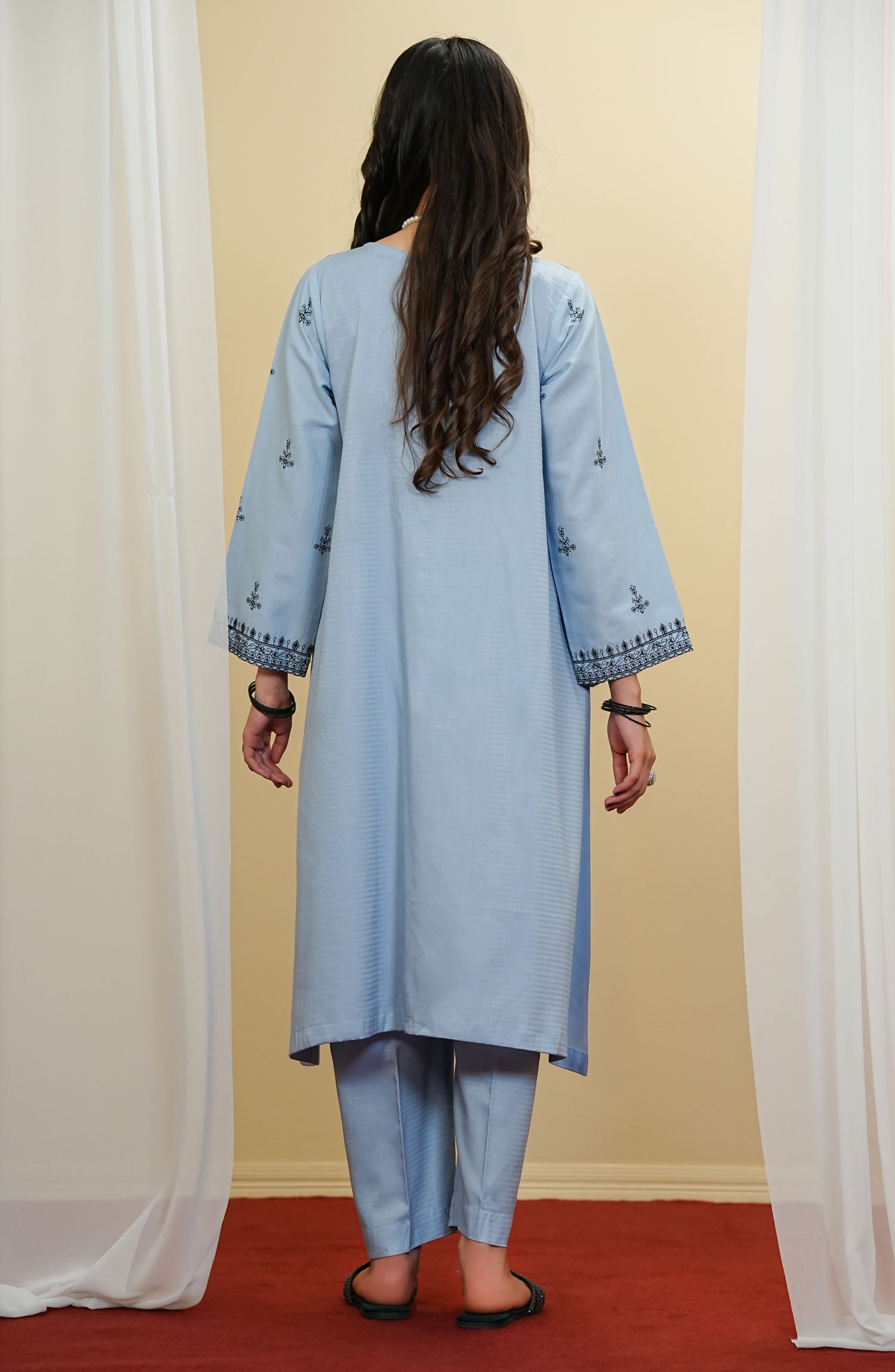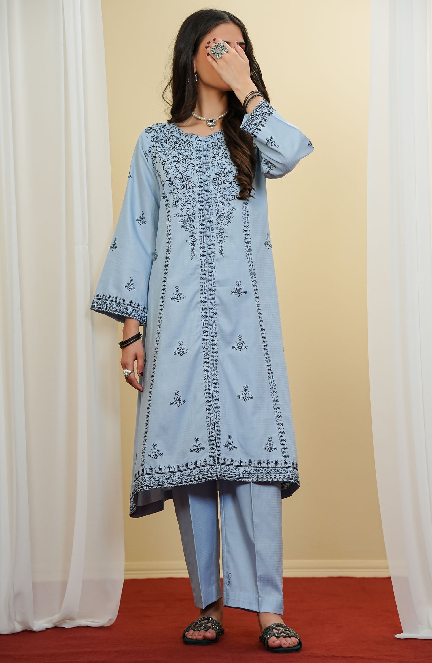 Amna Khadija Embroidered Cotton Stitched 2 Piece Suit - RTWRED-03 - AM25RTWRED - Blue - Summer Collection
