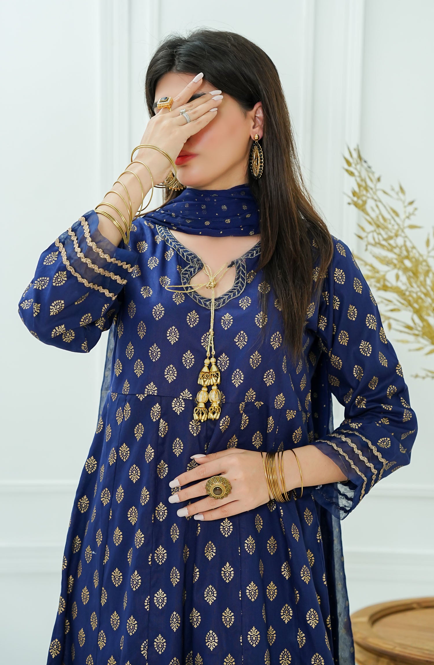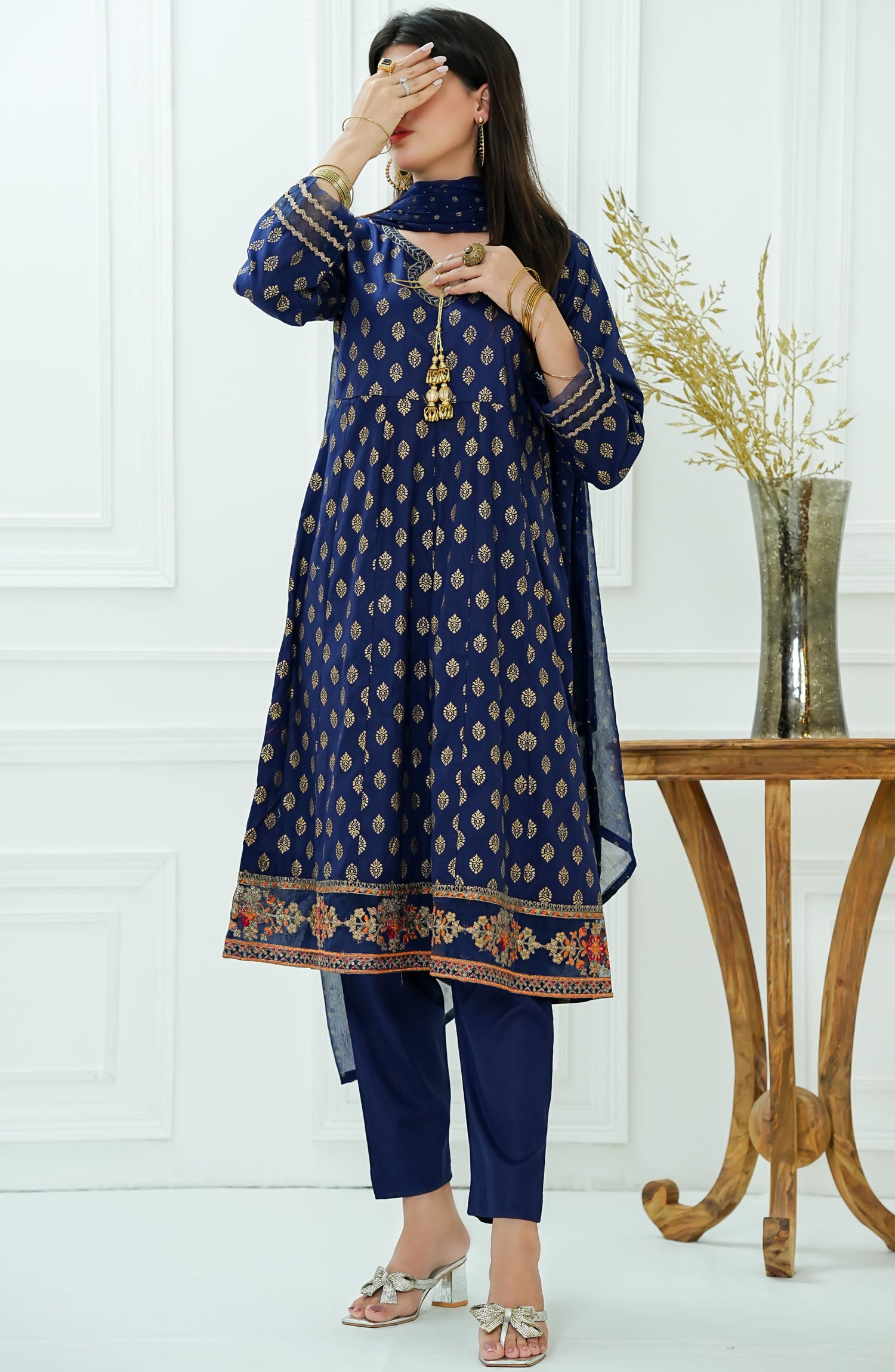 Amna Khadija Embroidered Cotton Stitched 3 Piece Suit - BBMDD-07-M - AK25BNBD2 - Blue - Summer Collection
