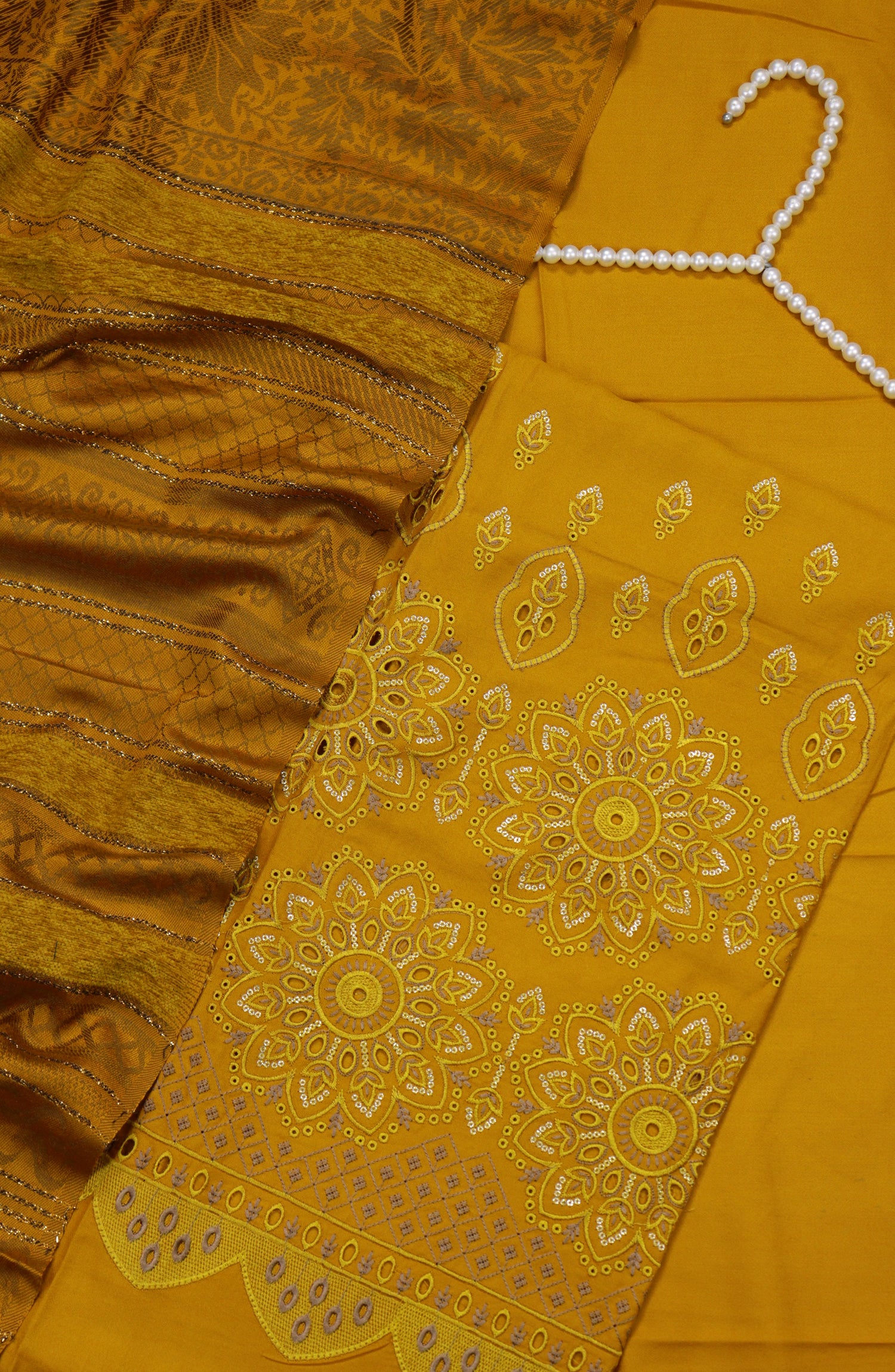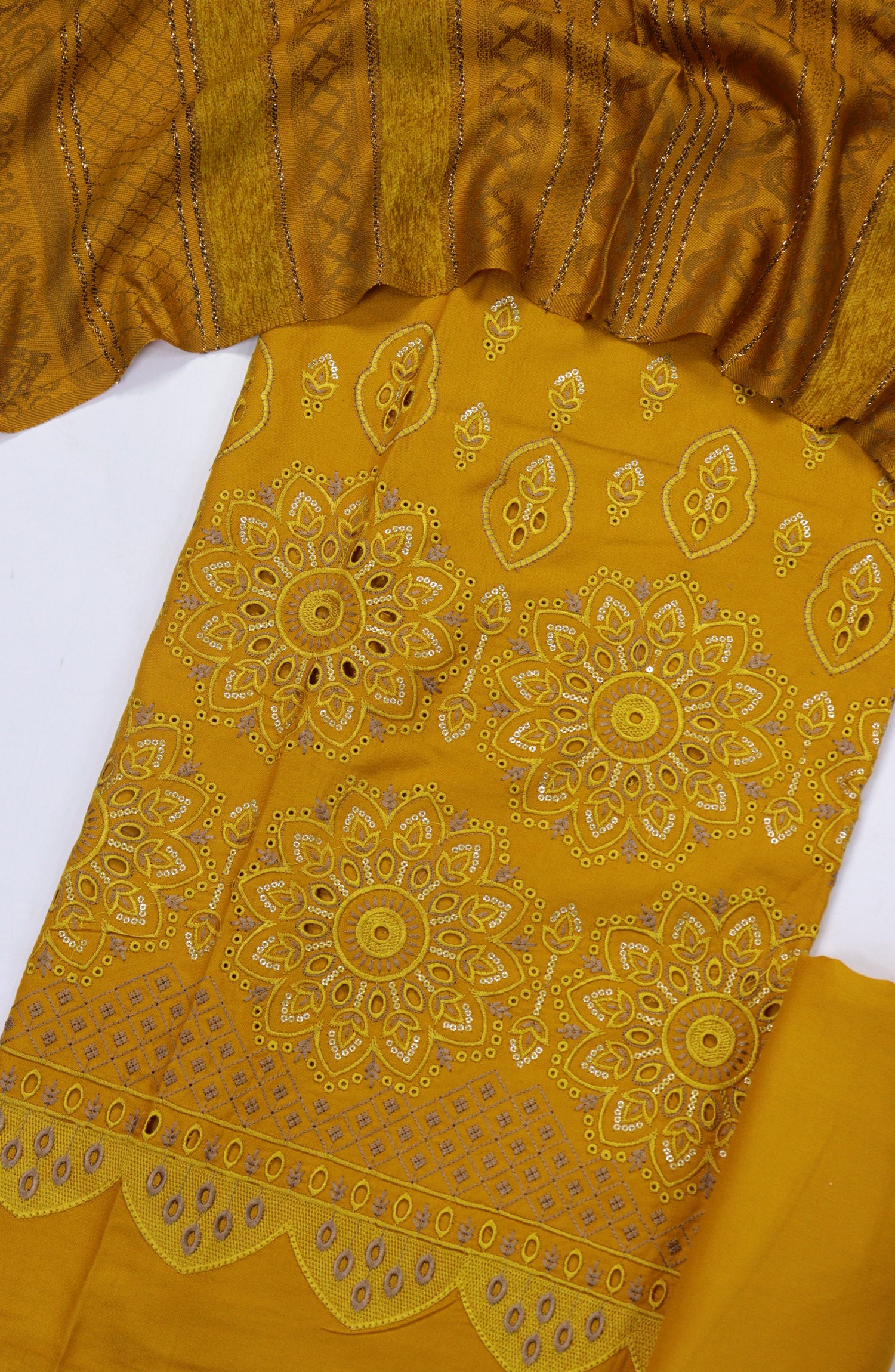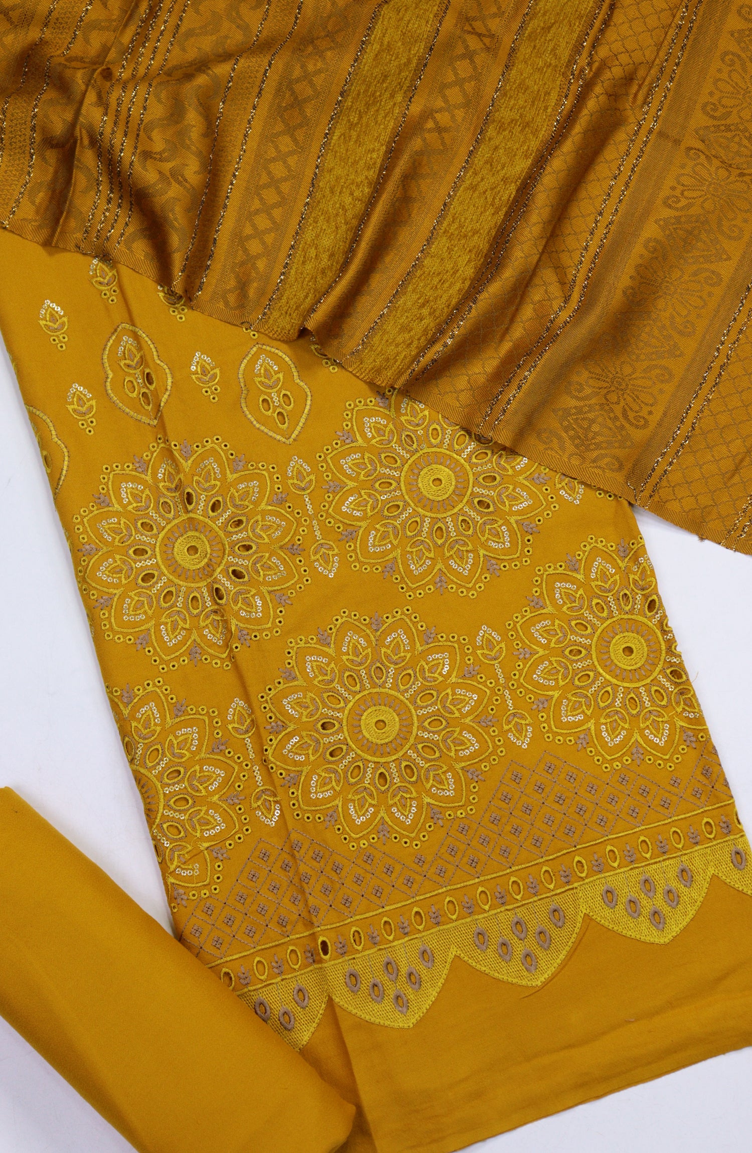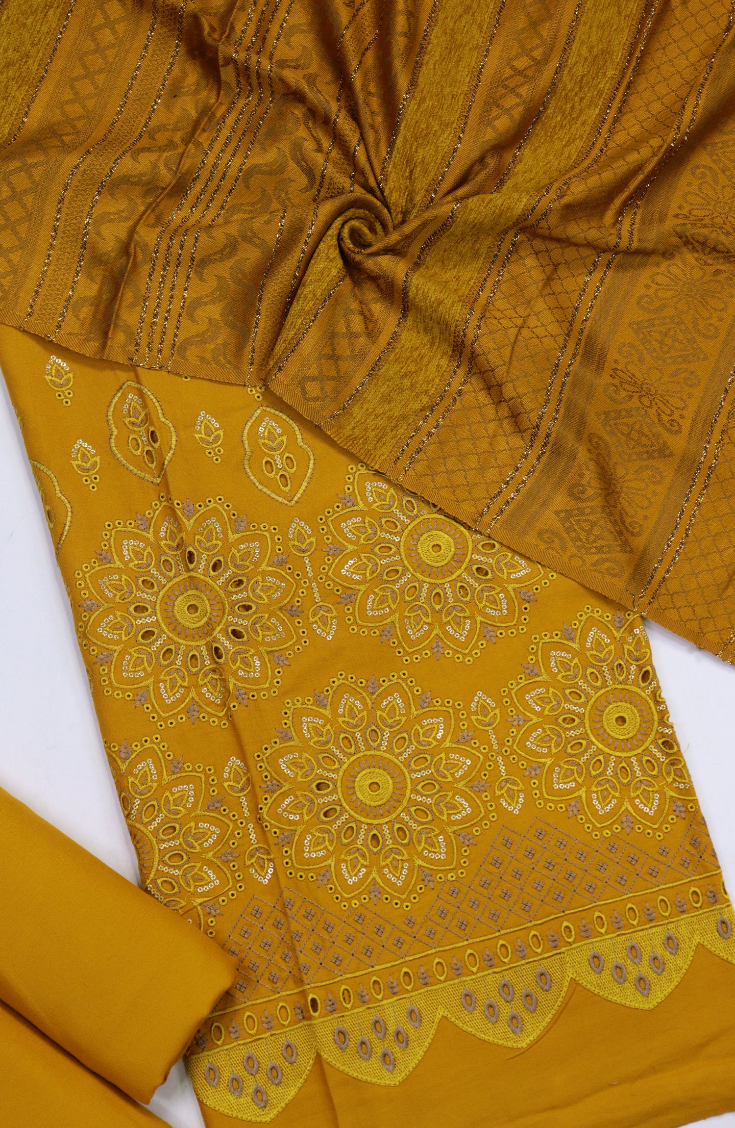 Embroidered Dhanak Chikankari Unstitched 3 Piece Suit with Jacquard Banarsi Wool Shawl