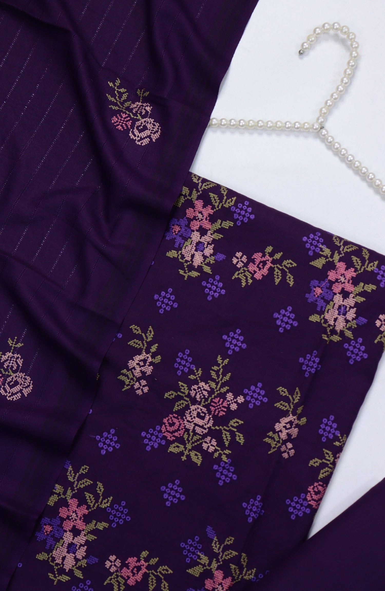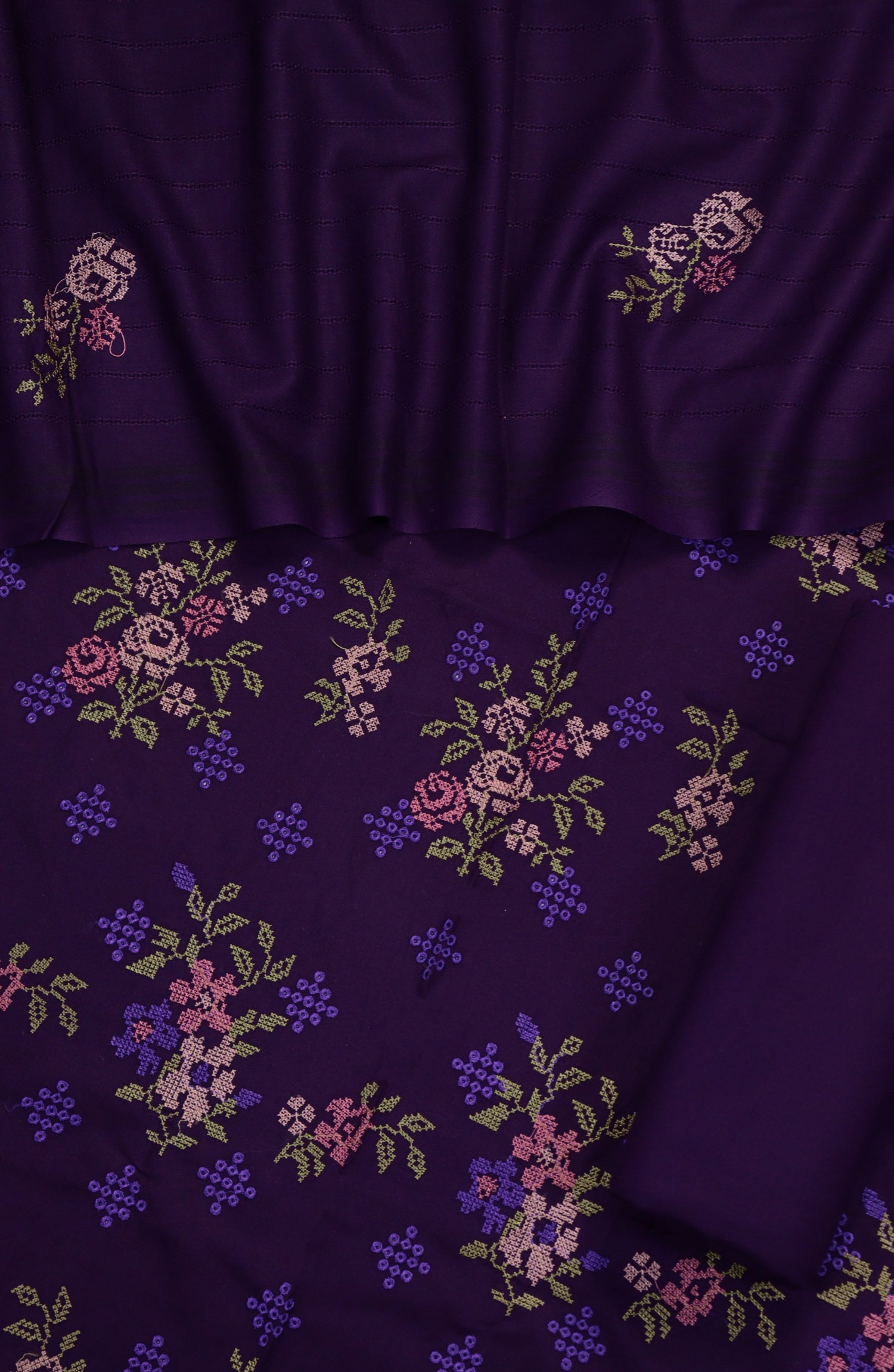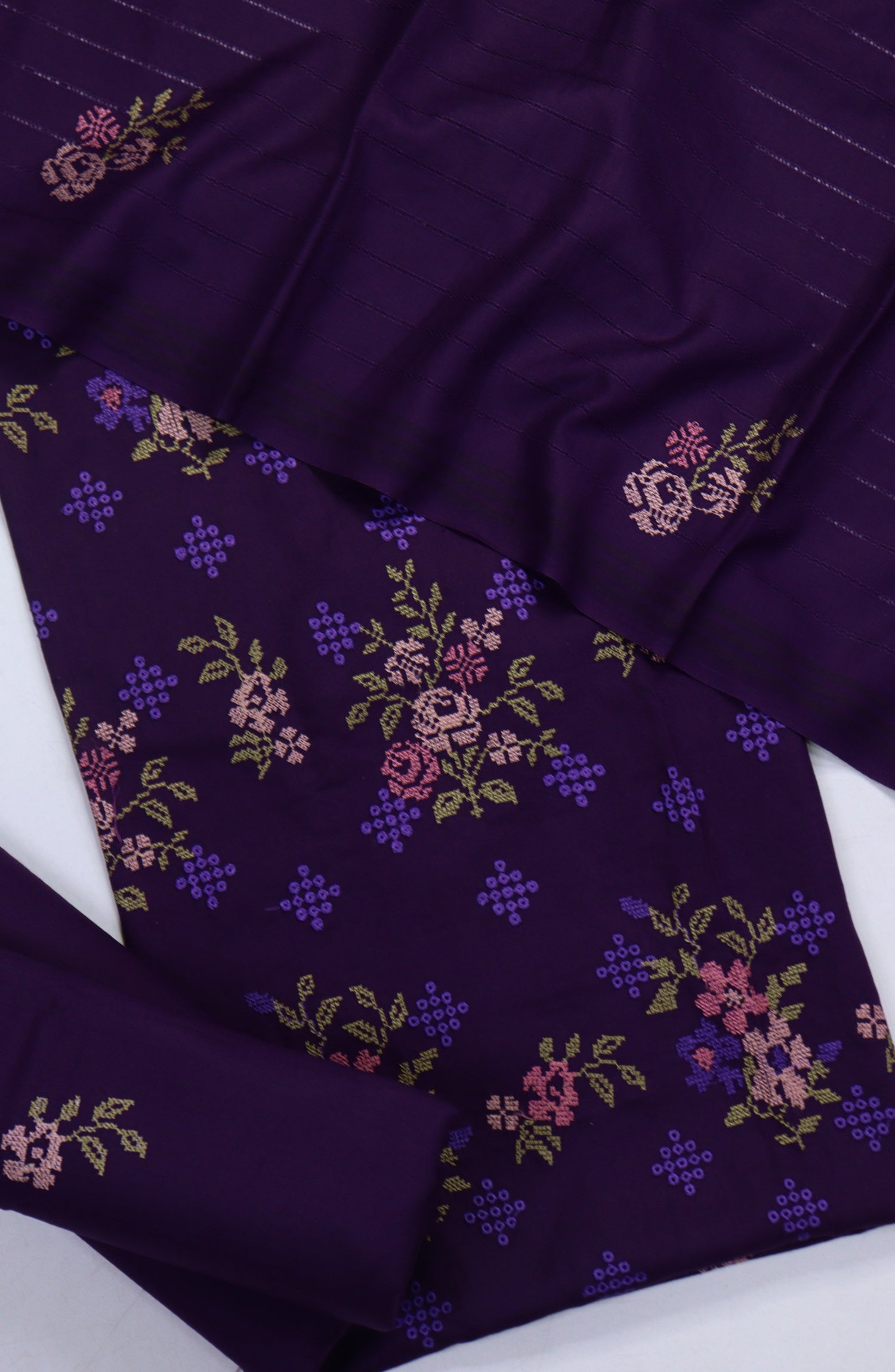 Cross Stitch Embroidered Dhanak Unstitched 3 Piece Suit