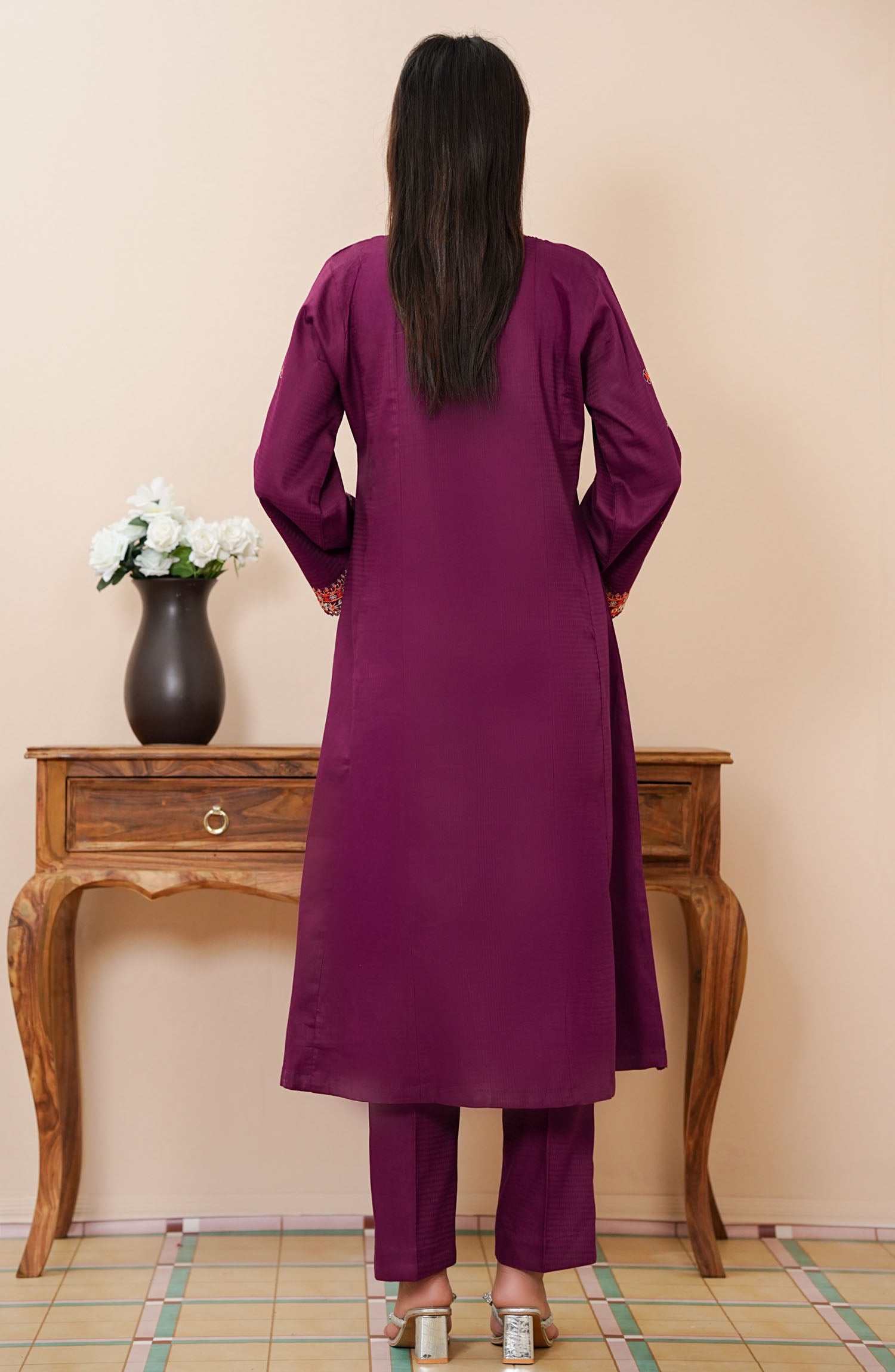 Amna Khadija Embroidered Jacquard Stitched 2 Piece Suit - WCPTD-02 - AM25WCPTD - Magenta - Casual Collection