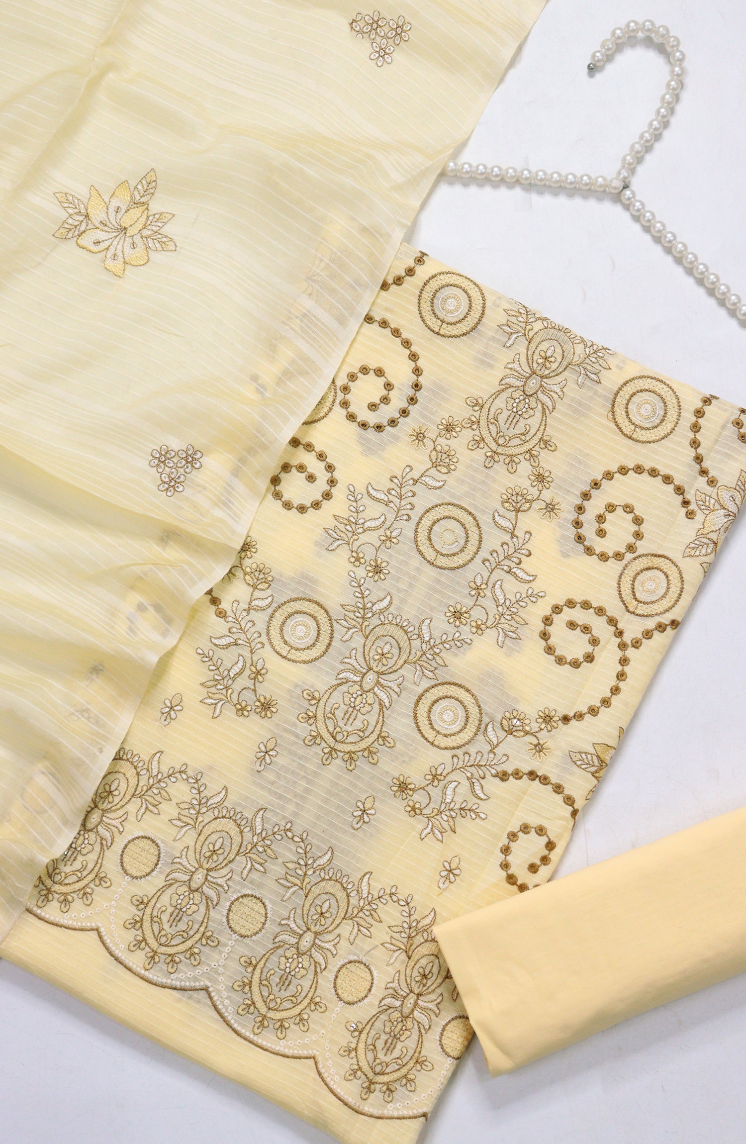 Premium Lawn Doriya Dyed Arts Double Head Fancy Embroidered Shirt