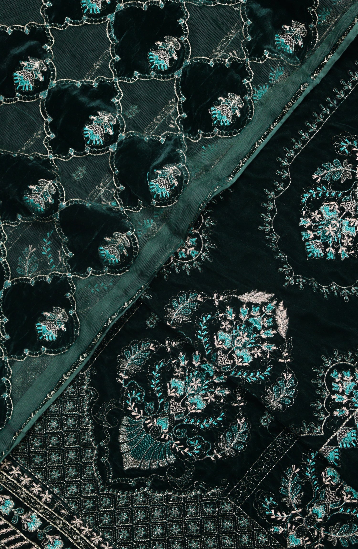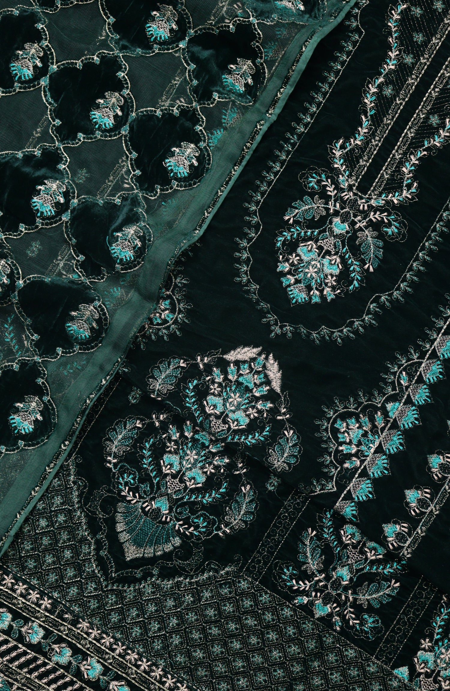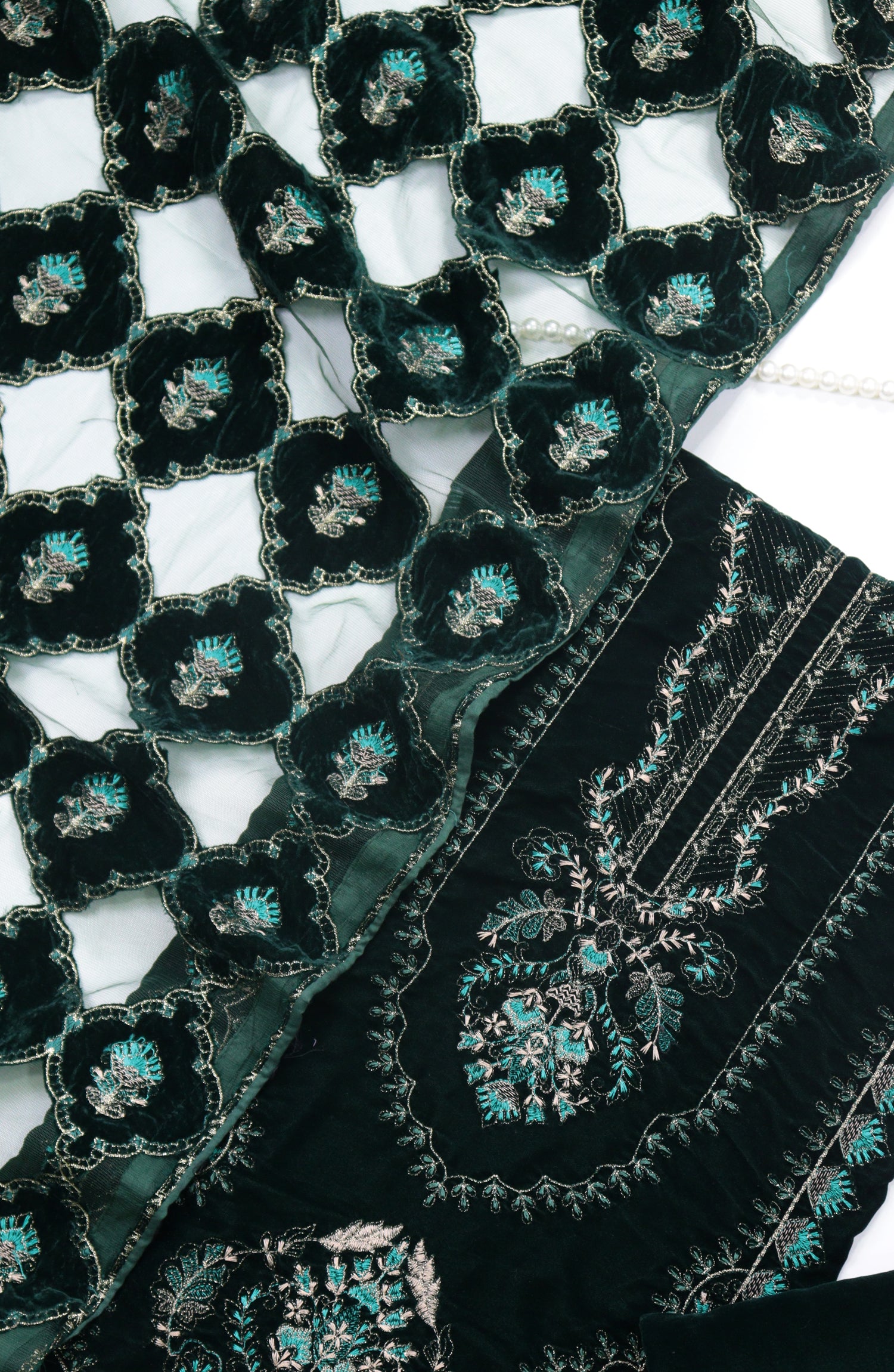 Luxury Embroidered Unstitched Velvet 3 Piece Suit Net Dupatta with Velvet Embroidery