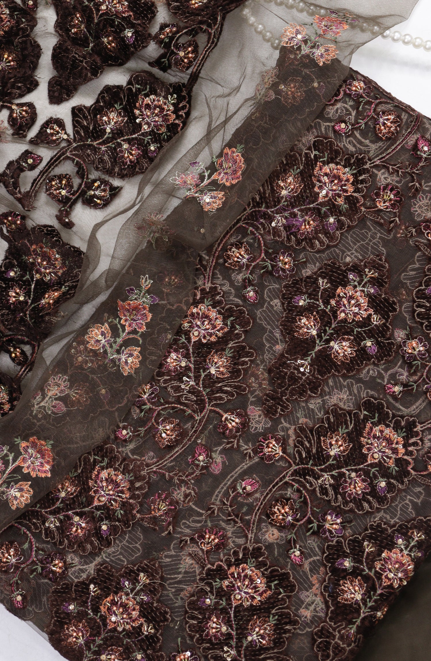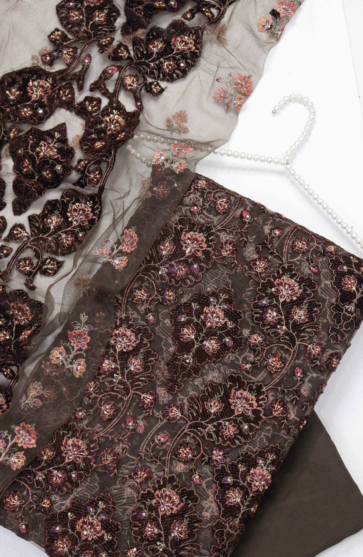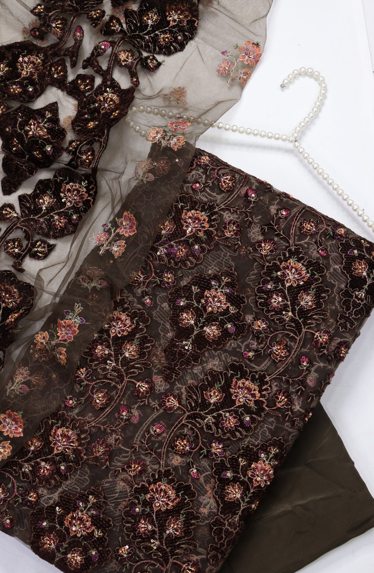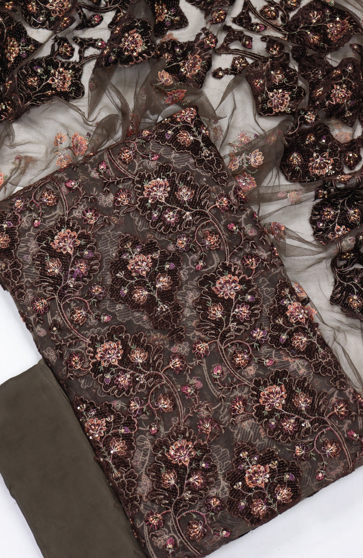 Luxury Net Unstitched Shirt with Velvet Embroidery and Handwork