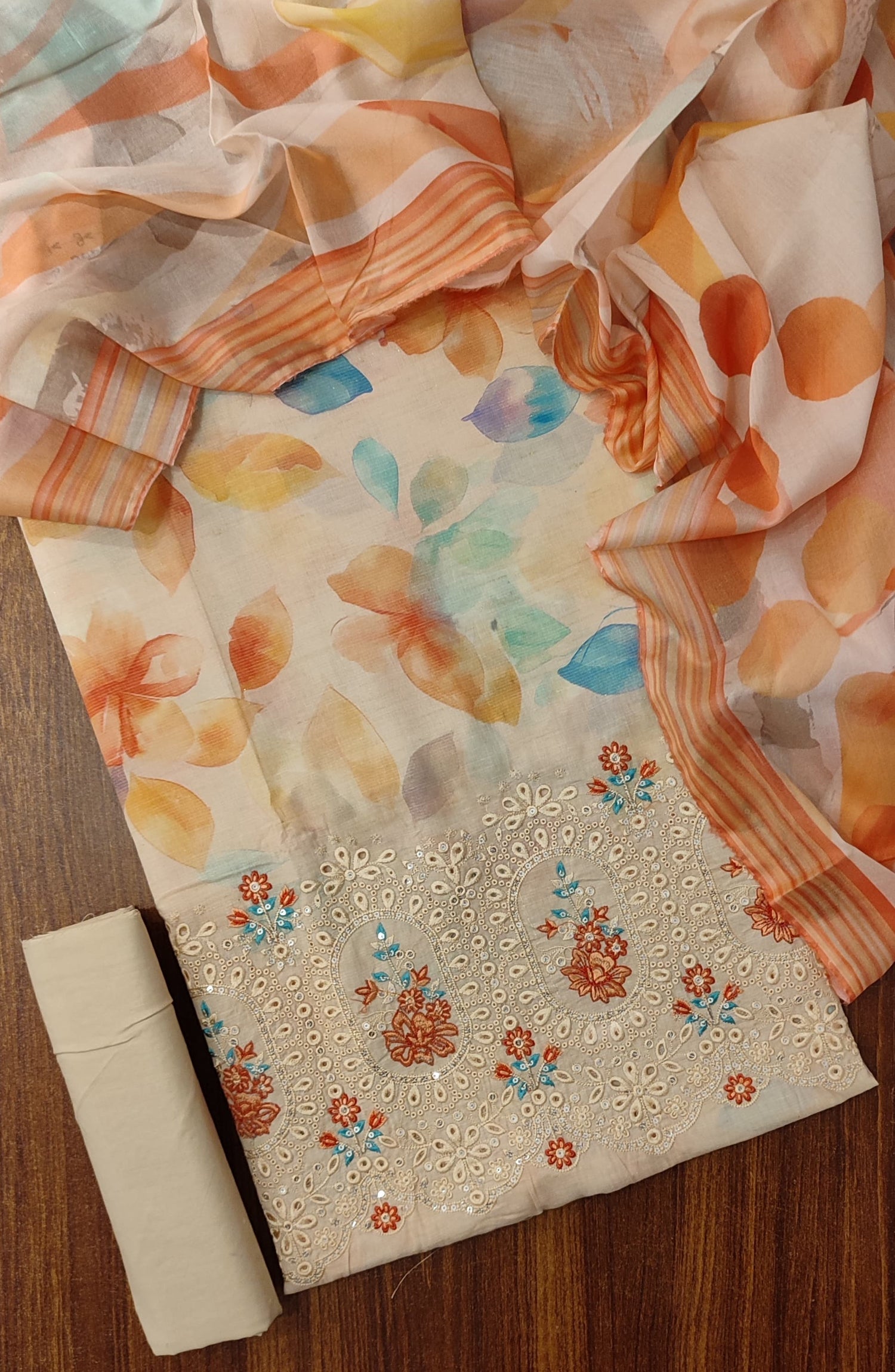 Unstitch Fancy Base Chikankari Daman Boring Fabric for Shirt