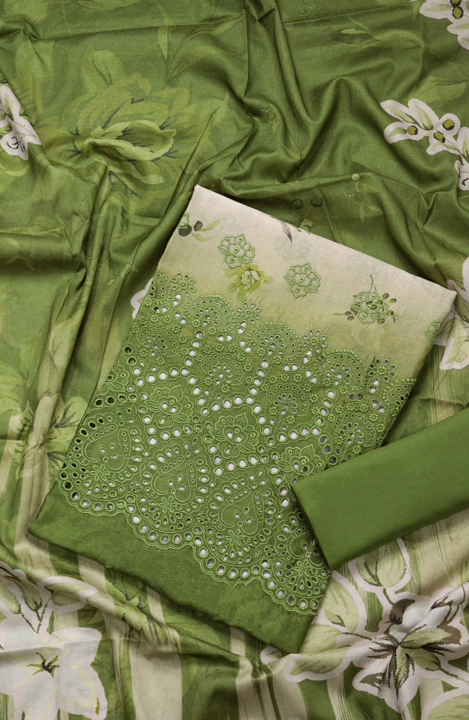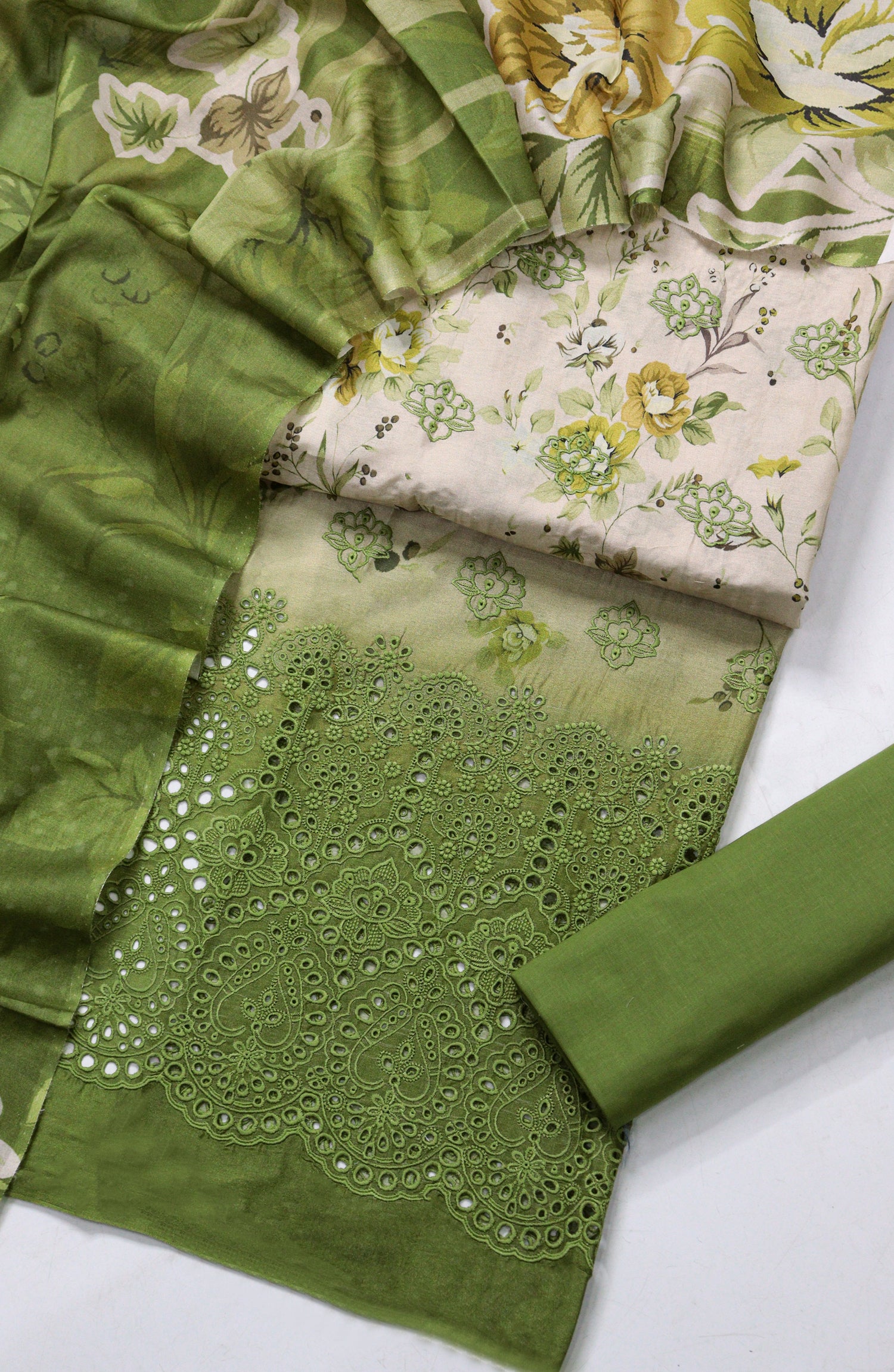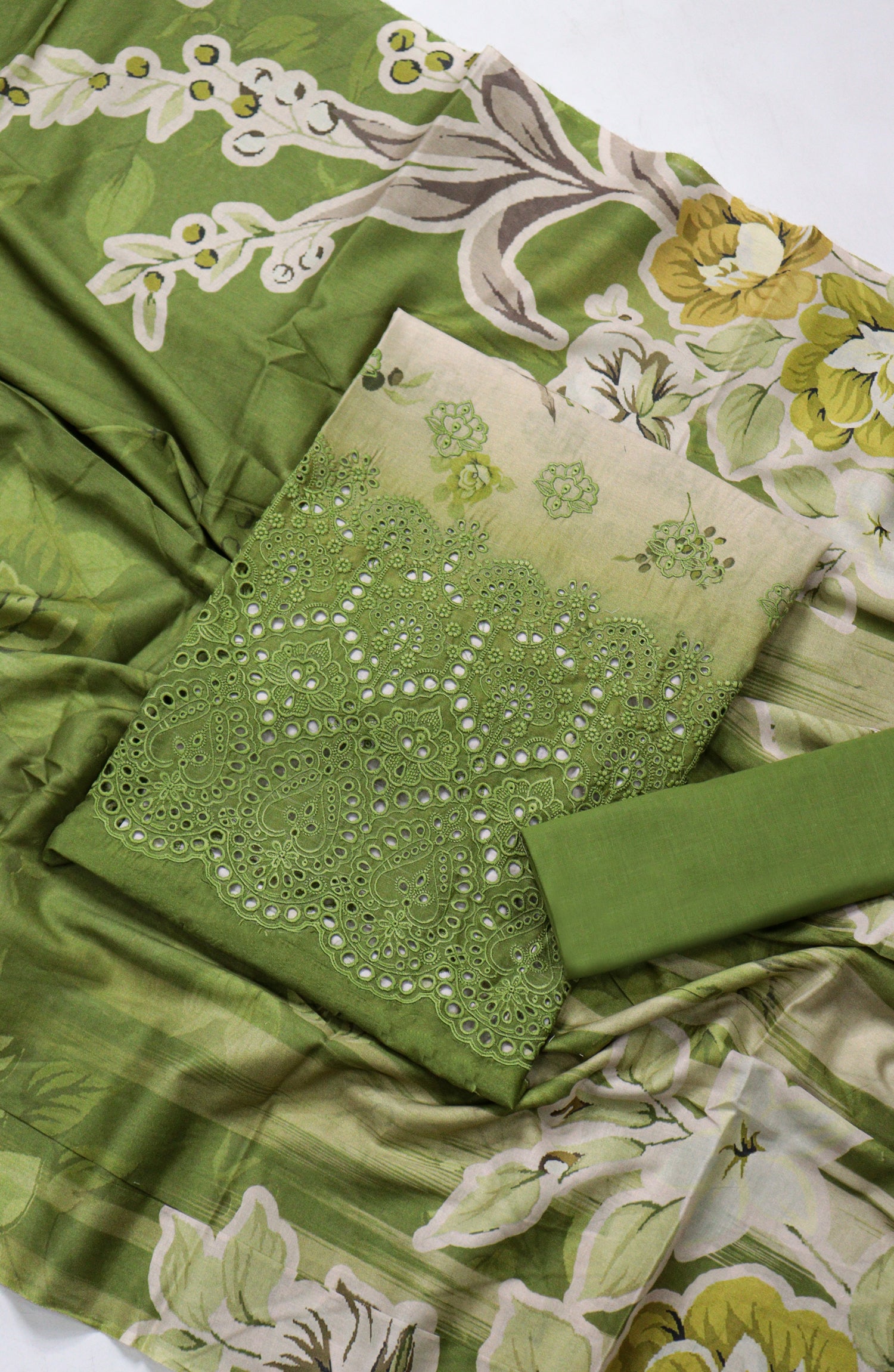 Premium Lawn Digital Print Daman Shifli Boring Shirt with Boring Embroidered Bazo with Premium Voil Digital Print Dupatta & Premium Cotton Dyed Same Trouser