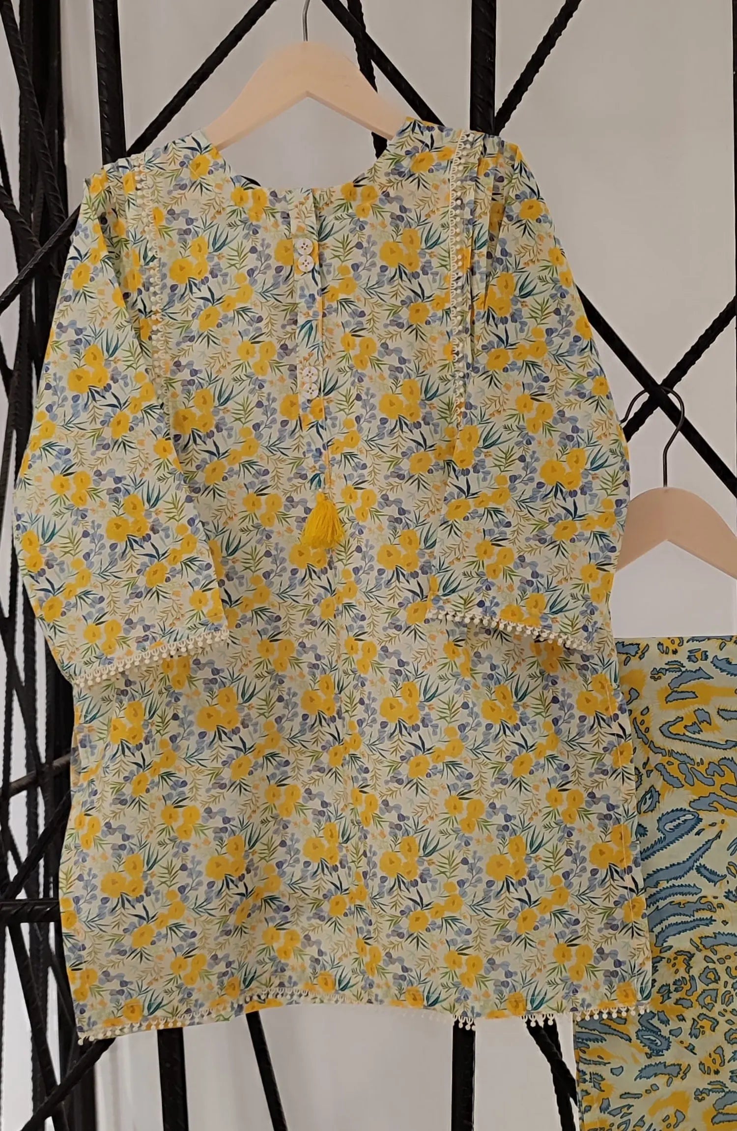 Modest Printed Cotton Stitched 3 Piece Suit - 9705-Wht - MOD25PRF - White - Festive Girls Collection