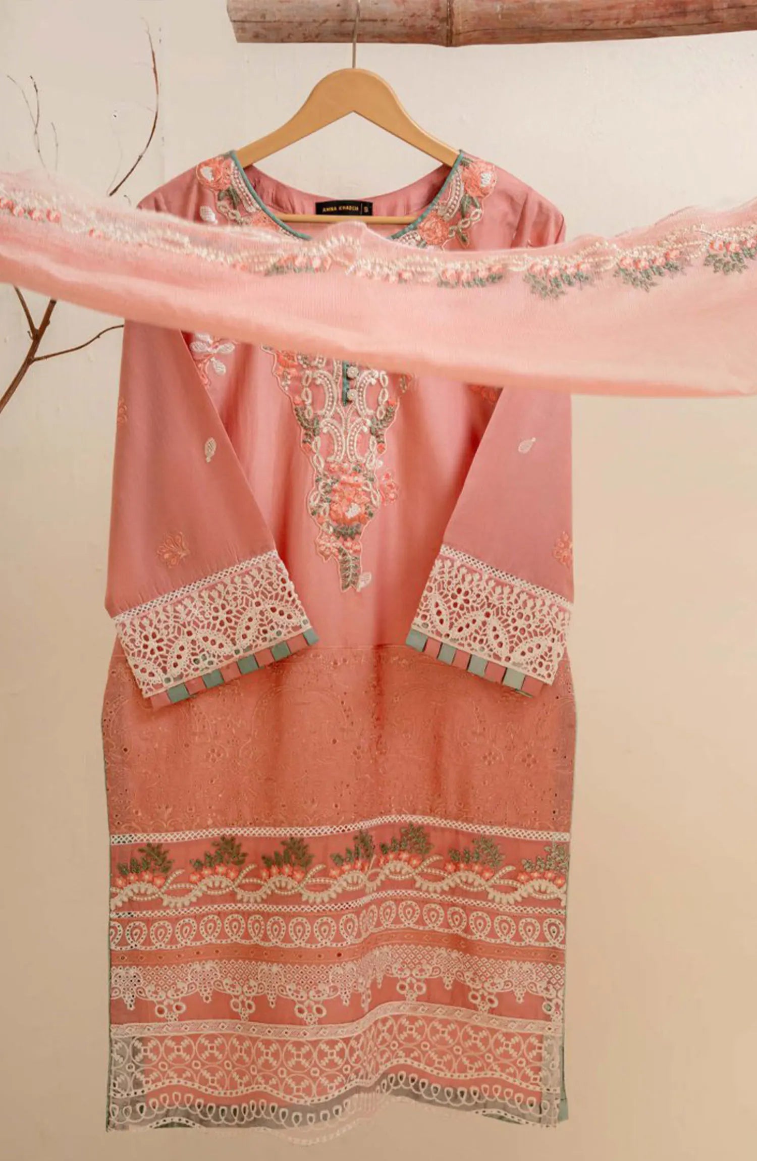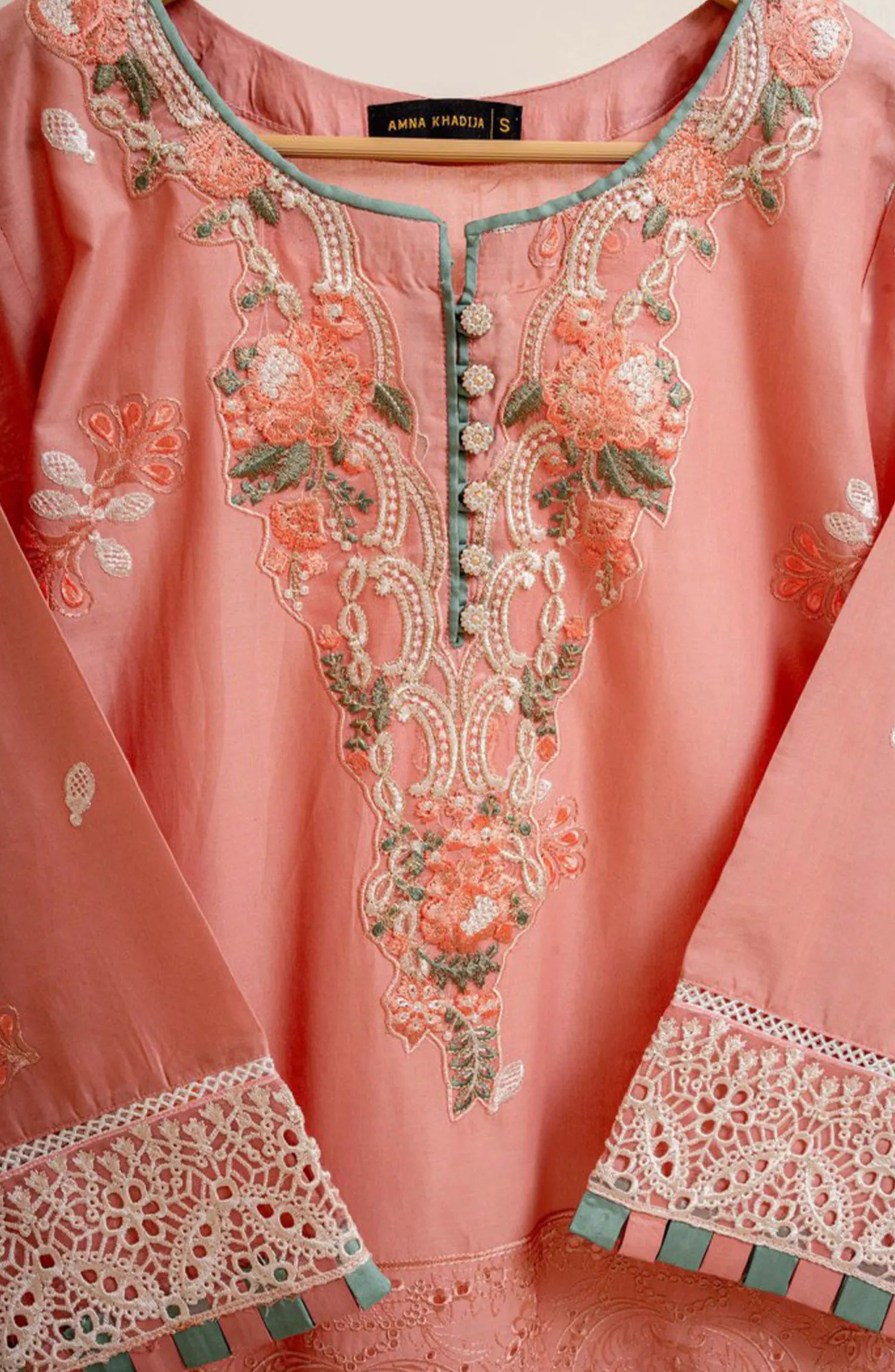 The standard style comes as a long-sleeved kameez with dupatta and trouser/shalwar.