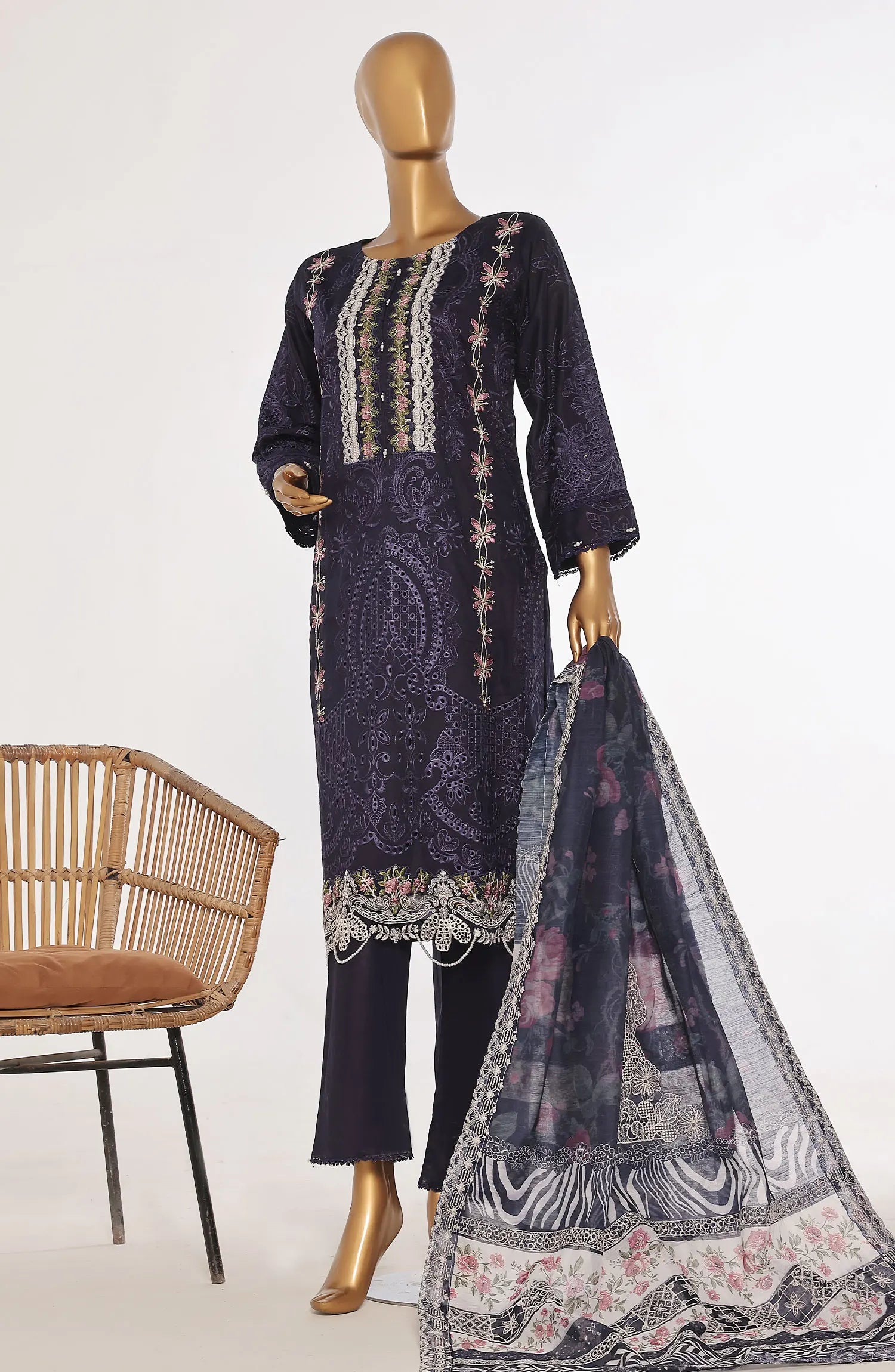 3 pec Chikankari Embroidered Lawn Front, Embroidered Sleeves ,