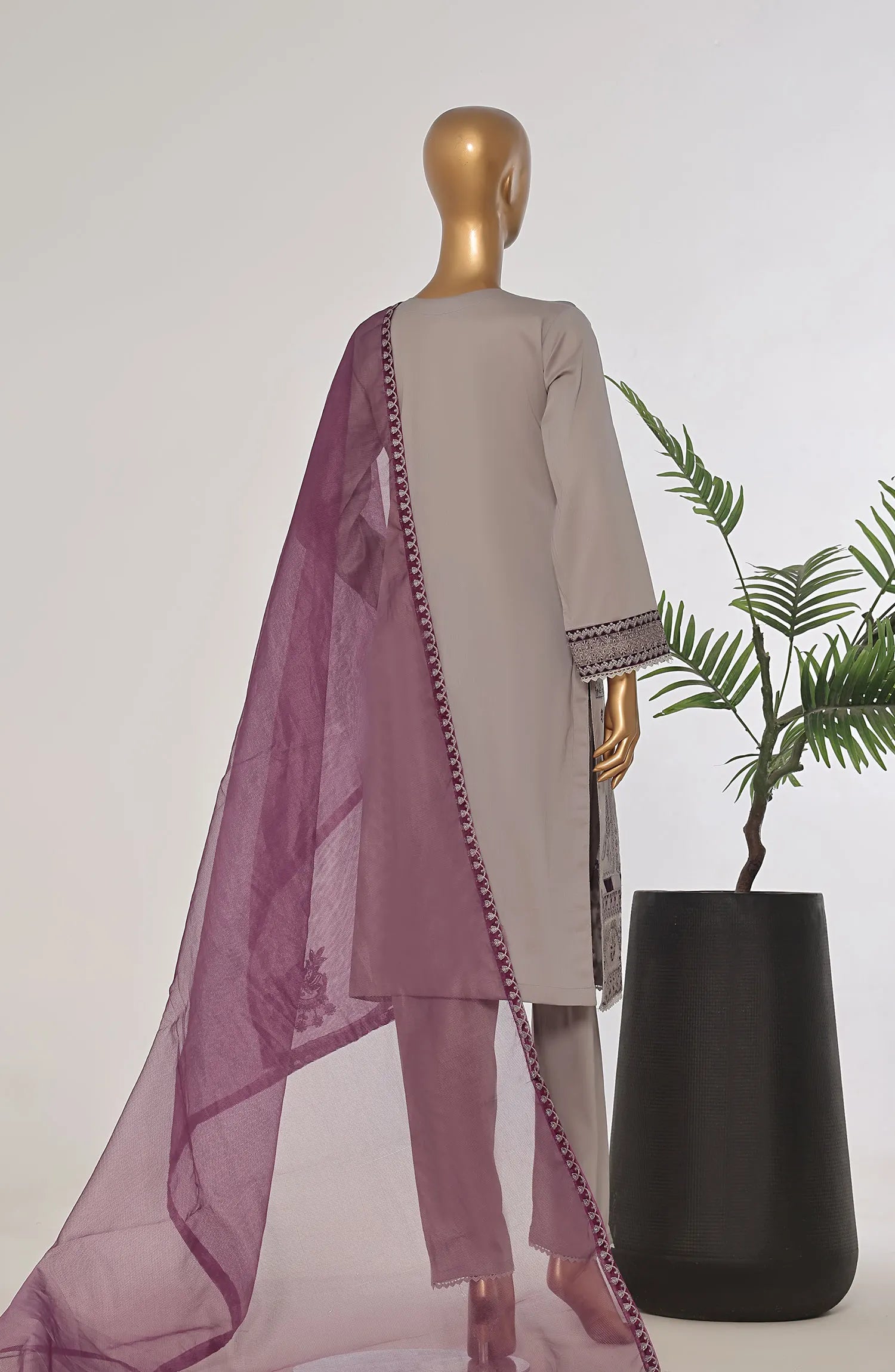 The standard style comes as a long-sleeved kameez with dupatta and trouser/shawlar.