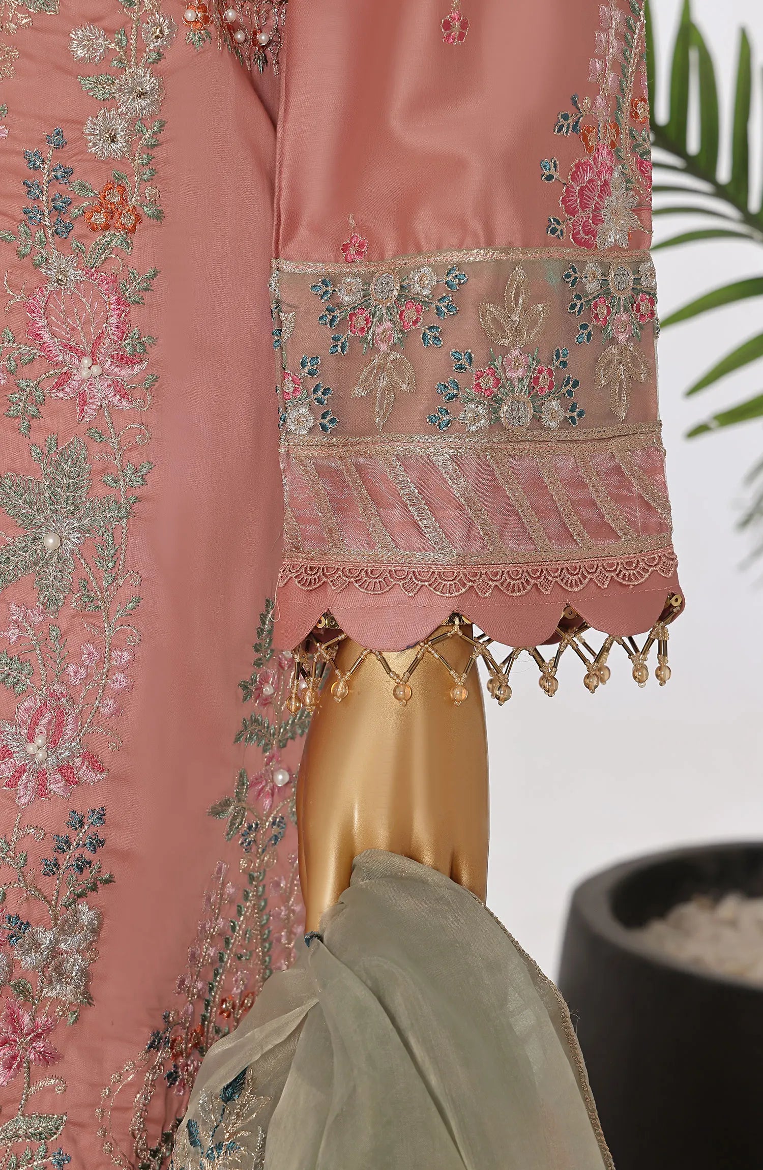 3 pec Embroidered Lawn Front With Hand Emblishments,