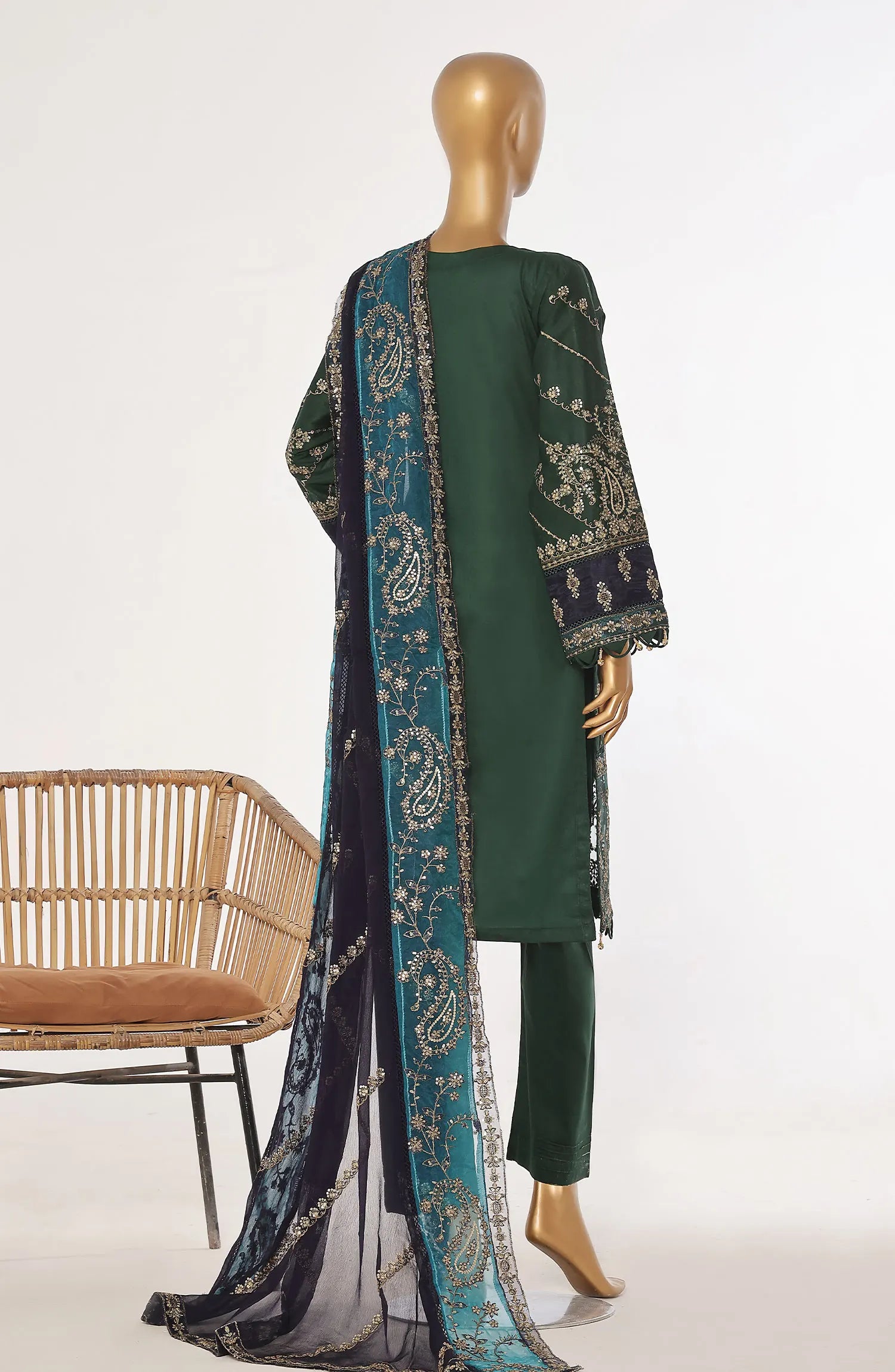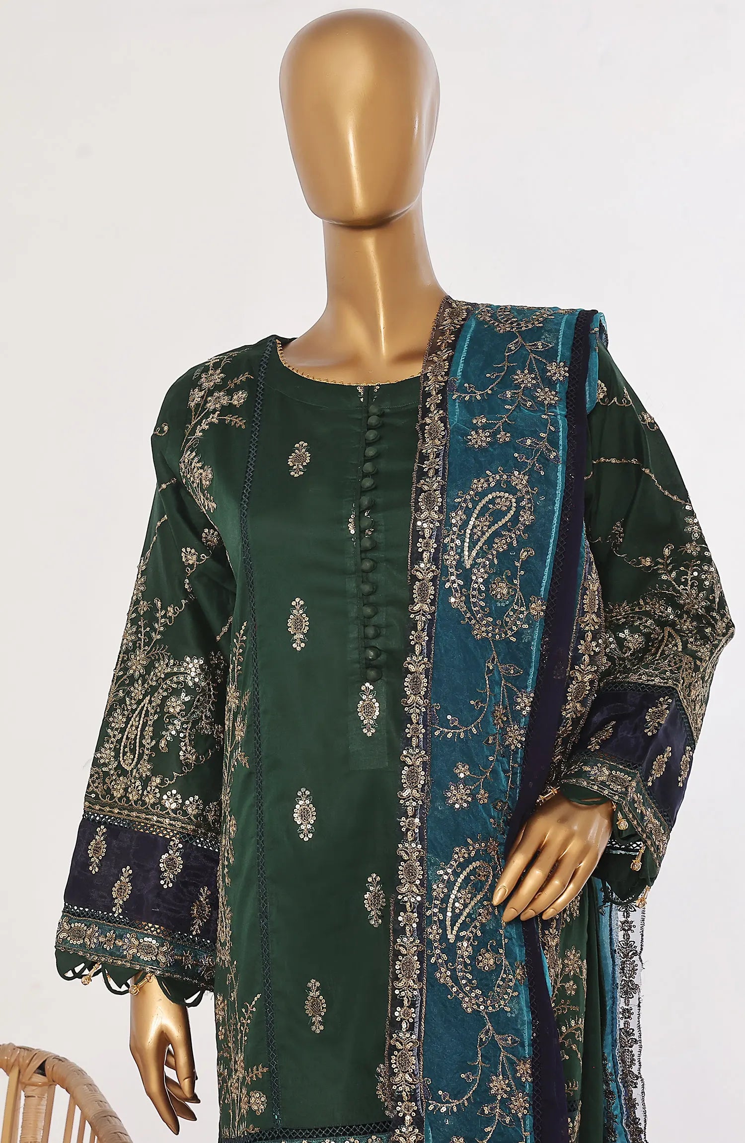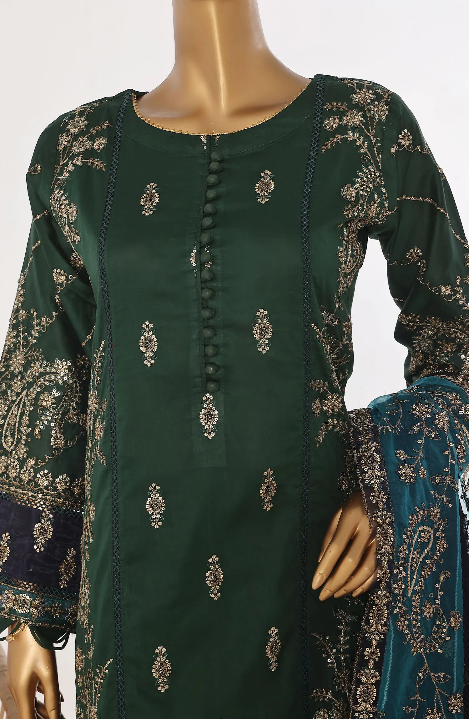 3 PEC Embroidered Lawn Front With Lace Work ,