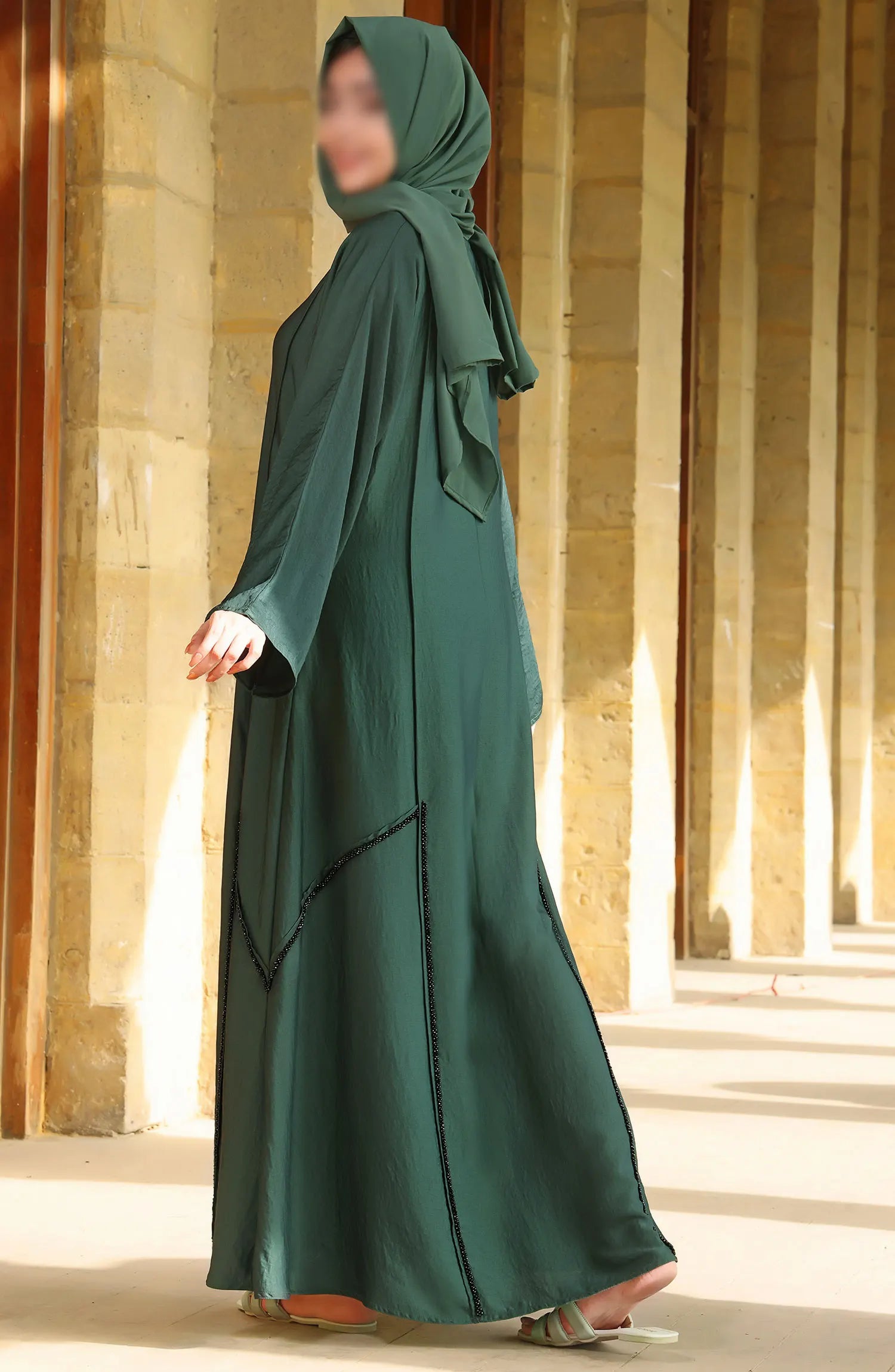 An aura of luxury, constructed on fine premium Dubai fabric which is a hit code these days, stones work on front and bottom, with with pure Korean dyed chiffon Sheila