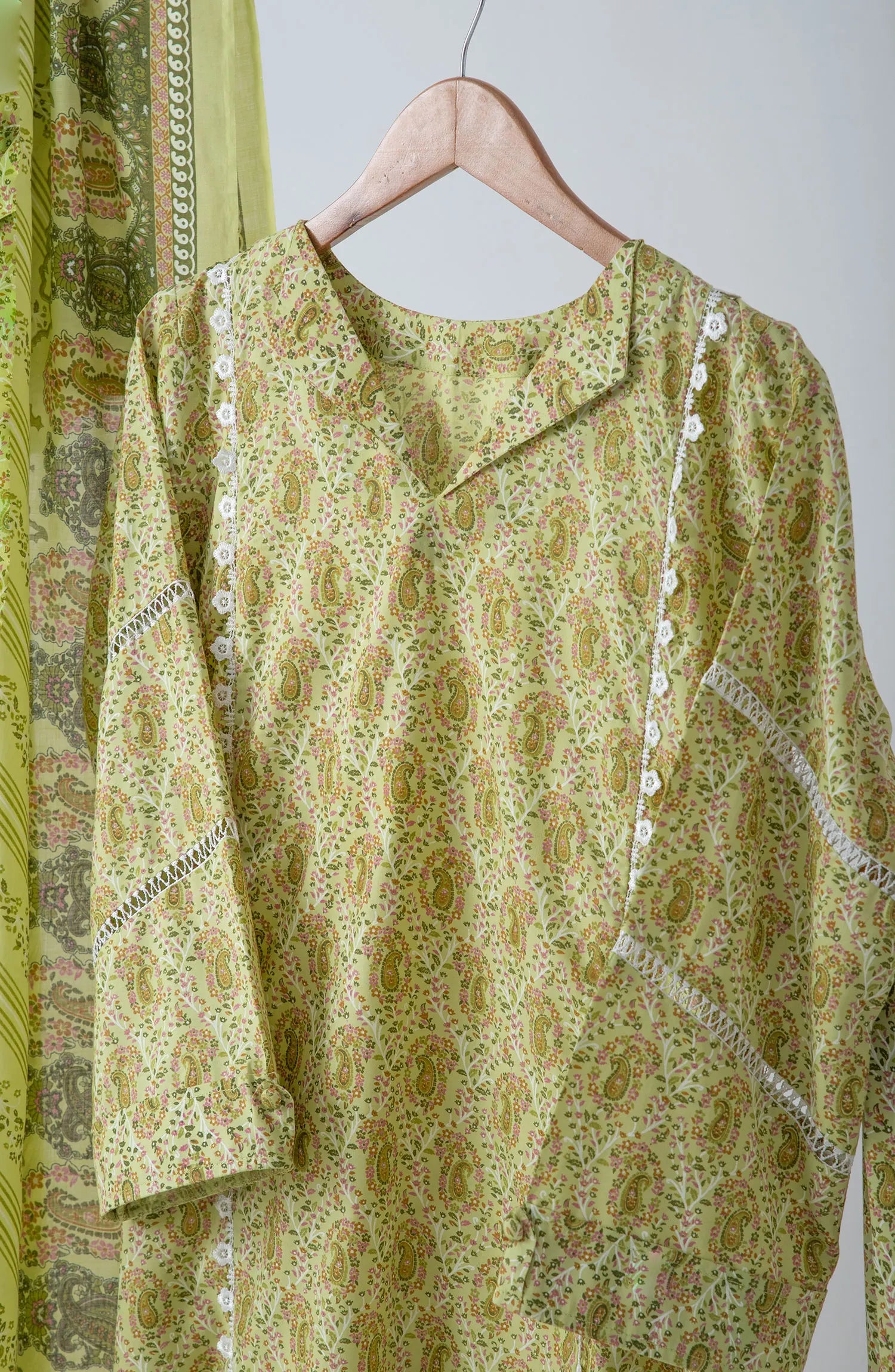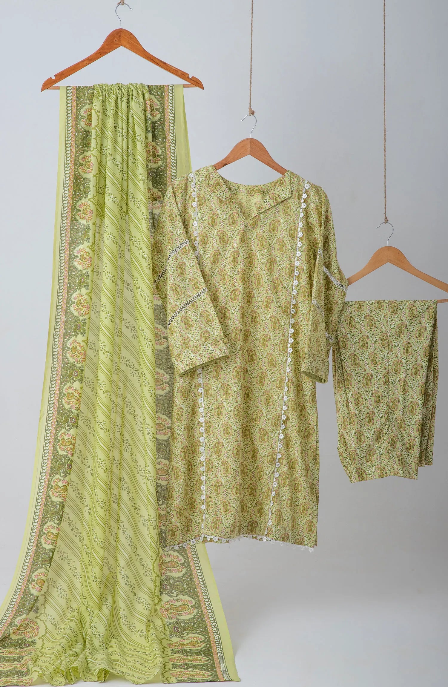 The standard style comes as a long-sleeved kameez with dupatta and trouser/shawlar.