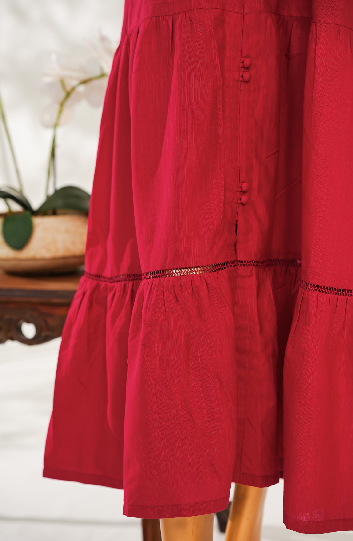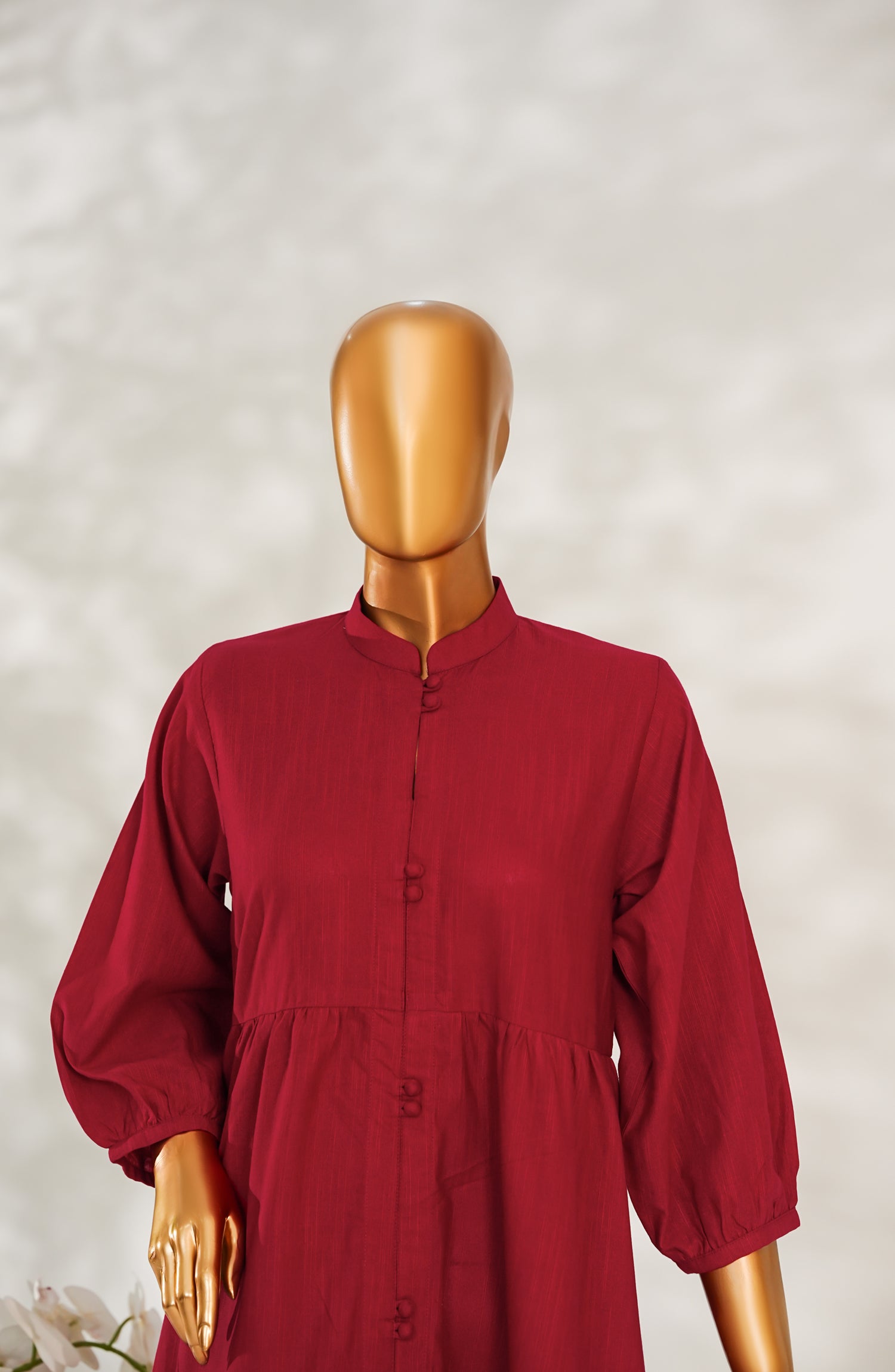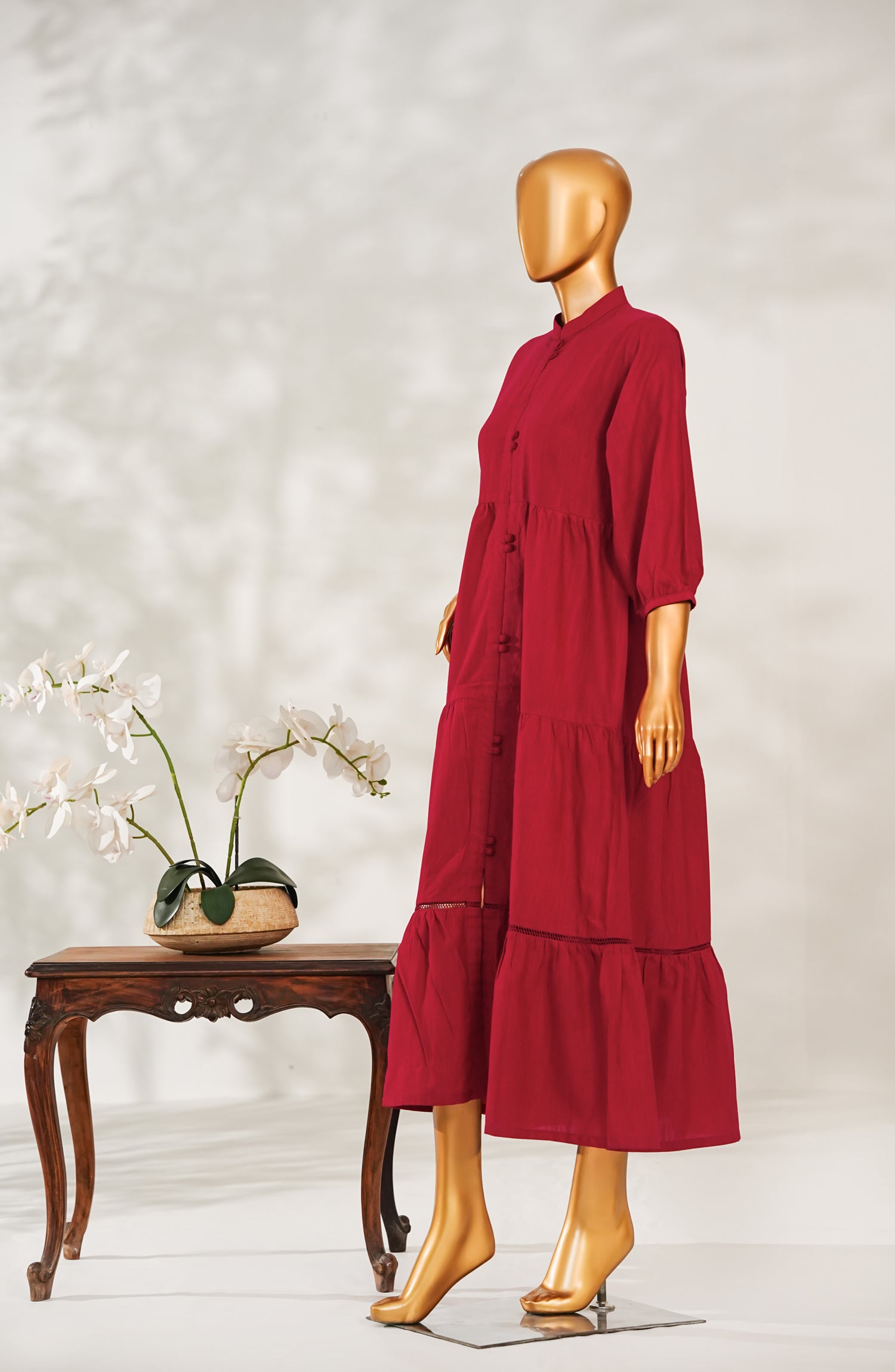 Slub Khaddar Frock with Elegant Embellishments and Delicate Lace Detailing
