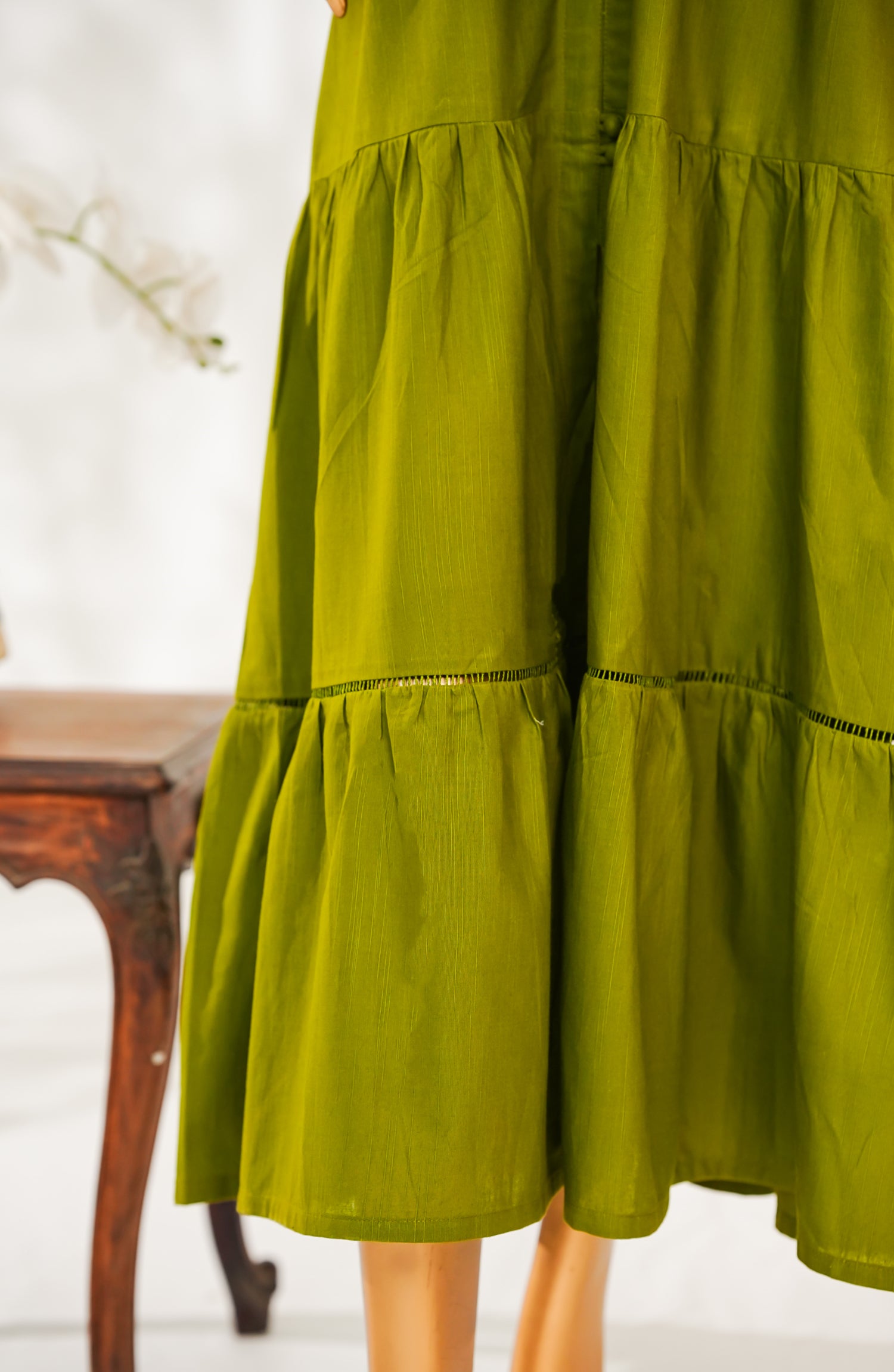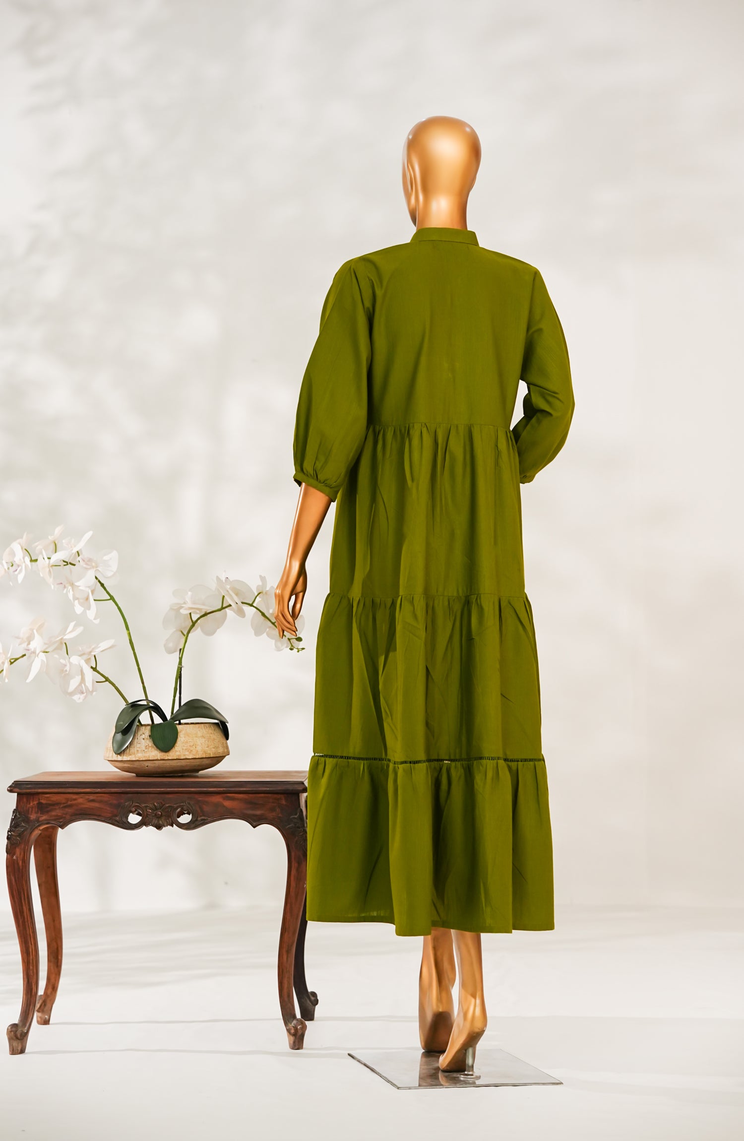 Slub Khaddar Frock with Elegant Embellishments and Delicate Lace Detailing