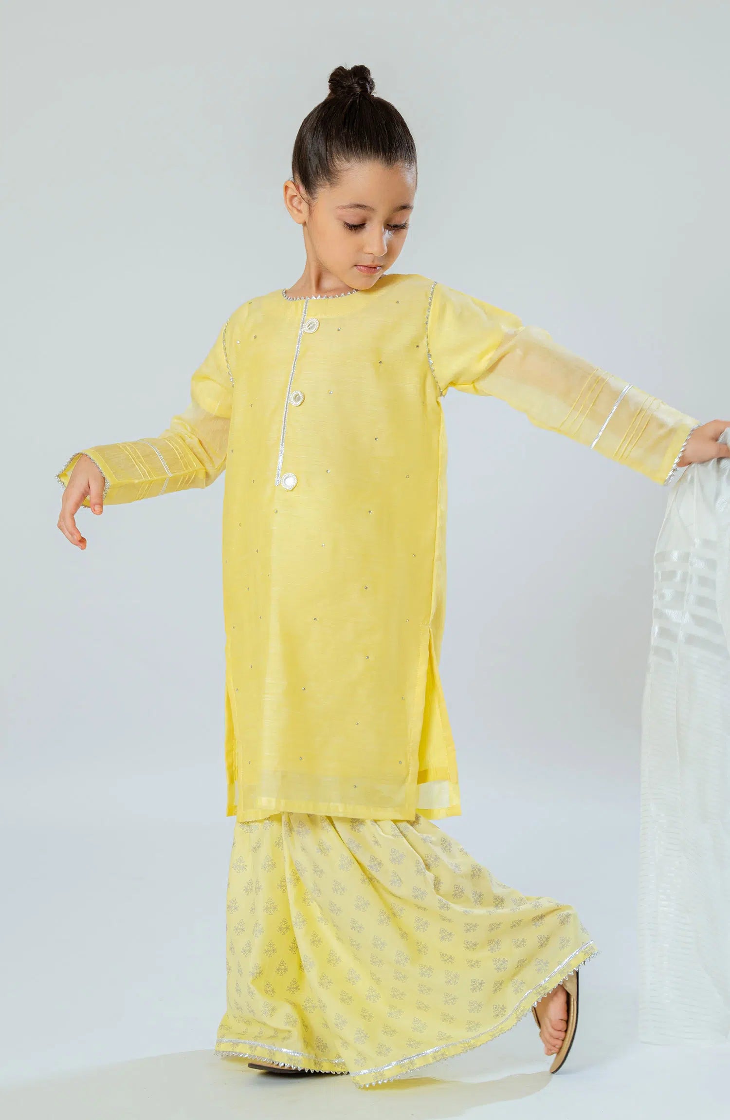 Paper cotton shirt with stone and lace work with printed garara and organza dupatta