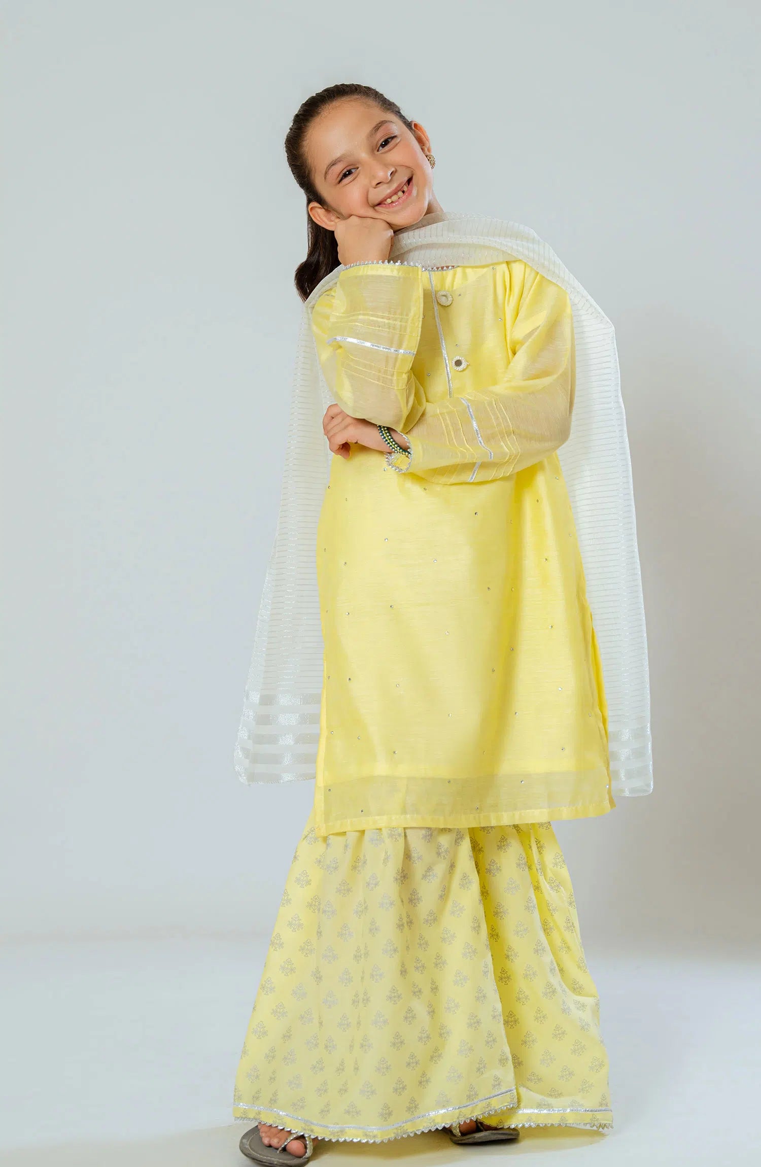 The standard style comes as a long-sleeved kameez with dupatta and trouser/shawlar.
